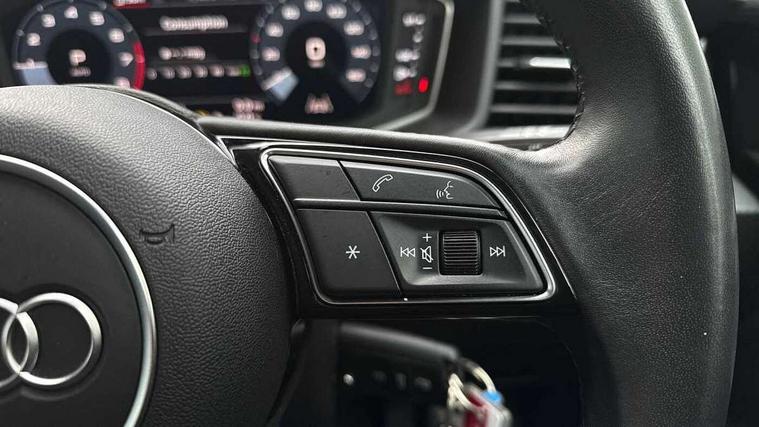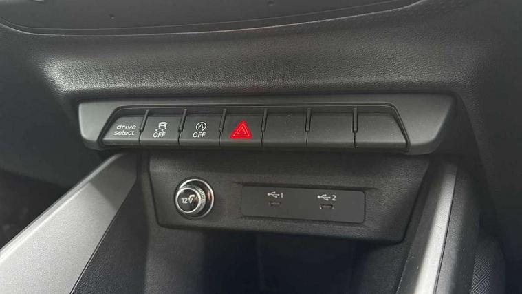 10.25" Digital instrument cluster display classis style instrument dials + speed, odometer, time, outside temperature, telephone menu + fuel level warning, Audi drive select - power steering assistance + engine + gear shift 3 preset modes (auto, dynamic, efficiency and an Individual mode), Audi smartphone interface with connect compatible smartphone via USB directly MMI display + Nav, music, third party apps controlled via MMI controller, Automatic start/stop system, Bluetooth interface, Cruise control, Driver's information system, Electromechanical power steering, Emergency e-call, Lane departure warning system, Rear parking sensor, Service interval indicator, Speed limiter, Voice control system, Washer fluid level indicator, Dynamic suspension, 2 x USB type C connection points, 6 passive loudspeakers, DAB Digital radio, MMI radio plus with 10.1" colour MMI display screen and MMI touch, Auto dimming rear view mirror, Body coloured bumpers, Body coloured door mirrors, Electric front and rear windows, Electrically adjustable, heated, folding door mirrors with integrated LED side indicator, Front side air inlets in grained matt black and C frame in anthracite black, Heat insulating glass windscreen and side windows, Heated rear windscreen, High level LED brake light, LED headlights with LED rear lights + dynamic rear indicators + headlight adjustment and high beam, turning light + LED daytime running lights, Radiator grille and rear diffuser in matt anthracite black, Radiator protective grille frame in matt aluminium silver, Rain and light sensors, Rear fog lights, Rear side wing doors, Rear wiper, Side front spoiler lips in grained matt black, 12V socket in centre console with two cup holders, 3 rear seats with headrests, 3 seat bench in 2nd row, 3 spoke leather multifunction plus steering wheel, 40:60 Split folding rear seat or folded fully, Black front and rear floor mats, Door sill trims with aluminium inlay, Driver and passenger seat with manual height adjust with forward and backwards adjustment, Front head restraints, Front passenger seat, Grey cloth headlining, Height and reach adjustable steering wheel, ISOFIX child seat mounting for front passenger and outer rear seats including top tether attachment point of outer rear seats, Leather gear knob with aluminium trim, Leatherette handbrake grip, Luggage compartment light with front and rear reading lights, Manual air conditioning, Manually adjustable lumbar support in front seats, Novum cloth upholstery with front sport seats, Luggage compartment pack - A1, 3x3 point rear seatbelts, Audi pre-sense front with pedestrain and cyclist recognition, Brake assist function, Driver and front passenger airbag with front side and head airbags, Electronic Stability Control including ABS, EBD, ASR and EDL, Front passenger airbag deactivation switch, Hill hold assist, Manual rear child locks, Seatbelt height adjustment for front seats, Seatbelt monitoring, Tyre pressure warning light, Warning triangle and first aid kit, Anti theft alarm, Anti theft wheel bolts and loose wheel warning, Immobiliser, Remote central locking with 2 foldaway keys, Aluminium trim for control switches, air vents and digital instrument cluster, Black dashboard, Silver grey accent areas including air vents, door handle recesses and centre console in diamond paint finish, Slate grey inlays polygon structure in fine paint finish,