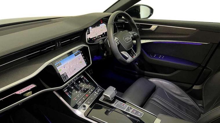Audi connect safety and service (e-call), Audi connect with Amazon Alexa Integration, Audi drive select, Audi parking system plus - acoustic and visual park assist system for front and rear, Audi smartphone interface includes wireless Apple carplay/Android Auto, Audi virtual cockpit, Automatic start/stop system with coasting functionality, Bluetooth interface, Camera based traffic sign recognition, Electric boot lid release, Lane departure warning system, MMI navigation plus with 10.1" and 8.6" touch screens, Progressive steering, Rear view camera, Service interval indicator, Voice control system, 12V Mild hybrid, Quattro on demand, Sports suspension, Audi front music interface, Audi sound system, Auxiliary input socket, DAB Digital radio, USB connection, Audi beam, Electric front/rear windows, Electrically adjustable heated and folding + automatically dimming exterior mirrors with memory function, Frameless auto dimming interior rear view mirror, Front intermittent wipers, Heat insulating darkened glass in side and rear windows, Heat insulating glass in windshield, LED rear lights with dynamic indicators, LED signature front daytime running light, LED third brake light, Matrix LED headlights, Matt black rear diffuser with diffuser strip and tailpipes in chrome, Matt black side air intake grille with inlay in matt aluminium, Omission of output/technology badging, Privacy glass, Radiator grille in anthracite black matt, single frame in chrome and horizontal struts in matt aluminium silver, Rain and light sensors, Rear boot, Rear side wing doors, 2 zone deluxe electronic climate control, 40/20/40 split folding 3 rear seat bench in 3 parts with rear centre armrest, Audi phone box light, Black cloth headlining, Electrically adjustable front seats including seat height, fore/aft position, backrest angle and 4-way lumbar with memory for driver's seat, Front and rear floor mats, Front centre armrest, Front head restraints, Heated front seats, Height/reach adjust steering wheel, Illuminated door sill trims with S logo, Illuminated sun visors with vanity mirrors, Leather gear knob, Rear headrests, Single front passenger seat, Stainless steel pedals and foot rest, Tool kit and car jack, Black styling package plus - A6 Black edition, LED Interior Ambient Lighting Pack - A6, Non smoking pack - A6, S line exterior style pack - A6, 3 point seatbelts on all seats, Airbags - Front side, front and rear including head, Audi pre-sense front, EBD - Electronic brakeforce distribution, Electromechanical parking brake, Electronic Stability Control (ESC) including ABS, ASR and EDL, Extended pedestrian protection measures, ISOFIX child seat mounting for front passenger seat and ISOFIX child seat mounting with Top Tether for outer rear seats, Manual child proof rear door locks, Seatbelt monitoring, Tyre pressure warning light, Warning triangle and first aid kit, Anti theft alarm with tow away protection, Anti-theft wheel bolts and wheel loosening detection, Immobiliser, Keyless Go, Remote central locking, Carbon twill inlays, 20" 10 spoke star black metallic audi sport alloy wheels in gloss turned finish,