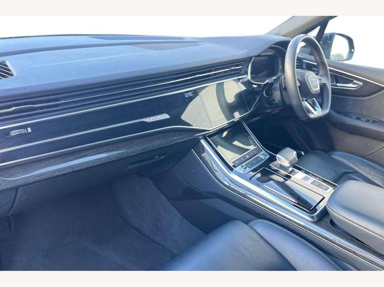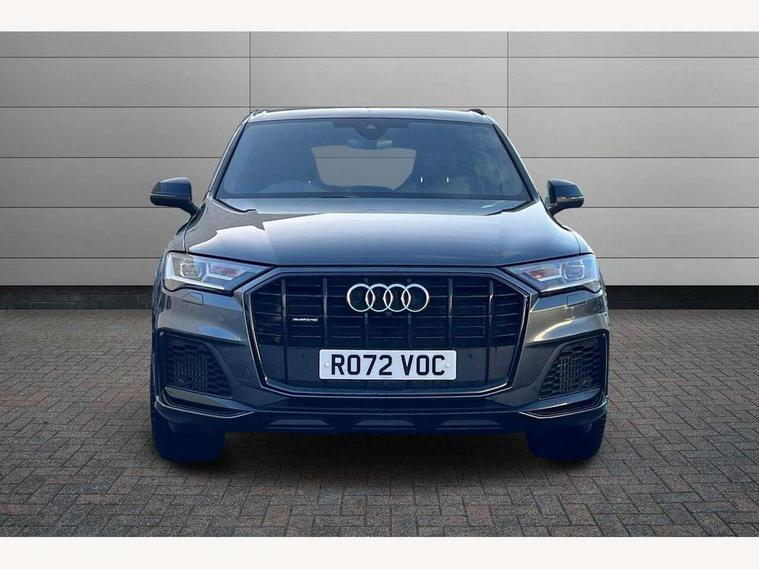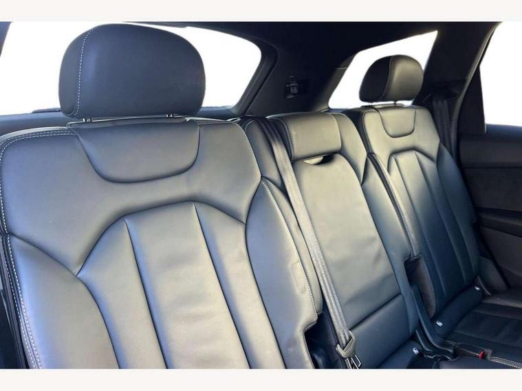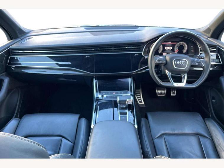 Audi connect safety and service (e-call), Audi connect with Amazon Alexa Integration, Audi drive select (Auto, Comfort, Dynamic, Efficiency, Individual, Off-road and All road), Bluetooth interface, Camera based traffic sign recognition, Electromechanical steering, MMI navigation plus with MMI touch screens includes 10.1" and 8.6" screens with haptic feedback, Natural voice recognition, Parking system plus with 360 degree display (front, rear and side sensors) - acoustic and visual park assist system, Power operated tailgate, Rear view camera, Smartphone interface includes wireless Apple carplay/Android Auto, Start/stop system, 48V Mild hybrid technology, 85 litre fuel tank, Adaptive air sports suspension, Quattro all wheel drive with self locking centre differential, Audi music interface - front 2 USB-C ports with charger and data functions, Audi sound system with 6 channel amplifier, 180 watt amplifying capacity and 10 loudspeakers including subwoofer, DAB digital radio module, 3rd brake light, Audi matrix LED headlights with dynamic front and rear indicators, Auto dimming frameless rear view mirror, Black roof rails, Bumpers in contrast paint scandium grey finish includes door trim and wheel arch trim strips, inlays in door strip contain quattro embossing, Electrically adj heated/folding + automatically dimming exterior mirrors with memory + automatic kerb side function for passenger side exterior mirror, Heat insulating glass in windshield, Integrated LED indications in door mirrors, LED daytime running lights, LED rear tail lights, Privacy glass - dark tinted rear and rear side windows from B-pillar backwards, Rear side wing doors, Rear wiper, 2 seat bench in 3rd row, 3 seat bench in 2nd row, 4 zone deluxe automatic climate control, 7 seat layout with ISOFIX points for the front passenger seat and rear passenger seat, Black cloth headlining, Comfort front centre armrest, Electric adjustable front seat with 4 way lumbar support, driver memory functionality, Folding rear seats, Front head restraints, Front/rear floor mats, Heated front seats, Illuminated door sill trims with S logo, LED interior ambient lighting, Luggage compartment cover, Luggage compartment sill protection in stainless steel, Rear head restraints, Single front passenger seat, Stainless steel pedals, Sunvisors with illuminated vanity mirrors, Titanium black styling pack - Q7/SQ7, 3 point seatbelts on all rear seats, Audi pre sense front, Child locks on rear doors, Driver and front passenger, front side and curtain airbags, Electromechanical parking brake, Electronic Stabilisation Control (ESC) including ABS, ASR and EDL, Extended pedestrian protection measures, Hill hold assist, Seatbelt monitoring, Tyre pressure loss indicator, Warning triangle and first aid kit, Anti theft alarm, Anti-theft wheel bolts and wheel loosening detection, Keyless Go, Remote central locking, Polished oak trim with grey finish inlay, Tool kit, Tyre repair kit,