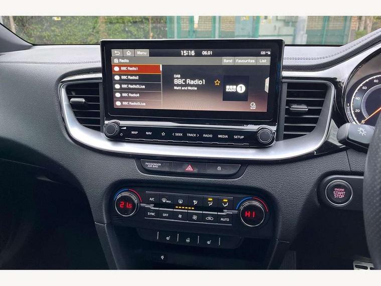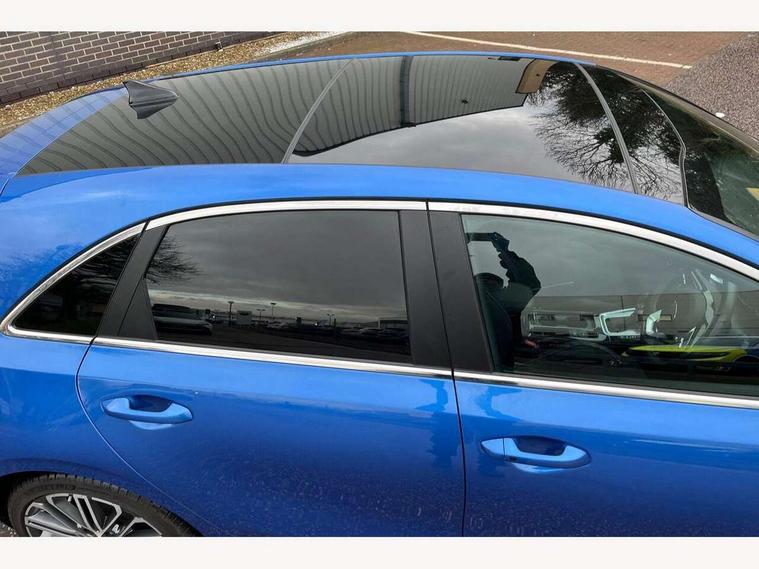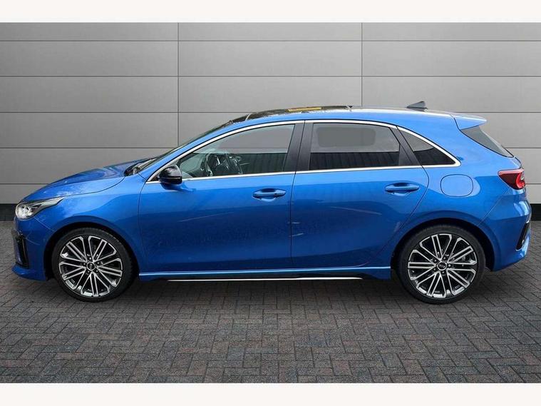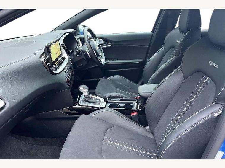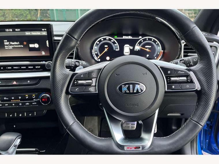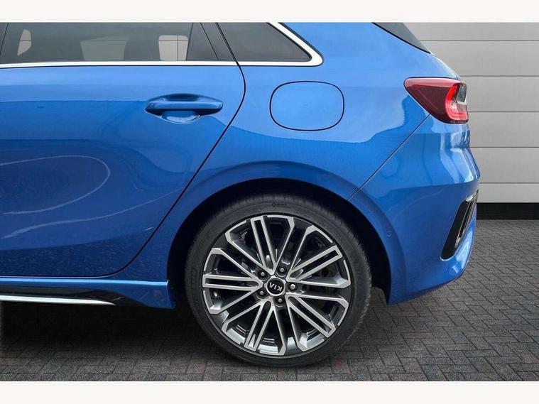 10.25" touchscreen satellite navigation including telematics, 12.3" TFT supervision cluster display, 4.2" supervision colour cluster display, Apple car play/Android Auto with voice control, Blind spot collision warning, Bluetooth with Voice Recognition & Music Streaming, Drive mode selector, Driver attention warning, Emergency stop signalling system, Kia connected services featuring TomTom live, Lane Following Assist (LFA), Lane keep assist, Motor driven power steering, Outside temperature gauge, Reversing camera with dynamic guide lines, Service interval indicator, Smart park assist system (SPAS) with parallel/perpendicular/reverse with front/rear parking sensors, Speed limit information function (SLIF), Trip computer, Wireless Mobile Phone Charger, Intelligent Stop and Go, DAB Radio with MP3, Illuminated USB & aux ports, JBL Premium sound system with 8 speakers, Steering wheel mounted controls, USB & AUX Ports for Connection of a Media Device, USB Fast Charger in Front Centre Console, Air intake with black accent lower lip, All-round Electric Windows with Auto Up & Down Function, Auto dimming rear view mirror, Automatic defog system, Automatic headlights, Body colour bumpers, Body colour exterior door handles, Body coloured rear roof spoiler with high gloss black trim, Chrome window surround, Electric adjustable/heated/folding door mirrors with LED Indicators and Kerbside Lights, Front fog lights, Front wiper de-icer, Heated rear window with timer, High beam assist, High Gloss Black and Satin Chrome Radiator Grille, High gloss black door mirrors, High gloss black side sill mouldings, Illuminated front door handles, LED Bi-Function headlights, LED daytime running lights, LED High-mounted Brake Light, LED rear fog light, LED rear lights, Privacy glass (rear side windows and rear screen), Rain sensing front wipers, Rear bumper with dual exhaust, Rear wash/wipe, Tinted glass, Wide panoramic sunroof with tilt/slide function and automatic electric roll blinds, Wide view drivers door mirror, Windscreen Washer Level Warning, 10 way power adjustable drivers seat with memory function, 12V socket in luggage compartment, 3 x passenger assist grips, 60/40 split folding rear seat, All-round height adjustable headrests, Aluminium pedals, Black headlining, Cupholders in centre console, Cupholders in rear armrest, Dash illumination dimmer switch, Driver & Front Passenger Sunvisors with Vanity Mirror Illumination & Ticket Holder, Driver + front passenger electric lumbar support, Driver's seat height adjuster, Dual Height Luggage Area Floor, Dual zone automatic air conditioning, Faux leather door trim, Front and rear door storage, Front cabin LED map light with sunglasses case, Front Passenger Seat Height Adjuster, Front seat and rear pockets, Gear shift indicator, Heated front seats, Heated outer rear seats, Heated steering wheel, Interior door lock/unlock function, ISOFIX Child seat top tethers and anchor fixings, Leather D-Cut steering wheel with grey stitching, Leather steering wheel and gearshift, Leather/Faux suede upholstery, Luggage area light, Luggage area parcel shelf, Luggage hooks, Paddle shift controls, Premium centre console with sliding cupholder cover, Rear Air Ventilation, Rear centre armrest, Rear coat hooks, Satin chrome interior door handles, Tilt/telescopic adjustable steering wheel, Advanced Driver Assistance Pack - Ceed 3/GT Line/GT Line S, ABS with Electronic Brakeforce Distribution (EBD) and Brake Assist System (BAS), All round 3-point seatbelts, Dual front side airbags, Dual horn, Electronic stability control (ESC) and vehicle stability management (VSM), Front passenger airbag deactivation, Height adjustable front seatbelts, Hill start assist control (HAC), Impact sensing auto door unlocking, Rear door child safety locks, Seatbelt reminder warning, Traction control, Twin curtain airbags, Twin front airbags, Tyre pressure monitoring system, Alarm system, Engine Immobiliser & Deadlocks, Engine Start/Stop Button with Smart Entry System, Locking wheel nuts, Speed sensitive auto door locking, Black high gloss front console tray garnish & door trim, Satin Chrome Fascia Trim, 18" Alloy wheels with grey centre cap, 18'' Alloy Wheels with grey centre cap, Tyre mobility kit,
