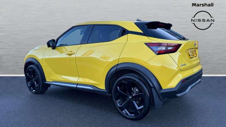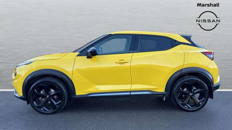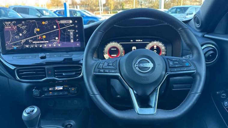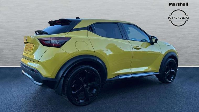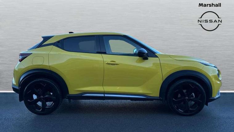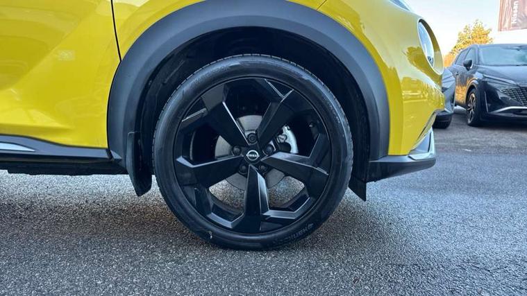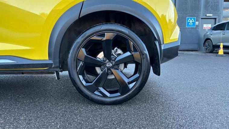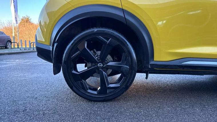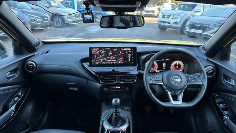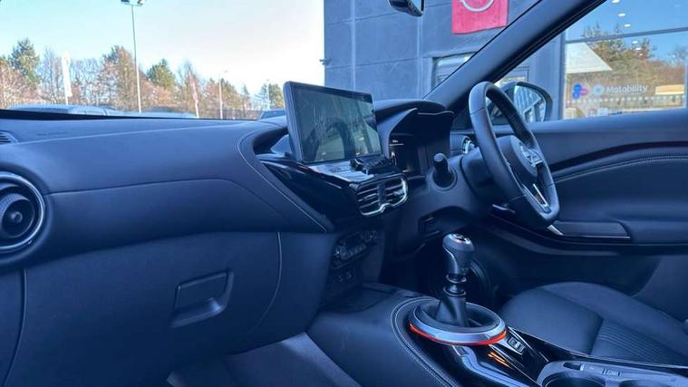 12.3" full colour TFT screen combimeter, Drive modes select (Eco, normal and sport), Emergency and breakdown call, Front parking sensor, Idle start/stop system, Intelligent driver alert system, Intelligent lane intervention, Lane departure warning system, Nissan connect 12.3" touch screen entertainment system, Nissan connect nav with TomTom traffic, Nissan connect services, Outside temperature sensor, Power Steering, Rear parking sensor, Stop/start button, Traffic sign recognition, Trip computer, Voice recognition, WiFi connectivity, Wireless Apple CarPlay and Google Android auto, Wireless Smartphone charger, 10 Bose speakers 8 speakers and 2 headrest speakers for driver/passenger seats, 2 X Rear console USB port, Bluetooth system, USB, Aux-in and 12V socket, Bose personal plus audio system, DAB Digital radio, Auto dimming frameless rear view mirror, Automatic hazard signal with emergency stop signal, Body colour door handles, Electrically adjustable door mirrors with integrated indicators, Follow me home headlights, Front and rear electric window with one touch driver window, High beam assist, LED 3rd brake light, LED daytime running lights, LED front fog lights, LED headlamps, LED rear fog lamp, LED rear lamps, One touch passenger window, Rear privacy glass, Rear side wing doors, Rear wiper, Roof spoiler, Shark fin roof antenna in solid Black, Solid black door mirrors, Three blink turn signal, 3 height adjustable rear headrests, 3 seat bench in 2nd row, 60/40 split folding rear seat, Card holder on driver sunvisor, Door ambient lighting, Driver seat back pocket, Driver side rear coat hanger, Driver/passenger sunvisors and vanity mirrors, Front and rear cabin lights, Front armrest, Front door pockets with bottle holders, Front head restraints, Front/rear passenger grab handles, Gear console ambient circle lighting, Height adjustable driver's seat, Internal chrome door handles, Luggage board, Luggage space lighting, Monoform sporty seats, Multifunction steering wheel, Passenger seat back pocket, Rear door bottle holders, Single front passenger seat, Smooth synthetic leather steering wheel, Synthetic leather kneepad, Synthetic leather shift knob, Synthetic leather upholstery, Telescopic steering wheel adjustment, Two cupholders in front centre console, Two rear isofix child seat anchorage points with top tether, Welcome light and console tray ambient lighting, Advanced safety shield pack - Juke Manual, Comfort pack - Juke, Heat pack with height adjustable passenger seats - Juke, ABS with EBD and brake assist, Active ride control, Active Trace Control, Driver and passenger airbags, Driver and passenger side airbags, Electric handbrake with auto hold function, Electronic Stability Programme (ESP), Front and rear curtain airbags, Height adjustable seatbelts, Hill start assist, Intelligent emergency braking with pedestrian and cyclist recognition, Rear door child safety locks, Seatbelt reminder for driver/front passenger and rear seats, Three 3 point rear seatbelts, Traction control, Tyre pressure monitoring system, VDC Dynamic Vehicle Control, Alarm, Immobiliser, Intelligent key and start push button with walk away lock and approach unlock functions, Remote central locking, 19" Alloy wheels, Tyre puncture repair kit,