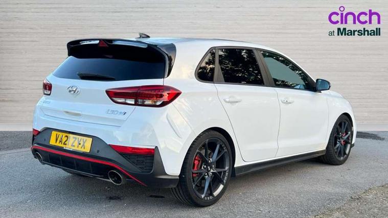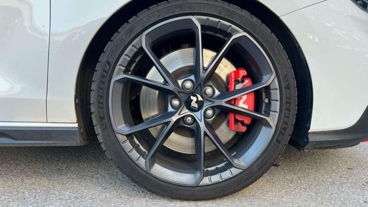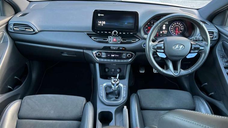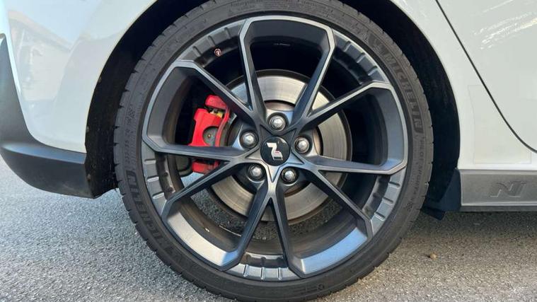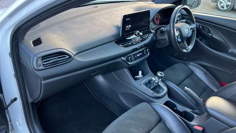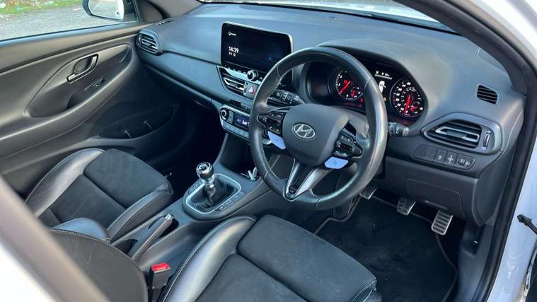 10.25" touchscreen centre console display satellite navigation including traffic messaging channel, map care and live services, Android Auto, Apple car play, Audio control with voice recognition, Blind spot Collision Warning (BCW), Bluetooth connectivity with voice recognition, Cruise control + speed limiter, Drive mode buttons, Driver attention alert system, Driver's supervision instrument cluster with 4.2" LCD display, e-Call (Emergency button system), Emergency stop signalling system, Front and rear parking sensors, Intelligent speed limit warning, Lane departure warning system with lane keep assist - LKAS, Lane follow assist, N exclusive sport cluster, N mode button, Parking system with rear camera and guidance system, Performance information display, Rack motor driven power steering, Rev matching system, Shift timing indicator, Trip computer, Windscreen washer fluid sensor and warning indicator, Wireless phone charging pad, Electric active sound design, Electronic limited slip differential, Electronically controlled suspension, Intelligent Stop and Go, Launch control, 2 front and 2 rear speakers with 2 tweeters, DAB Digital radio, Steering wheel audio, phone and cruise controls, USB ports in centre console, 1 speed non intermittent rear windscreen wiper, Active variable exhaust system, Adjustable intermittent front windscreen wipers with aero wiper blade, Automatic defog system for front windscreen, Automatic dimming rear view mirror, Automatic headlight with follow me home function, Automatic windscreen wipers with rain sensor, Black finish window surrounds, Black glossy door mirrors with integrated indicators, Body coloured door handles, Door mirror puddle lights, Dusk sensor, Electric adjustable heated door mirrors, Electric folding door mirrors, Electric windows - front and rear with anti-trap mechanism and one touch control (driver window), LED daytime running lights integrated into headlamp, LED Headlights, N exclusive front and rear bumpers, N exclusive radiator grille, N exclusive rear diffuser, Rear brake light in signature N triangular design, Rear LED lights, Rear spoiler with integrated LED brake light, Rear stiffness bar, Rear windows and tailgate privacy glass, Shark fin antenna, Smart high beam headlights, Smoked tail lights, Static Cornering lights, Tinted glass with windscreen shade band, Twin mufler rear exhaust, 12V power outlets in front console and luggage compartment, 60/40 split folding rear seat, Active head restraints, Aluminium pedals, Artificial leather door centre trim, Black interior door handles, Black roof liner, Centre console storage, Chrome effect interior door handles, Driver seat electric lumbar adjustment, Driver seat memory function, Driver's seat electric height adjustment, Driver's seat manual extendable seat cushion, Driver/passenger sunvisors and illuminated vanity mirrors, Dual zone climate control air conditioning, Electric adjust driver's seat, Faux suede and leather seat trim, Front and rear door pockets, Front armrest with storage box, Front cupholders, Front head restraints with vertical and horizontal adjustment, Front passenger's seat electric adjustments, Front passenger's seat electric height adjustment, Front passenger's seat electric lumbar support, Front passenger's seat manual extendable seat cushion, Front, rear and luggage compartment interior lights, Glove compartment, Heated front seats, Heated function steering wheel, Interior front map reading light and sunglasses holder, ISOFIX child seat anchorage points attached on outer rear seats, Leather wrapped steering wheel and gear knob, Luggage board, N branded aluminium door sill trims, Reach + rake adjustable steering column, Rear armrest with cupholder, Rear head restraints, 3x3 point rear seatbelts, Airbags - front, front side and curtain airbags, Anti-lock braking system (ABS), Autonomous emergency braking (AEB) with forward collision warning system, Childproof rear door locks, Curtain airbag roll over sensor, Electronic stability control, Front passenger airbag deactivation switch, Front seatbelt reminder, Height adjustable seatbelts, Hill start assist control (HAC), Manual parking brake, Red brake calipers with N logo, Reinforced brakes, Seatbelt reminder for rear passenger seats, Torque vectoring brake, Tyre pressure monitoring system (TPMS), Deadlocks, Immobiliser, Locking wheel nuts, Remote control central locking, Smart key with keyless entry and engine start/stop button, Speed sensitive automatic door locking, Thatcham category 1 alarm, 19" Forged alloy wheels, 19" Pirelli P zero performance tyres, Tyre repair kit,