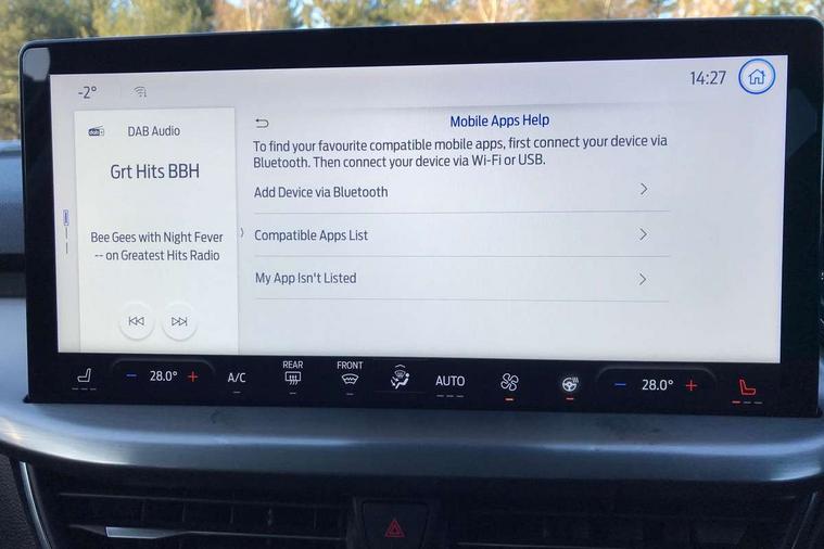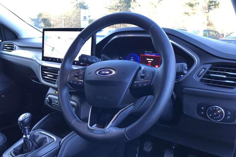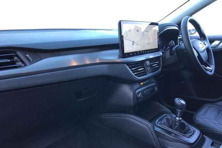 12.3" Digital instrument cluster, Bluetooth system, Digital clock, Easy fuel capless refuelling system, Eco mode, Ford SYNC4 Nav with 13.2'' touchscreen, DAB, Emergency Assistance, Apple Carplay & Android Auto, B&O Premium Audio with 10 speakers, FordPass Connect, Lane keeping system - lane keeping alert and lane keeping aid, PAS, Rev counter, Selectable drive mode, Service interval indicator, Trip computer, Wireless charging pad, 2 USB ports, Auto headlamps (on/off), Body coloured door handles, Electrically operated front and rear windows with one touch opening and closing, Electrically operated heated power fold door mirrors with puddle lamp with side indicators, Front variable intermittent wipers with electric wash, Grille with chrome bars and self colour surround, Heated rear window, LED daytime running lamp, LED rear lamps, LED third brake light, Privacy glass, Quickclear heated windscreen, Rain sensor, Rear side wing doors, Tailgate wash/wipe, 3 rear headrests, 3 seat bench in 2nd row, Dual zone electronic air temperature control, Full sensico premium upholstery, Height adjustable front headrests, Isofix child seat preparation, Load through ski hatch, Manual 2-way passenger seat adjust, Power 4-way driver seat adjust, with power lumbar adjust, Reach + rake adjustable steering column, Single front passenger seat, Winter pack - Focus, 3x3 point rear seatbelts, ABS+Electronic Brake force Distribution, Auto hold function, Driver airbag, EDL traction control, Electronic parking brake, Electronic stability control, Front and rear seatbelt reminder, Front inertia reel height adjustable seatbelts with pre-tensioners, Front passenger airbag, Front side airbags, Passenger airbag deactivate switch, Post collision braking, Pre collision assist with autonomous emergency braking and pedestrian/cyclist detection, Remote/power child rear door locks, Side curtain airbags, Three rear inertia reel lap/diagonal seatbelts, Tyre pressure monitoring system, Keyless entry and keyless start, MyKey system, Remote central locking & engine immobiliser, Thatcham alarm with power door dead locks, 17" 5x3 spoke alloy wheels with Pearl grey machined finish with mini spare wheel,