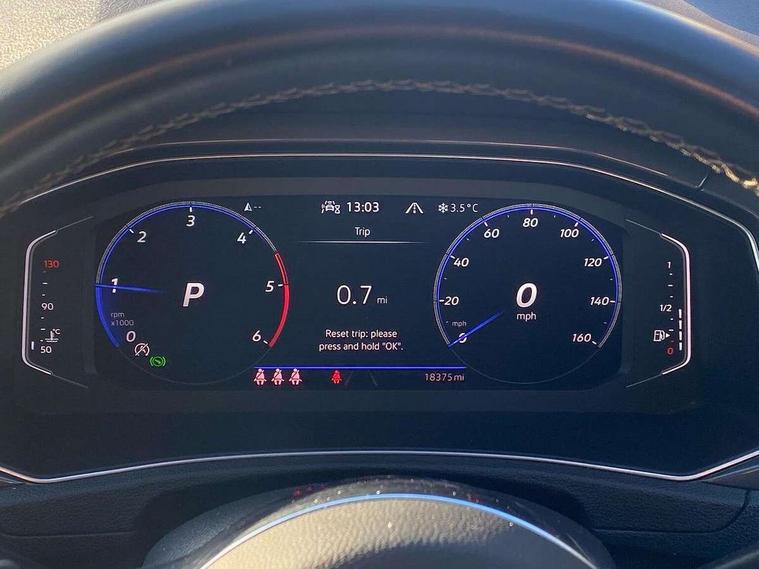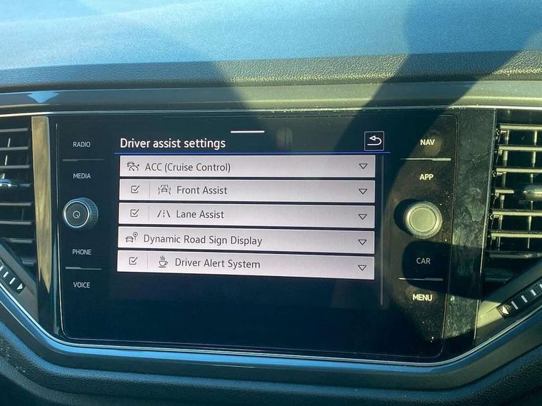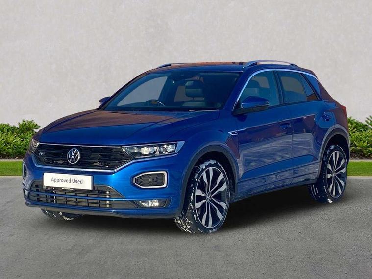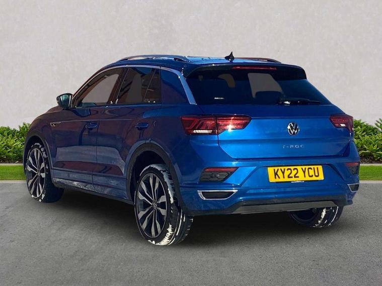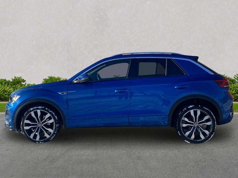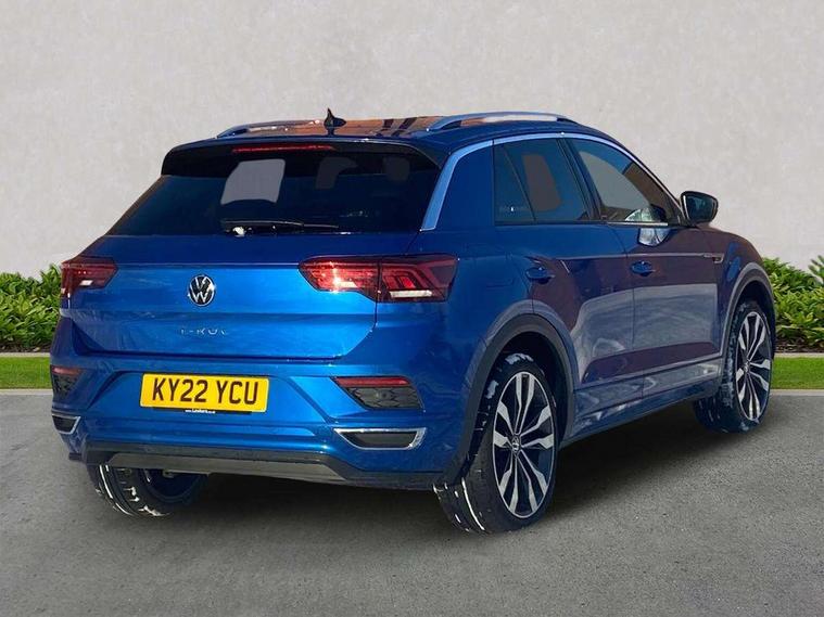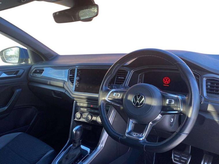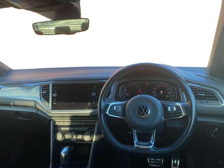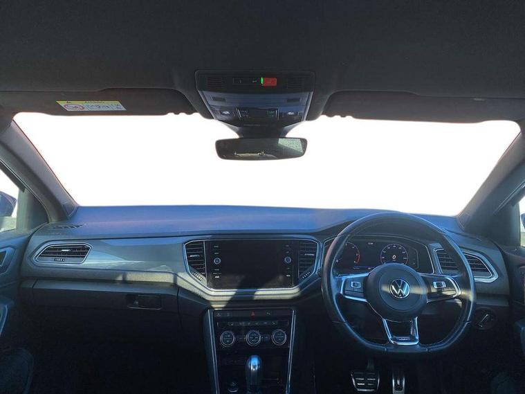 'Lights On' Reminder warning buzzer, Adaptive cruise control, Bluetooth telephone and audio connection for compatible devices, Car information display, Digital Cockpit Pro - Active info display, Driver alert system with audible and visual fatigue detection system, Driver tips and journey analysis, Dusk sensor, Emergency call service, Lane assist with warning text instrument cluster, Modified key software - reduce switch off time for key status change to Long no motion, Multifunction camera, Multifunction computer with visual gear change recommendation for fuel consumption, Navigation system discover media including streaming and internet, Service interval indicator, Think blue trainer driver tips and journey analysis, Traffic sign recognition, Voice activation, Warning sound and light for front seatbelts unfastened, Wireless app connect for apple carPlay, Battery regeneration during braking, Misfuel prevention device for diesel engine, Rear shock absorption for sports version, Start/stop function with battery regeneration, DAB Digital radio, Disk brakes in front, Diversity antenna for FM reception, Music playback - MP3, WMA and AAC files, Premium USB cable in choice of either Apple or Android smartphone compatibility, SD card slot, Simultaneous pairing of 2 compatible mobile devices, SMS functionality - read, compose and send SMS messages using touch-screen display, Storage compartment with longitudinal and height adjustable in armrest and two rear air vents, Three route options - Fast, Short, Eco, Title and cover art display, USB-C Interface and USB charging socket, Auto dimming interior rear view mirror, Automatic coming/leaving home lighting function and daytime running lights, Automatic hazard lights activation under emergency braking, Black grained lower door protectors, Body colored door lower parts, Body colour door handles, Body colour rear roof spoiler, Chrome effect left and right trapezoid exhaust tailpipe fascia surround, Chrome plated moldings, Chrome plated radiator grille inserts, air vent surrounds and light switch surrounds, Chrome trim on upper and lower radiator grille, Dynamic headlight range control with self adjusting whilst driving, Electrically foldable, adjustable and heated door mirrors with puddle lights and reverse activated kerb-view adjustment on passenger's door mirror, External USB type C socket and charging sockets, Front and rear electric windows, Front fog lights with static cornering function, Front windscreen wiper with intermittent wipe and 4 position delay, Fully galvanised body, Heated rear window, Heated windscreen washer jets, High level 3rd brake light, LED darkened rear light clusters, LED headlamps with automatic range adjustment and unique signature LED separate daytime running lights, LED rear number plate lights, LED tail lamp rear comination lamps, Privacy glass, R-Line design body coloured bumpers, Rain sensor, Rear tinted glass from B-pillar backwards approx 65% tinted, Rear wash/wipe with intermittent wipe setting, Silver anodised roof rails, Volkswagen roundel, 12V socket in centre console storage area, 3 rear head restraints, 4 load lashing points in luggage compartment, Aluminium pedals, Black roof lining and sun visors, Branded points of interest, Carbon flag cloth upholstery, Climate control - 2 zone electronic air conditioning with automatic air recirculation and allergy filter, Door and side trim panel, Door and side trim panel in foam film, insert in leatherette, Drawer under drivers seat, Front + rear carpet mats, Front centre armrest, Front cupholders x 2, Front seat back storage pockets, Front sports seats with R-Line logo on seat backrest, Glovebox, Heated front seats, Height adjustable front seats, Height/reach adjust steering wheel, Instrument lighting, white adjustable panel illumination, Interior light delay, Interior light in footwell, Isofix easy fit child seat preparation for 2 outer rear seats, Leather gearshift knob, Leather multi function sport steering wheel with gear change selection via paddle shift on steering wheel, LED interior light with switch off delay/dimmer and 2 front/rear LED reading lights, Load through provision with single cup holder when folded down, Luggage compartment cover, removable, Luggage compartment lighting, R Line badge, Scuff plates in door apertures, Split folding rear seat backrests with centre armrest, Stainless steel pedals, Storage compartment in left and right luggage area, Storage compartment in rear doors, Storage compartments in driver and front passenger doors, Sunvisors with illuminated vanity mirrors, Unique R Line door sill protectors, White ambient lighting, R line styling pack - T-Roc, Winter pack - T-Roc, 3 rear three point seatbelts, ABS, Curtain airbags, Driver and front passenger safety-optimised head restraints, Drivers and front passengers airbags with passengers deactivation switch, Drivers seatbelt reminder, Electronic parking brake with auto hold, Electronic stability control (ESC) includes ASR, EDL, EDTC and trailer stabilisation function, Front assist with city emergency braking and pedestrian monitoring, Front seat side impact airbags, Hill start assist, Predictive pedestrian protection, Rigid safety cell with front and rear crumple zones, Single tone horn, Three point height adjust front seatbelts + pretensioners, Tyre pressure loss indicator, Ventilated front and rear disc brakes, Volkswagen roadside assistance, Alarm with remote central locking and interior protection, Electronic engine immobiliser, Remote central locking with SAFELOCK, radio remote control with 2 remote control folding keys, Shadow grey decorative inserts in dash, centre console and door panel, 19" Suzuka alloy wheels with low rolling resistance tyres and anti wheel bolts,
