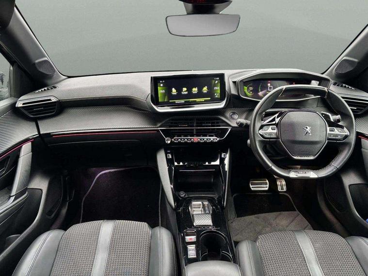 10" Capacitive colour touchscreen with connected 3D navigation, Bluetooth telephone facility, Driver attention warning, e-Toggle driving selector, Exterior temperature indicator with ice warning, Mirror screen with mirror link, apple carplay and android auto, Multi function trip computer, PEUGEOT i-Cockpit with compact steering wheel, PEUGEOT i-Cockpit with configurable 3D headup instrument panel, PEUGEOT SOS and assistance, Push button start, Smart phone docking station, Speed limit recognition and recommendation, Start/stop system, Visio park assist 180 with colour reversing camera + front and rear parking sensor, 2 front USB socket with USB-C, 2x USB sockets in rear, 6 speakers radio with mp3 compatible, DAB Digital radio, Voice recognition for radio, navigation and telephony features, 2 X Rear number plate lights, Automatic hazard light activation upon heavy brake application, Automatic lights, Automatic windscreen wipers, Body coloured exterior door handles, Dark tinted rear side and tailgate windows, Diamond Black roof, Electric front windows + one touch + anti-pinch, Electric rear windows with one touch/anti-pinch, Electrically adjustable, heated and power folding door mirrors, Extended diamond black rear spoiler, Follow me home headlights, Frameless electrochrome interior rear view mirror, Full LED headlights with smartbeam assist, Gloss black finish on B pillar, Gloss black rear cluster connecting strip, Gloss black wheel arch extensions, Gloss black window surround, GT model designation badging on C pillar, GT model designation badging on tailgate, Headlights left on audible warning, LED daytime running lights with 3 claw headlight with distinctive tooth design, LED side indicator lights integrated into door mirrors, LED third brake light, Model designation badges front and rear, Nera black door mirror shells, Peugeot scuff plates, Radiator grille - Dark chrome chequered and gloss black edge trim, Rear bumper with gloss black finish, Rear full LED 3D peugeot signature claw effect lights with daylight function, Rear lower bumper diffuser effect trim in gloss black, Rear reversing lights, Rear side wing doors, Rear windscreen wiper triggered automatically in reverse gear, Roof mounted aerial with fin design, Roof spoiler, Tailgate with heated rear windscreen and wiper blade, Twin chrome exhaust tailpipes, Variable front intermittent wipers, 1/3 to 2/3 split folding rear seats, 12V socket, 3 seat bench in 2nd row, 8 Colour personalisable ambient lighting, Aluminium pedals and foot rest, Automatic air conditioning, Automatic gear lever in full grain leather and satin chrome, Driver and front passenger seat manual adjustment in longitudinal and back rest angle, Driver and front passenger seat mechanical height adjustment, Driver and front passenger sport seats, Electric power steering with reach and rake adjustable steering column, Front and rear carpet mats in black with lime green stitch detail, Front centre armrest with storage compartment, Front LED interior light with 2 reading spotlights and rear interior light with timer, High centre console with 2 cup holders, ISOFIX child seat mounting points on passenger seat, Lime green contrast stitching to armrest, front centre console, door panels and dashboard facia, Map pockets on the backs of the front seats, Mistral full grain perforated leather steering wheel with aikinite stitch detail and satin chrome 'GT' emblem, Paddle shifts, Piano keys gloss black plated toggle switches to access main functions of the vehicle, Piano keys gloss black plated toggle switches to access touchscreen functions, Push button finished in black with chrome circle, Rear centre headrest, Roof lining - Mistral black, Seatbelt unfastened on the move audible and visual alert for front and rear seats, Single front passenger seat, 3 rear 3 point seatbelts, ABS (Anti-lock Braking System) with EBD (Electronic Brakeforce Distribution) and EBA (Emergency Braking Assistance), Active safety brake with night function/cyclists/pedestrians, Adaptive driver and front passenger airbags with passenger airbag deactivation function, Child locking functionality on rear doors, Driver/front passenger side airbags, Electric parking brake, ESP with Hill Assist, Front and rear curtain airbags, Front and rear disc brakes, Front optimised safety headrests and 3 x rear retractable headrests with height adjustable, Front three point retractable seatbelts with force limiters, Tyre pressure sensor, Acoustic vehicle alert system (AVAS), Automatic door locking when moving off, Deadlock, Electronic code immobiliser, Remote central locking, Thatcham cat. 1 alarm with anti lift sensor, Carbon effect Dashboard, front and rear door panel finish, 17" Bronx two-tone alloy wheels, Space saver spare wheel,