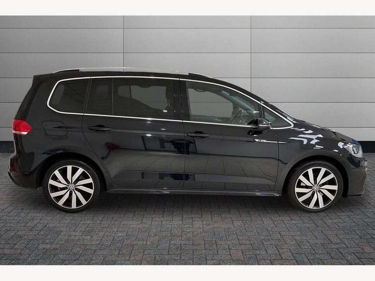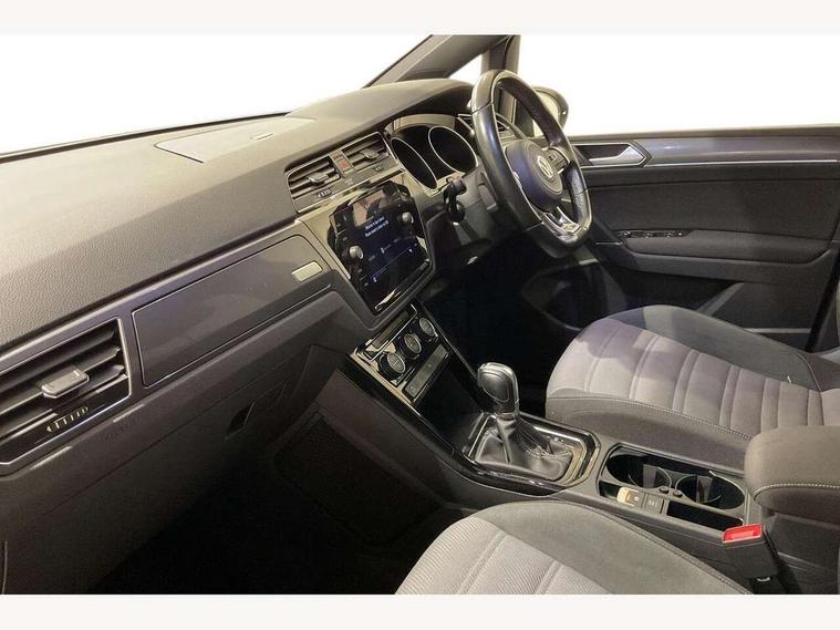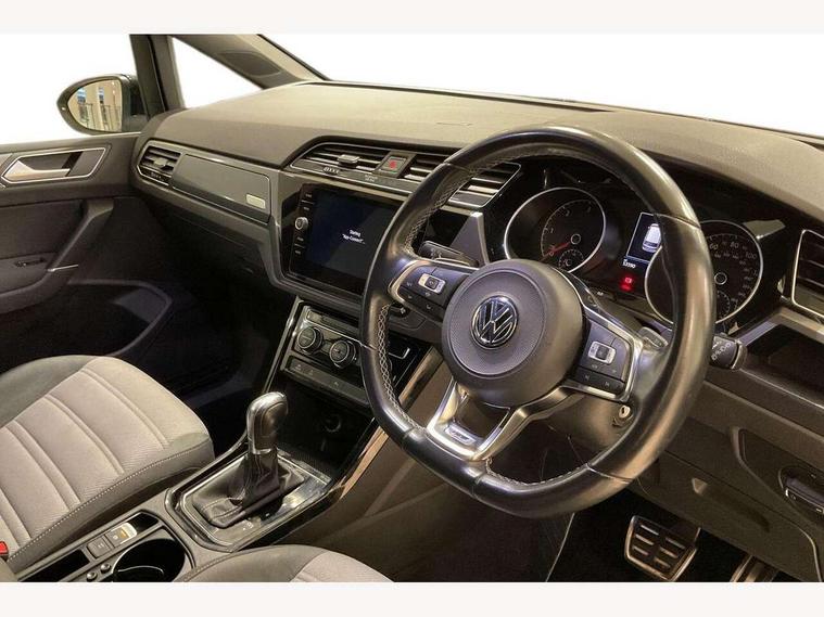 Adaptive cruise control, Audible lights on warning, Car information display, Driver alert system, Driver electronic voice amplification function, Electronic odometer, External temperature gauge, Flat tyre indicator, Front and rear parking sensors, Misfuelling protection device, Mobile pairing with SMS function, Multi function computer, Multifunction colour display, Rev counter with fuel gauge, Speed limiter, Speed sensitive power steering, Stop/start system, Think blue trainer driver tips and journey analysis, Trip and service interval display, Diesel particulate filter, XDS electronic differential lock, 4x20 watt output, 8 Speakers, Audio Connectivity System, DAB Digital radio, MP3/WMA compatability, Multi device interface, SD card slot, Title and cover art display, Aerial integrated into side window, Body colour bumpers, Body colour door handles, Body colour door mirrors with integral indicators, Chrome fog light surround, Chrome lower front bumper insert, Chrome trimmed front air intake surrounds, Chrome trimmed radiator grille louvre inserts, Chrome trimmed side windows, Daytime running lights, Dusk sensor + auto driving lights, Electric heated + adjustable door mirrors, Front and rear electric windows, Fully galvanised body, Gloss black finish B pillar, Green tinted heat insulating glass, High level third brake light, Range adjustable headlights, Rear tinted glass from B-pillar backwards approx 65% tinted, Rear wash/wipe with intermittent wipe setting, Silver roof rails, Tailgate wiper- reverse gear activation, Twin chrome exhaust tailpipes, Unique R Line badging, Windscreen wipers intermittent wipe, 12V power point for Row 2, 12V socket in luggage compartment, 2 individual fold flat 3rd row seats, 2 three point seatbelts in 3rd row, 2nd row centre armrest, 2nd row centre seat converts into table, 3 single slide/fold/removable 2nd row seats, 3 Zone electronic climate control with automatic air recirculation, 3x3 point seatbelts on 2nd row with height adjust on outer seats, 4 boot load lashing points, 4 way adjustable front head restraints, 4 way driver/front passenger adjustable head restraints, 5 headrests, Aluminium kick plate, Ambient lighting in door trim, Black roof lining, Driver and front passenger under seat drawer, DSG Paddle Shifts, Dust/pollen filters, Foldable front passenger seat backrest, Front + rear carpet mats, Front and rear reading lights, Front centre armrest with storage compartment, Front comfort seats with lumbar support, Front cupholders x 2, Front passenger seat height adjust, Front seat R Line logo with rear seat backrest, Front seat storage pockets, Front seatback folding tables, Front seats with R-Line logo, Grey stitching on steering wheel, Height adjustable driver's seat, Height/reach adjust steering wheel, Illuminated glovebox, Illuminated vanity mirrors, Instrument lighting white adjustable panel illumination with red night time illumination, Interior light with delay, Isofix on 3rd row seats, Leatherette on rear of front seats, Low tunnel 2nd row seat, Luggage compartment lighting, Media box in dashboard on passenger side, Multi storage in passenger/luggage areas, Multi-function centre console with storage facilities, Multifunction leather trimmed steering wheel including leather trimmed gear knob with 3.5" screen with multifunction computer, R-Line door sill protectors, Retractable luggage cover, Split folding rear seat backrests, Stainless steel pedals, Storage bins on all doors, Storage in roof console, Convenience Pack - Touran, Mirror pack - Touran, R line styling pack - Touran, 3 point height adjustable front seatbelts, Auto hold function, Automatic post collision braking system, Door open warning reflectors, Driver/Front Passenger airbags, Drivers knee airbag, EDL + ASR, Electronic parking brake, Energy recovery system, ESC with ABS, First aid kit, Front and rear (row 2) curtain airbags, Front assist including city emergency braking, Front seat side impact airbags, Front/rear disc brakes, Hill hold control, Hydraulic Brake Assist (HBA), Loose wheel warning function, Manual passenger airbag deactivation function, Pre crash preventive occupant protection, Seatbelt warning lamp and buzzer, Traction control, Two tone horn, Warning triangle, Alarm with remote central locking and interior protection, Electronic engine immobiliser, Black lead grey decorative inserts dash and door panel, Chrome plated instrument surrounds, Embroidered emblems to headrestraints, 18" Marseille alloy wheels with mobility tyres and anti-theft wheel bolts,