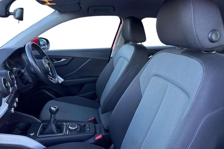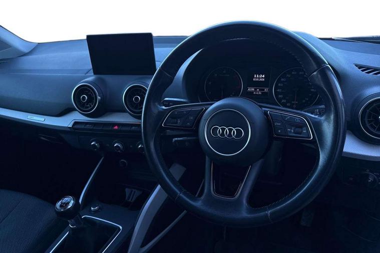 Audi smartphone interface, Automatic start/stop system with recuperation, Bluetooth interface includes bluetooth audio streaming, MMI - Multi Media Interface control system, Power operated tailgate, Progressive steering, Service interval indicator, Voice control system, Dynamic suspension, 2 x SDXC card reader, Audi music interface - apple iPod, apple iPhone, USB storage media, compatible MP3 players, 2 x USB charging points and 1 x Aux-in, CD Drive, DAB digital radio reception, MMI radio plus with 7" colour MMI screen and MMI controller, Black window trims, Body colour door mirrors, Chrome exhaust tailpipe, Contrast bumpers in Manhattan grey paint finish, Electrically adjustable and heated door mirrors with integrated LED side indicators, Front and rear electric windows, Front underbody guard and rear diffuser trim in selenite silver, Interior mirror, LED indicator lights, Rain and light sensors, Rear wiper, 3 spoke multi-function leather steering wheel, Aspect cloth upholstery, Door sill trims with aluminium inlay, Front centre armrest, Front headrests, Front/rear floor mats, Height/reach adjust steering wheel, ISOFIX child seat mounting with top tether and electrically operated child lock, Manual seat adjustment including seat height adjustment for front seats, Standard seats, Storage compartments - Glovebox, cupholder compartment in centre console, storage compartment in rear centre console, front and rear door pockets, Three rear headrests, Titanium grey cloth headlining, Connectivity pack - Q2, Non smoking pack - Q2, 3x3 point rear seatbelts, 6 airbags - Front, curtain and front side airbags, Electromechanical parking brake, Electronic stabilisation control including ABS, ASR and EDL, Extended and proactive pedestrian protection, Hill hold assist, Multi collision brake assist, Pre-sense front with pedestrian recognition, Seatbelt monitoring, Tyre pressure warning light, Warning triangle and first aid kit, Anti theft alarm, Anti theft wheel bolts, Central locking system with remote control key,