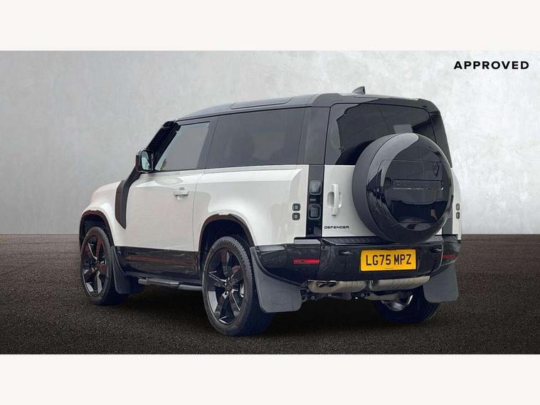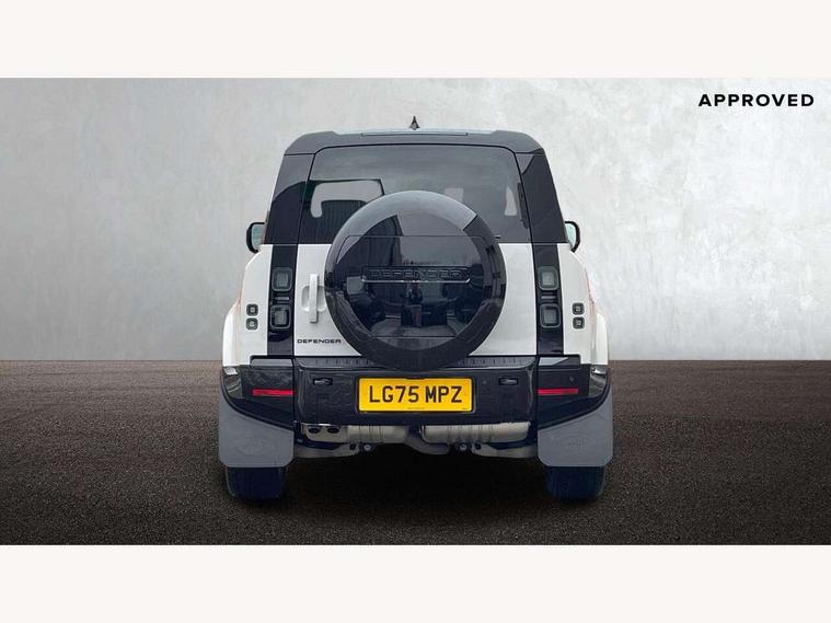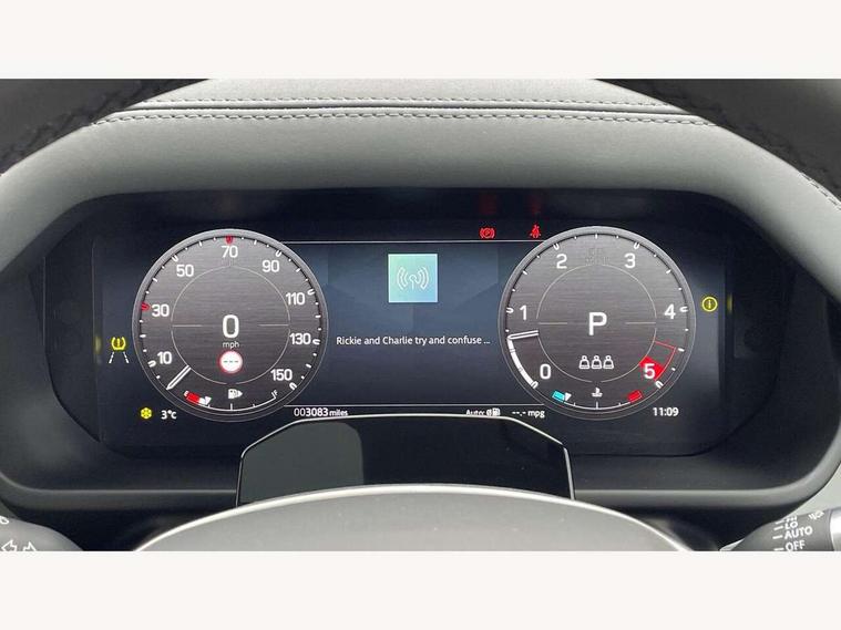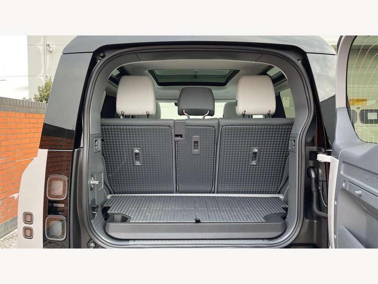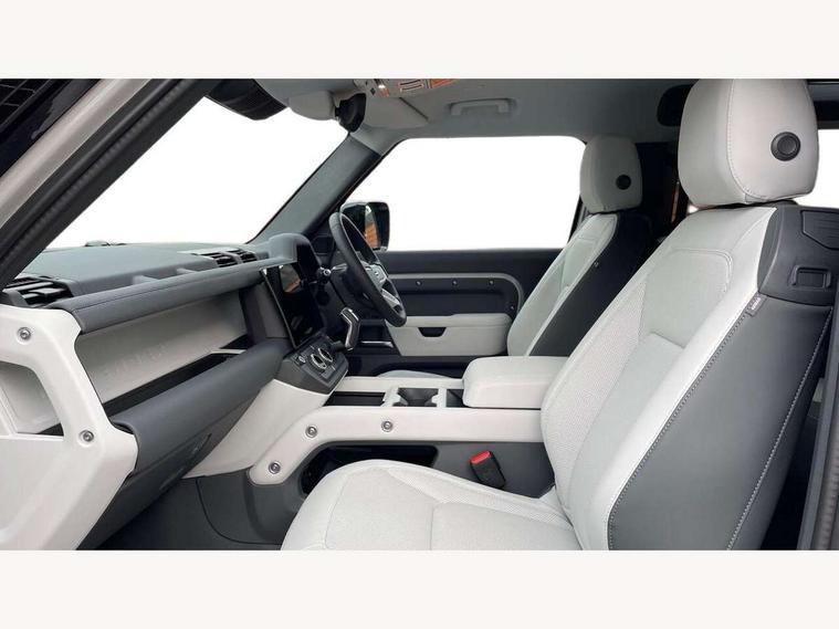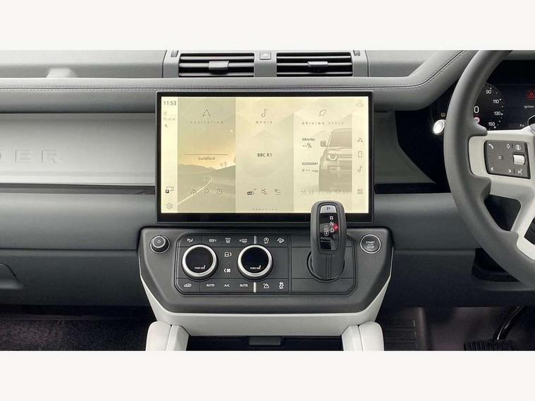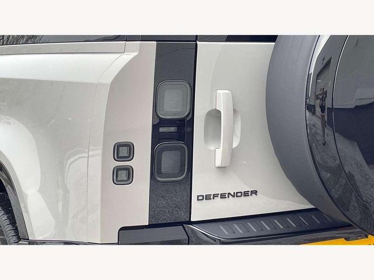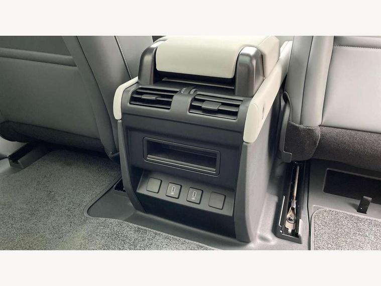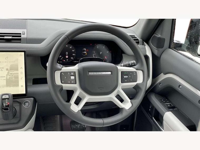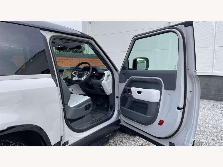 1 x USB-C (power only) & 1 x USB-C (power & data) in Row 1, 2 x USB-C in Row 2, 11.4" touchscreen, 360 degree parking aid, 3D Surround Camera with 360 View, 180 Rear View, Front Traffic Detection, Forward Vehicle Guidance, Tow Hitch Assist and clear sight Ground View, Adaptive cruise control, Android Auto, Apple CarPlay, Blind spot assist, Bluetooth system, Brake pad wear indicator, Clear exit monitor, Connected navigation pro, Driver attention monitoring system, Electric power assisted steering (EPAS), Interactive driver display, Lane keep assist, Push button start, Rear collision monitor, Rear traffic monitor, Traffic sign recognition with adaptive speed limiter, Trip computer, Wireless device charging, 8 speed automatic transmission, All wheel drive system, Twin speed transfer box, DAB Radio (Digital Audio Broadcasting), Meridian 400w sound audio system with 11 speakers and subwoofer, Pivi pro connected, Automatic headlight levelling, Automatic headlights, Black exposed rear recovery eyes, Body coloured bonnet, Darkened LED tail lights, Electric heated/power fold door mirrors with approach lights and auto dimming driver side, Electric windows with one touch open/close and anti-trap, Follow me home lighting, Front fog lights, Heated rear window with timer, Heated windscreen, LED 3rd brake light, LED tail lights, Panoramic rear side glass, Privacy glass, Puddle lights, Rain sensing windscreen wipers, Rear fog lights, Rear wiper, Side hinged tailgate, Standard tail door, Trailer stability assist, X-Dynamic badge, 12V power socket in loadspace, 3 seat bench in 2nd row, Alpine lights, Configurable cabin lighting, Durable rubber cabin flooring, Durable rubber loadspace flooring, Ebony carpet mats, Flat load space floor tray, Footwell lights, Front head restraints, Loadspace cover, Loadspace Hook, Multifunction steering wheel, Overhead stowage for sunglasses, Rear headrests, Rear ISOFIX, Rear reading lights, Single front passenger seat, Standard seat configuration, Storage glovebox, Sunvisors with illuminated vanity mirrors, Twin front cupholders, Non-smoker package, Online pack with data plan - Defender, 5 x 3 point seatbelts, ABS, Brake hold function, Cornering brake control (CBC), Customer configurable autolock, Driver and passenger airbags, DSC - Dynamic Stability Control, EBD - Electronic brakeforce distribution, Electric parking brake (EPB), Emergency brake assist, Emergency braking, ESP + traction control, Front airbags with passenger seat occupant detector, HDC - Hill descent control, Hill launch assist, Low traction launch, Remote for (e-Call, Optimised assistance call, InControl app, Climate, beep and flash and door), RSC - Roll stability control, Seat belt reminder, TPMS (Tyre pressure monitoring system), Alarm, Immobiliser, Intrusion sensor, Keyless entry, Locking wheel nuts, Secure tracker pro,
