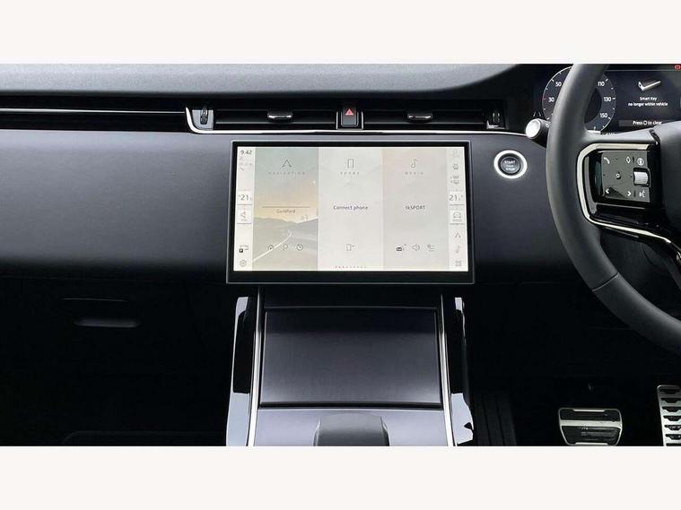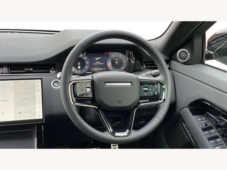 11.4" touch screen, 3D 360 degree surround camera with wade sensing, Adaptive cruise control, Android Auto, Apple car play, Blind spot assist, Bluetooth connectivity, Brake pad wear indicator warning light, Driver condition monitor, eCall emergency system, Eco mode, Electronic power assisted steering (EPAS), Front and rear parking aid, InControl remote, Interactive driver display, Land Rover InControl apps, Lane keep assist, Pivi pro connected includes diamond pivi variant, smart settings, connected navigation pro, nuance speech licence, Powered tailgate/boot lid, Rear collision monitor, Rear traffic monitor, Tailgate, Traffic sign recognition with adaptive speed limiter, Voice control system, Wireless device charging, All terrain progress control, Diesel exhaust fluid (DEF) large tank, Efficient Driveline, Large fuel tank, Passive suspension, Terrain Response 2, Digital Audio Broadcast radio-DAB, Meridian sound system with 400W subwoofer and 11 speakers, Steering wheel mounted controls, Acoustic laminated windscreen, Auto dimming interior rear view mirror, Auto headlights, Auto high beam assist, Automatic headlight levelling, Black contrast roof, Electric windows with one touch open/close and anti trap, Fixed panoramic sunroof with powered sunblind, Flush deployable exterior door handles, Front and rear recovery eyes, Heated rear window with timer, Heated washer jets, Heated windscreen, LED headlights with signature DRL and LED tail Lights, Metallic paint, Power fold, auto-dimming, heated door mirrors with approach lights and auto dimming driver side, Privacy glass, Rain sensing windscreen wipers, Rear animated directional indicators, Rear fog lights, Rear side wing doors, Rear wiper, Side repeater indicators in mirror, Tailgate spoiler, Third brake light, Winter wiper park position, 12 way driver memory and 10 way passenger electric front seats with 2 way manual headrest + 4 way lumbar support, 40:20:40 split folding rear seats with centre headrest and armrest, Ambient interior lighting, Bright metal pedals, Cabin lighting, Carpet mats, Chrome tread plates with range rover branding Includes stainless steel loadspace scuff plate with etched graphic, Customer configurable single point entry, Front and rear cupholders, Grained Leather upholstery, Heated front seats, Heated steering wheel, Isofix system on outer rear seats, Manually adjustable steering column, Overhead lighting console, Overhead stowage for sunglasses, Passive front head restraints, Rear air vents, Rear head restraints, Satin chrome gearshift paddles, Single passenger seat, Standard steering wheel with Moonlight Bezel, Sunvisors with illuminated vanity mirrors, Twin sliding front centre armrest, Two zone climate control, Black exterior styling pack - Evoque, Power socket pack 2 - Evoque, 3 rear 3 point seatbelts, Anti-lock braking system (ABS), Black brake calipers, Brake hold function, Customer configurable autolock, DSC - Dynamic Stability Control, Electronic brake force distribution, Electronic parking brake, Electronic traction control, Emergency braking, Front and rear seatbelt reminder, Hill descent control, Hill launch assist, Low traction launch, Occupant protection assist, Passenger seat occupant detector, Power operated child locks, Roll stability control, Six airbags - Driver and passenger airbags/driver knee airbag/front side airbag and curtain airbags, Torque vectoring brake, Tyre pressure monitoring system, Alarm, Immobiliser, Intrusion sensor, Keyless entry, Locking wheel nuts, Secure tracker pro, Black brushed aluminium finisher, 19" gloss black alloy wheels - Style 5136, All season tyres, Tyre repair system,