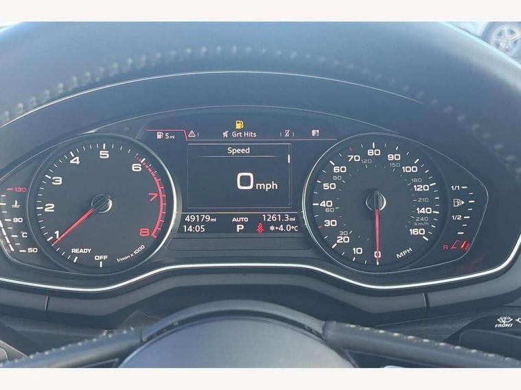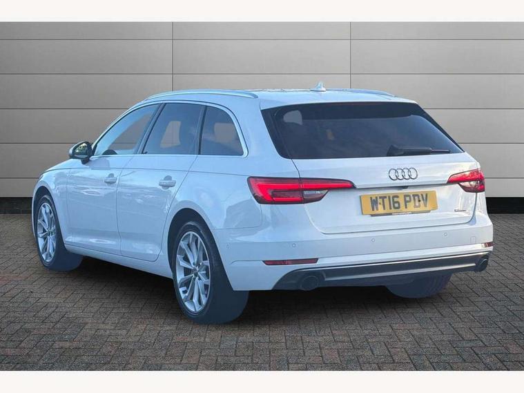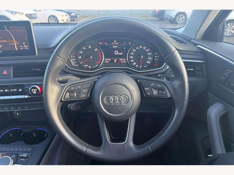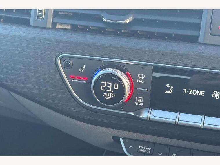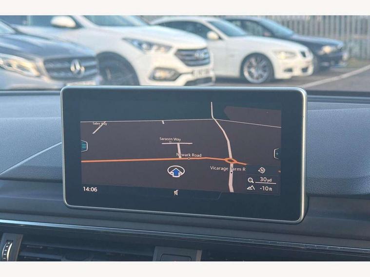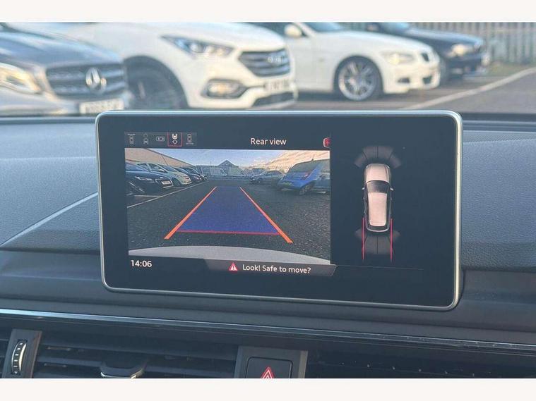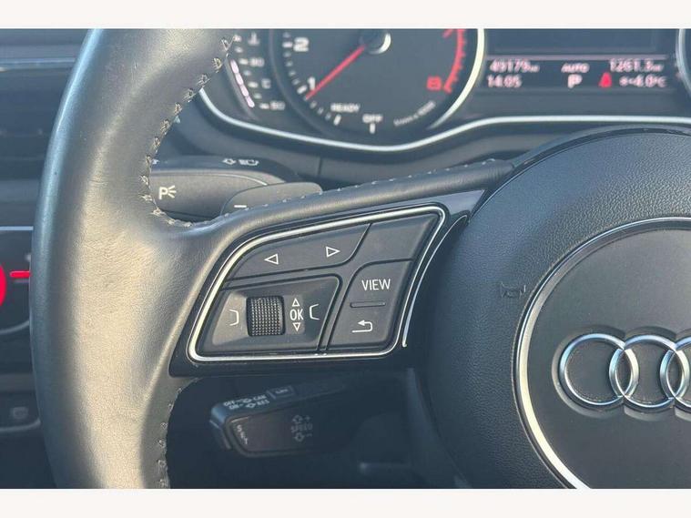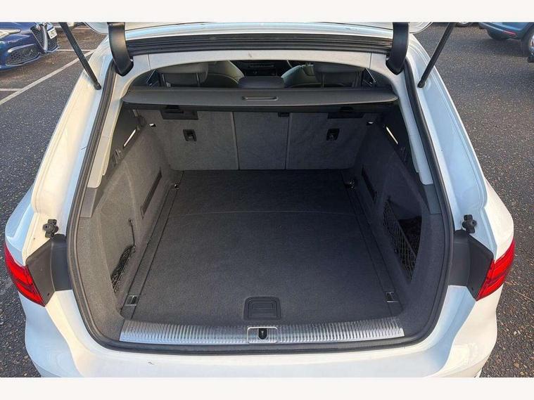 Audi drive select, Audi Pre sense collision avoidance, Electro-mechanical PAS, Power boot opening and closing, Service interval indicator, Stop/start button, Voice control system, 2 USB ports, Aux input, DAB digital radio module, MMI radio plus with CD player, Acoustic windscreen, Aluminium roof rails, Auto dimming rear view mirror, Automatic headlights + automatic windscreen wipers, Body colour bumpers, Body colour door mirrors, Chrome rolled exhaust, Electric adjustable heated door mirrors, Electric front windows, Electric rear windows, Headlight range control, LED daytime running lights, Rear diffuser in Twilight grey matt, Rear wiper, Twilight grey matt radiator grille with chrome inlay, 3 zone climate control, Aluminium door sill trims, Front centre armrest with 12v socket, Front/rear floor mats, Gearshift paddles, Isofix child seat preparation for front passenger/outer rear seats inc passenger airbag deactivation, Jack and tool kit, Reach + rake adjustable steering column, Rear headrests, Retractable load area cover, Split folding rear seats, Top tether anchor plate for isofix child seat, Exterior aluminium pack - A4, 3 point seatbelts on all rear seats, ABS/EBD, Adaptive driver and front passenger airbags, Electromechanical parking brake, ESP, First aid kit, Front head airbags, Front seatbelt pretensioners + load limiters, Front side airbags, Seatbelt warning, Traction control, Tyre pressure monitoring system, Warning triangle, Locking wheel bolts, Remote central locking, Thatcham category 1 alarm + immobiliser, Space saver spare wheel,