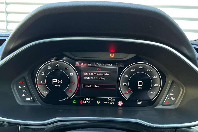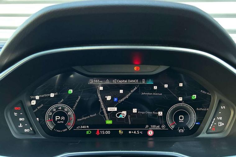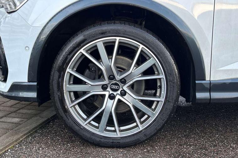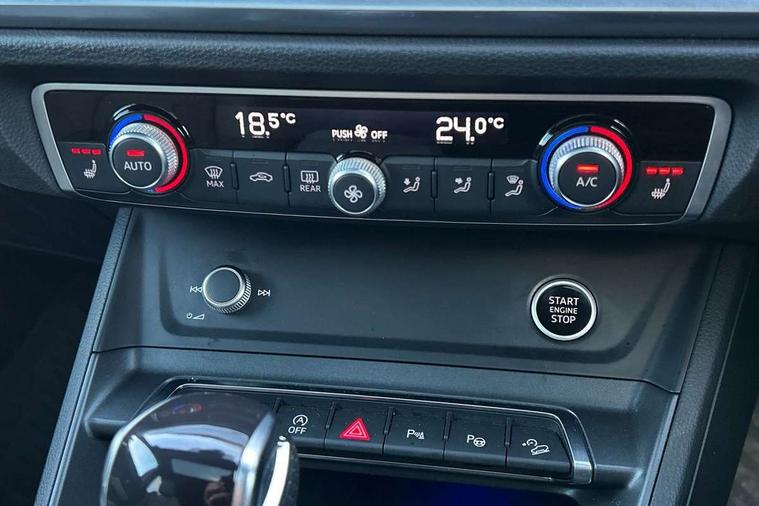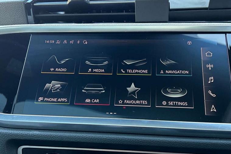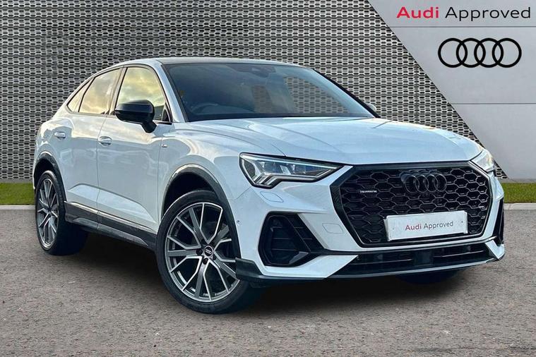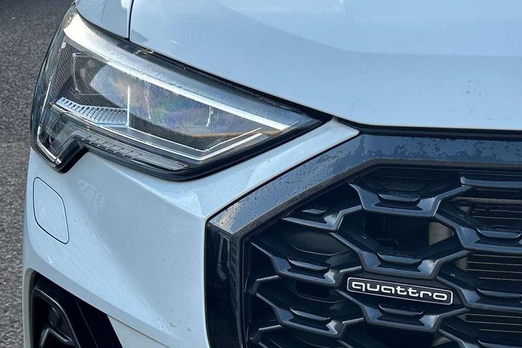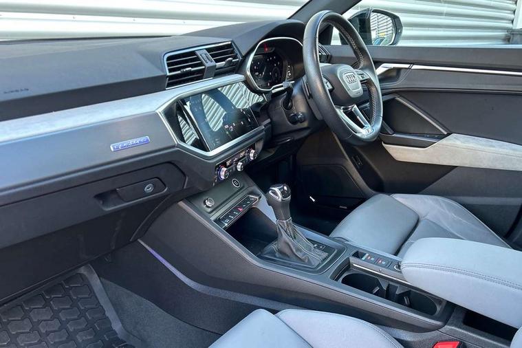 360 degree parking camera, Audi connect safety and service (e-call), Audi drive select, Audi lane departure warning, Audi virtual cockpit plus, Bluetooth interface, Camera based traffic sign recognition, MMI Navigation Plus with high resolution 10.1 inch touchscreen colour display, Power operated tailgate, Progressive steering, Rear cross traffic assist, Service interval indicator, Smartphone interface includes wireless Apple carplay/Android Auto, Start stop system with recuperation, Voice control system with natural language interaction, Adaptive suspension with damping control, 2 USB-C ports with charge and data functions, DAB digital radio module, SONOS premium sound system, Acoustic windscreen, Audi Beam uses LEDs to project Vorsprung logo, Auto dimming door mirrors, Auto dimming frameless rear view mirror, Bumpers and underbody protection in contrasting manhattan grey paint finish, Diffuser grille in grained matt black, Diffuser trim in selenite silver, Electrically folding, adjustable and heated door mirrors with integrated LED side indicators and kerb view function for passenger side, Front and rear electric windows, Front fog lights, Front side air inlets in selenite silver, Headlight washers, High gloss black finish B and C pillars, LED daytime running lights, Matrix LED headlights with LED rear lights and dynamic front and rear indicator, Panoramic opening glass sunroof, Privacy glass dark tinted rear and rear-side windows (from B-pillar backwards), Rain and light sensors, Rear underbody protection in matt black, 12V socket in rear centre console, 4 way electric lumbar support for driver and front passenger, 40:20:40 folding with manual adjustment for 60:40 forwards/backwards position and backrest angle, Adjustable rear seat bench/backrest with centre armrest and cupholder, Black cloth headlining, Dual zone electronic climate control, Electrically adjustable front seats, Front and rear black floor mats with contrast stitching, Front and rear headrests, Front and rear roof module including reading lights, Front centre armrest, Glove compartment lighting, Heated front seats, Height and reach adjustable steering wheel, Illuminated door sill trims with S logo, ISOFIX child seat mounting for front passenger with airbag deactivation and outer rear seat including top tether attachment point for outer rear seats, Leather steering wheel in 3-spoke design with multifunction plus and shift paddles, Luggage compartment light, Perforated leather gearknob, Stainless steel luggage compartment sill finisher, Stainless steel pedals, Black styling pack - Q3 Sportback Vorsprung, Driver Assistance Pack - Q3, Multi coloured extended ambient interior lighting pack - Q3, Non smoking pack - Q3, 3x3 point rear seatbelts, 6 airbags - Driver, front passenger, curtain and side windows, Audi pre-sense front with pedestrain and cyclist recognition, Electrically operated child locks on rear doors, Electromechanical parking brake, Electronic stabilisation control including ABS, ASR and EDL, Hill descent control, Hill hold assist, Pre sense basic, Seatbelt monitoring, Tyre pressure warning, Warning triangle and first aid kit, Advanced key, Anti theft alarm, Anti theft wheel bolts, Remote central locking, Black dashboard, Detail dashboard around MMI touch colour display in glass look, black with surround in aluminium look, Leatherette door armrest,