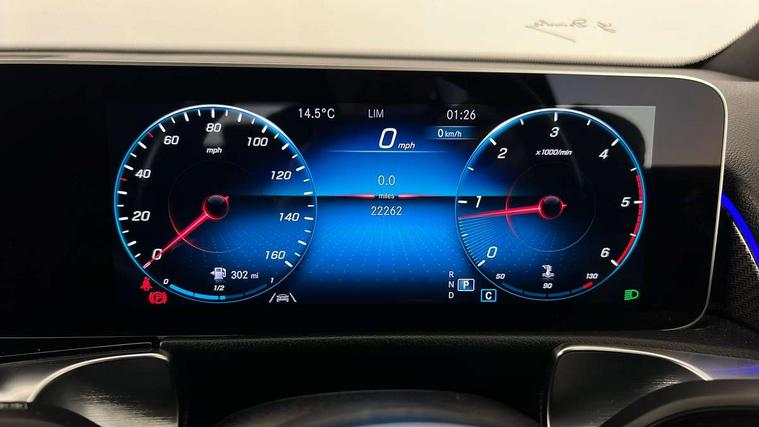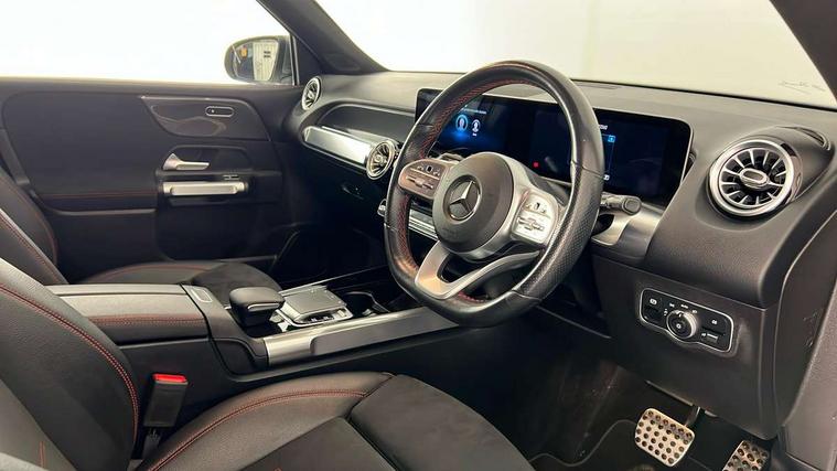 10.25" Digital instrument cluster display screen, 10.25" Digital media screen display, Active lane keeping assist, Attention assist - Monitors steering behaviour and long journey fatigue, Brake pad wear indicator warning light, Cruise control with limiter, DYNAMIC SELECT with a choice of driving modes (ECO, Comfort, Sport and Individual), Easy-pack tailgate, ECO start/stop function, Fluid level warning indicator for fuel, oil, coolant and washer fluid, Hard disk navigation, Hey Mercedes Voice activation, Lamp failure indicator, MBUX augmented reality for navigation, Mercedes me connect including emergency call system, accident recovery, breakdown management and maintenance, Outside temperature gauge, Owners manual and service booklet in English, Parameter steering system, Pre-installation for Vehicle Monitoring, Pre-installation for Vehicle set up, Pre-installation of private car share, Radio aerial integrated into front and rear windshields, Service indicator (ASSYST), Smartphone integration with Apple CarPlay and Android auto, Speed limit assist, Trip computer in multifunction display with current consumption indicator, Wireless charging, 23.8 litre AdBlue fuel tank, 60 litre fuel tank, Comfort suspension, Rear axle multi-link, DAB digital radio tuner, MBUX multimedia system with DAB digital radio and touchpad including satellite navigation, Mercedes Benz advanced sound system (225 W) with 10 speakers, 1 central speaker, speakers on doors, a tweeter on door, one sub woofer + boost amplifier, Pre installation for Mercedes Benz Link, USB (type C) port in front stowage compartment, USB (type C) ports (2) in stowage compartment, Adaptive brake lights, Aerial for GPS, AMG bodystyling door panels black grained with chrome plated inserts, AMG bodystyling front apron with chrome splitter, AMG bodystyling rear apron with diffuser optics and chrome trim element, AMG specific front and rear bumper including underride guard in high gloss chrome, Beltline strips and weather strip in chrome, Body coloured door mirror caps, Electric adjustable and heated door mirrors with integrated LED side indicators, Exhaust system with dual flow exhaust pipes (non-functional), Front and rear electric windows, Headlamp assist automatic headlamp activation, Heated glass rear windscreen + timer control, High level LED third brake light, LED high performance headlamps with integrated LED daytime running lights, LED tail lamp, Polished aluminium roof rails, Pre-installation for trailer coupling, Privacy glass with dark tinting on rear side windows and rear window, Radiator grille with pins in chrome and single louvre with chrome insert, Rain sensor windscreen wipers, Rear fog lamp, Two visible tailpipe trim elements exhaust, 3 spoke multifunction sport steering wheel in nappa leather, Air conditioning - Two zone thermotronic luxury automatic climate control with display, AMG sports pedals with brushed stainless steel surfaces and black rubber studs, Artico man-made leather/Microfibre Dinamica upholstery with red contrast stitching, Automatic child seat recognition sensor, Black floor mats with AMG lettering, Black roof lining, Fore/aft adjustment rear seats, Freight packaging with tie-down hooks, Front centre armrest with stowage, Front door sills with illuminated Mercedes lettering, Front passenger grab handle with brushed side silver chrome, Galvanished gear shift paddles on steering wheel, Heated front seats, Height/reach adjustable steering column, Interior lighting - 64 colour Ambient lighting, Luggage net on driver/front passenger seat backrest, Net in front passenger footwell, Rear armrest with two integral cup holders for drinks, Spectacles compartment for driver, Sports seats with adjustable head restraints, Stowage compartment in centre console, Stowage compartment with retractable cover, Touchpad on center console, Twin front cup holders, Two outer rear seat isofix and top tether child seat fixing points, Interior lighting with light and sight pack - GLB, Keyless Go comfort pack - GLB, Mirror pack - GLB, Off-road engineering package - GLB, Parking pack - GLB, Seat comfort pack - GLB, 3 rear 3 point seatbelts, Active bonnet pedestrain safety measure which detects an impact and raises bonnet by 65mm, Active brake assist includes forward collision warning system with autonomous braking, Adaptive brake assist with hold function and hill start assist, Airbags - kneebag for driver, Anti-lock braking system (ABS) with brake assist, Childproof locks manually operated for rear doors and electrically operated for rear power windows, Crash responsive emergency lighting, Driver and front passenger head and sidebags, Driver and front passenger windowbags, Dual stage driver and front passenger airbags, Electronic parking brake, Electronic stability programme with acceleration skid control, ESP curve dynamic assist, Front and rear seatbelt reminder, Front brake callipers with Mercedes Benz lettering, Front passenger seat occupancy sensor, Perforated and ventilated front brake discs, Tyre pressure monitoring system, Warning triangle and first aid kit, Alarm system with immobiliser and interior protection -Thatcham category 1, Remote central locking and crash sensor with emergency opening function, Vehicle key with decorative surround in chrome, Black air vents with chrome surround, Carbon structure trim, 19" AMG 5 twin spoke light alloy wheels painted in tantalite grey with high sheen finish, Summer tyres, Tirefit tyre sealant kit,