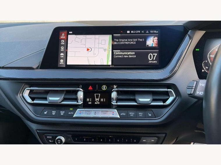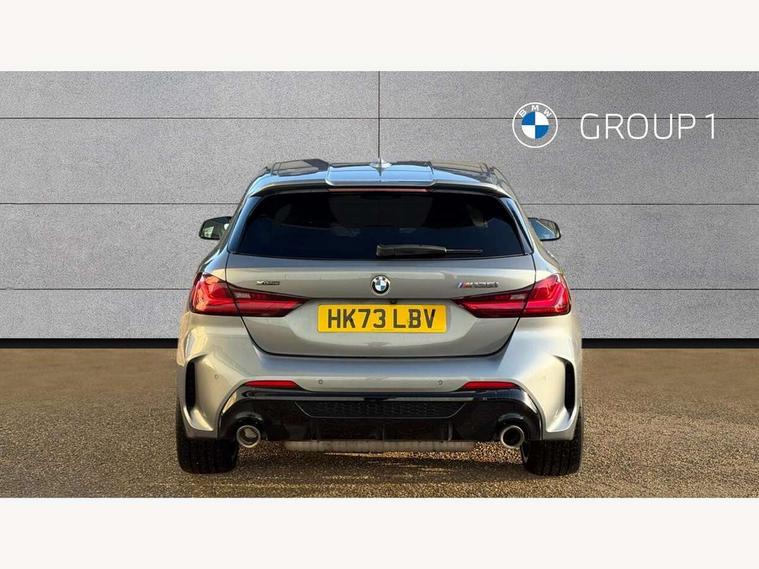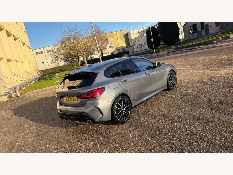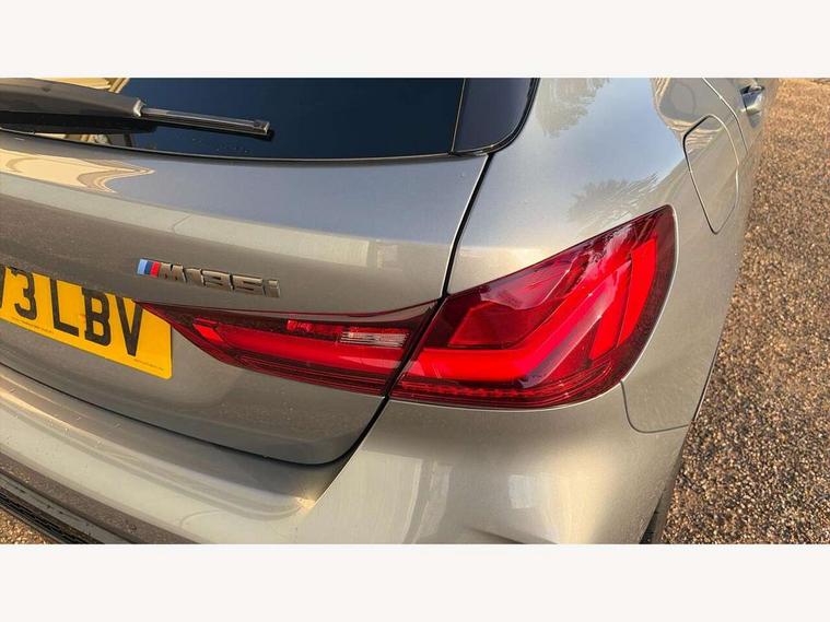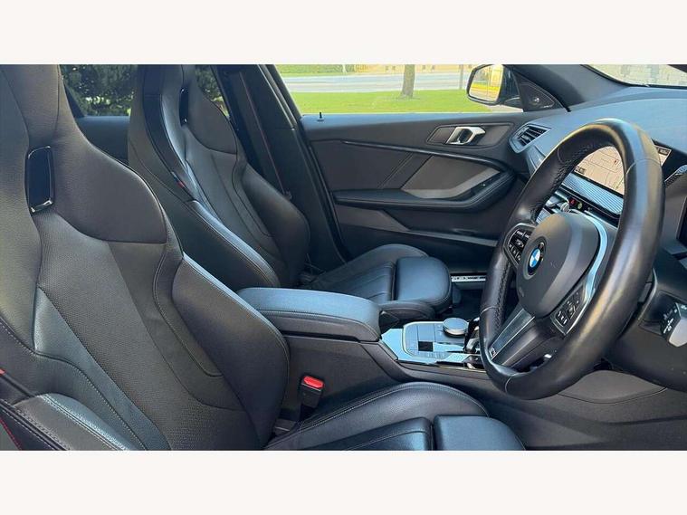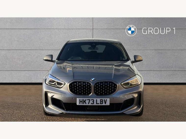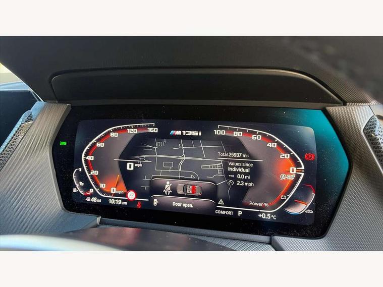 Active guard plus, Attentiveness assist, BMW ConnectedDrive online services, BMW Teleservices, Check Control warning system for monitoring of lights and door/luggage compartment open warning, Cruise control with speed limiter, Eco pro mode, Electric power steering, Electro hydraulically controlled multi-plate clutch transfers drive to rear axle and with power take-off device located on the front differential., Energy efficient operating strategy, Front axle single joint with specific axle kinematics to minimise drive influences on steering + provide increased rigidity agile driving behaviour, Gearshift time display in manual mode, Integrated owners handbook, Lane departure warning system, M Sports steering with M135i xDrive specific settings, Oil sensor for level and grade, On board computer, Optimum shift indicator, Personal Profile, Pull away assistant, Rigidly mounted rear subframe - Multi link construction with separate spring / damper configuration and excellent driving characteristics, Speed limit Info including no-overtaking indicator, Sporty fast gear shifting in sport mode, Aluminium lightweight construction, Anti roll bar front and rear, Balancer shaft, Double VANOS, Drive Performance Control, Eight speed sport automatic transmission with gearshift paddle switches, Electronic differential lock, Electronic selector lever, Engine cover with M performance designation, High precision injection, Larger fuel tank capacity (50 litres), Launch control, M135i specific heavily de-throttled engine intake air guide, M135i specific high-performance cooling package, M135i specific larger turbocharger with integrated divert-air valve, Petrol Particulate Filter, Twin tube gas filled shock absorbers with degressive characteristic curve, VALVETRONIC engine management, Variable, stepless and infinitely adjustable distribution of drive torque between the front and rear axles, xDrive intelligent all wheel drive with M135i specific reinforced components, DAB Digital radio, Auto dimming rear view mirror, Automatic headlight beam throw control, Automatic windscreen wipers and automatic headlight, Body colour door handles, Body colour roof trims, Cerium grey exterior mirror caps, Direction indicator side lights in exterior mirrors, Electrically adjustable exterior mirror with mirror adjustment switch on drivers armrest and aspheric on driver side, convex on passenger side, Exhaust tailpipe, Cerium Grey with bevelled finish - twin, round 100mm, left and right split, Fading support, Folding side mirrors with auto dimming/folding wing mirrors with auto dimming, Follow me home headlights, Front and rear bumper system with replaceable deformation elements, Front and rear electric windows with open and close fingertip control, anti trap facility and comfort closing, Front door sill finishers with M135i designation, Green tinted heat protection glazing, High gloss shadowline window frame, Recess cover mirror frames and B/C pillar embelisher trim, High level third brake light, Integrated front windscreen with washer jets, Kidney grille frame in Cerium Grey with Mesh design, LED daytime running lights, LED eyebrow turn indicators, Lightweight engineering, M logo designation side in cerium grey, M Performance exhaust system with valve control and minimised exhaust back pressure, M Performance specific setup, M Sport spoiler, Matt black air guide grilles, Matt black wheel arch trim, Model designation on electric bootlid includes xDrive designation for M135i xDrive, Nearside reverse light in rear light cluster, Preparation for high beam assistant, Rear fog lights, Rear side wing doors, Rear window wiper, Reinforced crank drive, new pistons and adapted con rods, Shark fin antenna, Trailer stabilisation logic, Visible VIN plate, Welcome lighting, 12V power socket in front centre console with blanking plug, 3 rear seat head restraints, 3 seat bench in 2nd row, 3 spoke sports leather steering wheel with black leather and stitching, pearl chrome decorative finish, specific M Badge, Anthracite headlining, Black boot net with lashing eyes, Cargo function on 2nd seat row, Child seat ISOFIX attachment for two outer rear seats and front passenger seat with anchorage points, Conditioned based service, Driver and front passenger backrest net on rear, Driver and front passenger seat heating, Driver side folding compartment in instrument panel, Folding rear clothes hook, Four grab handles integrated in roof lining, Front and rear door pockets with bottle holders, Front and rear side armrest integrated into door trim, Front armrest, Front M sports seats, Glove compartment, Height adjustable front head restraints, Luggage compartment for bag hooks on left and right, foldable luggage compartment liner and four lashing eyelets, Manual adjust steering wheel, Multi-function controls for steering wheel, Single front passenger seat, Storage compartment in centre console, Storage compartment in luggage compartment, Stowage of the parcel shelf in luggage compartment trim, Sun visors with vanity mirrors and insert tab, Two front centre console cupholders, Two zone automatic air conditioning, Type C two USB ports in rear centre console, Velour floor mats, Additional interior lighting pack - 1 Series M135i, BMW live cockpit professional pack- 1 Series, Connected pack professional - 1 Series, Interior lights pack - 1 Series, M Sport exterior styling aerodynamics pack - 1 Series 135i, 2 tone horn, 3 point seatbelts on all seats, front pyrotechnic belt tensioners, stopper and belt force limiters, rear coded belt buckles, Airbags - Front driver/passenger, front and rear curtain head protection, front side, manual deactivation of front passenger airbag, Anti lock braking system (ABS) with brake assist, BMW emergency call, Brake drying, Braking readiness, Child proof locking system in rear door, City braking function, Comfort modes, Cornering brake control, Crash sensor activating of airbags, Unlocking doors, hazard warning lights, interior light