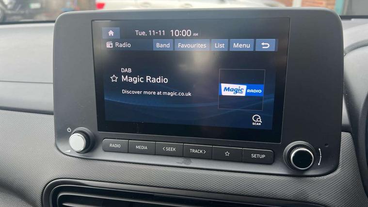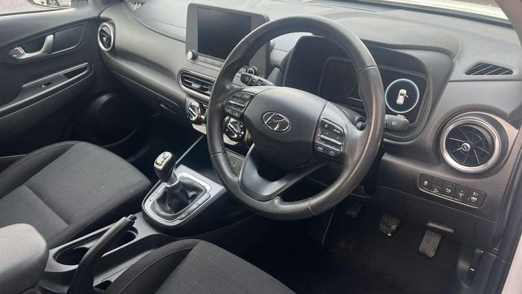 8" Touchscreen display audio + smart device integration, Bluetooth connectivity, Cruise control + speed limiter, Digital clock, Driver attention warning, Driver supervision instrument cluster with 10.25" LCD display, eCall emergency call system, Forward collision avoidance assist with pedestrian detection, Lane follow assist, Lane keep assist, Leading vehicle departure alert (LVDA), Parking system with rear camera and guidance system, PAS, Phone connection with apple carPlay and android auto, Rear parking sensor, Roadside assistance, Tailgate, Windscreen washer fluid sensor and warning indicator, 6 speed intelligent manual transmission, 6 speakers (2 front, 2 tweeters, 2 rear), Front USB ports, RDS and Digital DAB, Steering wheel mounted audio/phone controls, Automatic headlights with dusk sensor, Body colour door mirrors and handles, Door mirror integrated indicators, Electric front/rear windows with drivers one touch/anti-trap, Electrically adjustable and heated door mirrors, Halogen headlights, Halogen rear lights, LED daytime running lights, Positioning Lights - LED, Rain sensor, Rear roof spoiler with integrated LED brake light, Rear side wing doors, Rear wiper, Roof rails, Tinted glass with front door glass and windscreen with shade band, Variable front intermittent wipers, 12V power outlet in front console, 3 seat bench in 2nd row, 60/40 split folding rear seat, Adjustable head restraints, Air conditioning, Centre interior light, Cloth upholstery, Door scuff plate, Driver's seat height adjustment, Driver/passenger sunvisors and illuminated vanity mirrors, Front interior light, Front passenger seat manual adjustments, Height/reach adjustable steering column, Isofix rear child seat fastenings, Leather wrapped steering wheel and gear knob, Luggage compartment lighting, Luggage hooks, Metal paint effect interior door handles, Parcel shelf, Rear centre console with air vents, Single front passenger seat, Sunglasses holder, Vertical adjustment rear head restraints, Trailer wiring package - Kona, Airbags - front, front side and curtain airbags, Anti-lock brake system (ABS), Childproof rear door locks, Downhill brake control, EBD + Brake Assist, Electronic stability control, Fasten seatbelt reminder, Fixed 3 point for second row centre passenger seatbelt, Front seatbelt pretensioners, Height adjustable front seatbelts, Hill start assist control (HAC), Manual parking brake, Passenger airbag deactivate switch, Rear seat alert, Traction control, Tyre pressure monitoring system, Alarm/immobiliser, Deadlocks, Folding key, Locking wheel nuts, Remote central locking, 17" Alloy wheels,