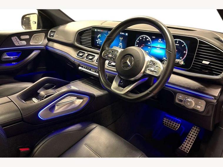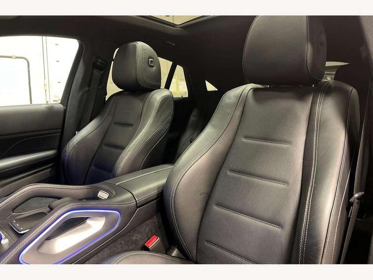 Attention assist, Cockpit display 12.3" widescreen digital instrument cluster, Crosswind Assist, Cruise control, Direct steer speed sensitive steering, DYNAMIC SELECT with a choice of driving modes (ECO, Comfort, Sport and Individual), Easy-pack tailgate - Powered opening/closing automatically, ECO start/stop function, Head up Display, Lane keeping assistant (LKA), Mercedes me connect including emergency call system, accident recovery, breakdown and maintenance management, Outside temperature display, rear seatbelt status indicator, Parking pilot with 360 degree camera, Reversing camera, Service indicator (ASSYST), Smartphone integration with Apple CarPlay and Android auto, Sports direct steer system with speed sensitive power assistance, Traffic Sign Assist, Traffic sign recognition including wrong way warning function and display of posted speed limits in the instrument cluster, 4MATIC permanent four wheel drive, 85 litre fuel tank, 9G TRONIC automatic transmission with steering column gear selector, DIRECT SELECT steering wheel gearshift paddles, Airmatic air suspension with adaptive damping system, Diesel particulate filter (DPF), Bluetooth interface for hands free and audio streaming, Burmester surround sound system, DAB Digital radio, Hard disk navigation with MBUX multimedia system, 3rd brake light, Adaptive brake lights, Adaptive high beam assist plus, Aluminium look, illuminated running boards with rubber studs, AMG bodystyling front and rear bumpers, Body colour door mirrors, Body coloured bumpers, Daytime running lights, Electric panoramic sunroof with sunblind, Electric windows with one touch opening/closing and obstruction sensors, Exhaust system - twin pipe with two integrated chrome tailpipe trims, Front and rear underbody protection with chrome look finish, LED tail lamp, Magic vision control with adaptive windscreen wiper system, Multi beam LED headlights, Privacy glass - heat insulating dark tinted glass, Radiator grille with integrated star and single louvre in matt iridium silver with chrome trim, Rain sensing windscreen wipers, Rear side wing doors, Rear wash/wipe, Top surround of side windows in polished aluminium, 2 cup holders in front and rear, 2 rear head restraints, 3 seat bench in 2nd row, 3 spoke AMG multifunction steering wheel with touch control buttons, trimmed in black nappa leather with flattened bottom section, 4 way adjustable front head restraints and 2 way rear head restraints, 40:20:40 split folding rear seats, AMG floor mats with AMG lettering, Artico man-made leather upper dash trim, Automatic child seat recognition sensor, Climatised front seats, Courtesy lights in rear grab handles with reading light functionality, Driver and front passenger cup holders temperature controller, Electric adjust front headrests, Electrically adjustable front seats with memory function, Electrically height and reach adjustable steering column with memory, Folding rear armrest, Front centre armrest with stowage compartment and illuminated grab handles, Glove compartment - lockable, air conditioned and illuminated, Heated front seats, Illuminated stainless steel door sill panels with Mercedes-Benz lettering, Interior lighting - 64 colour Ambient lighting, Luggage compartment cover, Nappa leather upholstery, Single front passenger seat, Sports pedals with stainless steel surfaces and rubber studs, Sunvisors with illuminated vanity mirrors, Thermotronic automatic 4 zone climate control, Touchpad, Two (type C) USB ports in centre console, Acoustic comfort pack - GLE Coupe, Driving assistance pack - GLE Coupe, Interior chrome package - GLE, KEYLESS-GO Comfort package - GLE Coupe, Memory package - GLE Coupe, Mirror package - GLE Coupe, Parking package - GLE Coupe, 3x3 point rear seatbelts, Active bonnet, Active braking assist, Airbags - windowbags, Anti-lock braking system (ABS), Child proof door locks, Downhill speed regulation (DSR) with switch and variable speed control, Driver/front passenger airbag, Drivers knee airbag, Electronic four wheel traction control, Electronic parking brake, Electronic stability programme with acceleration skid control, First aid kit, warning triangle and high visibility jacket, Front side airbags, Hill hold function, Hill start assist, ISOFIX child seat attachment points two outer rear seats, Perforated front brake discs and brake calipers with Mercedes-Benz lettering, Pre-Safe anticipatory safety system, Tyre pressure monitoring system, Alarm system/interior protection/immobiliser, Chrome surround in electric key, Remote central locking, Urban guard vehicle protection, Dashboard and door, anthracite open pore oak wood trim, 22" AMG 5 twin spoke tremolite grey with high sheen finish light alloy wheels, Summer tyres with noise reducing absorber, TIREFIT with tyre inflation compressor,