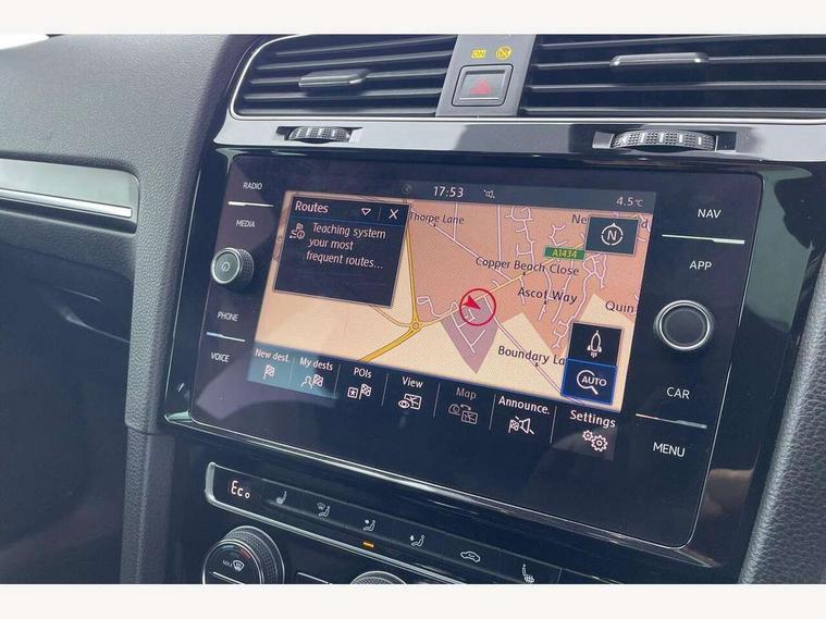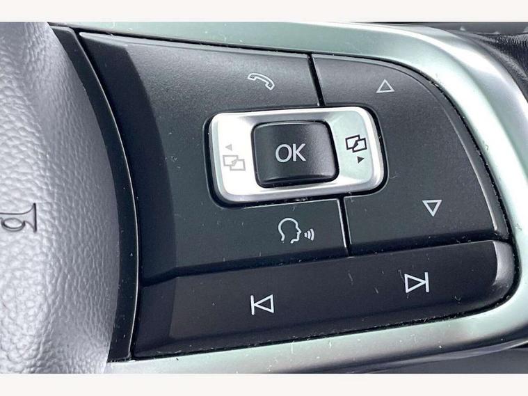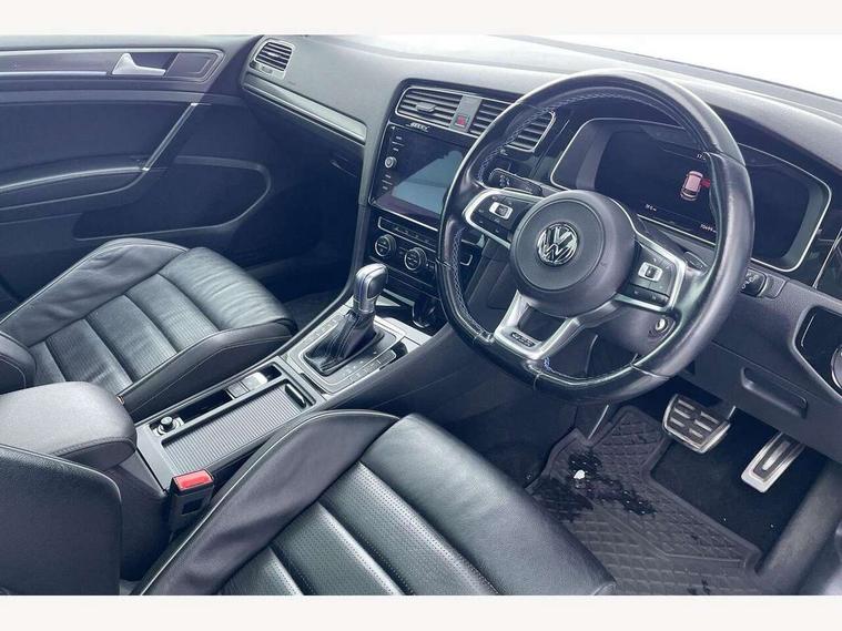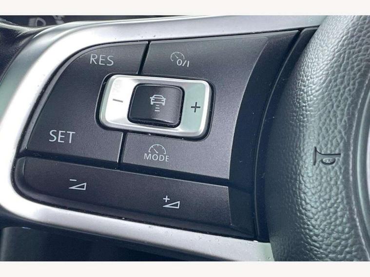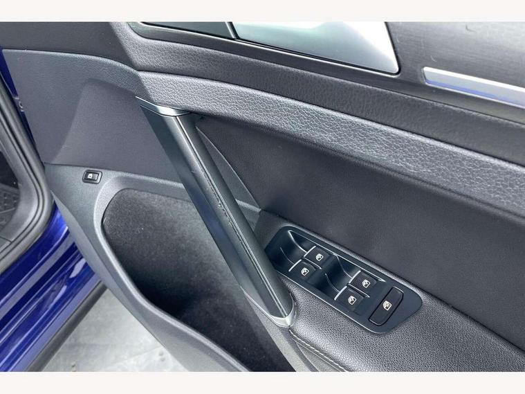 App-Connect, 'Lights On' Reminder warning buzzer, 8" touch screen, Adaptive Cruise Control with pedestrian detection and speed limiter, Bluetooth hands free telephone connection, Brake pad wear indicator warning light, Driver alert system, Driver profile selection, Exterior temperature gauge, Front assistant collision mitigation, Instrument cluster in white, Multifunction computer, PAS - speed related, Rev counter, Trip and service interval display, Ultrasonic front and rear optical and audible parking sensors, Warning buzzer and light for front seatbelts unfastened, XDS electronic differential lock, CD/MP3/WMA, USB and SD card reader, aux-in, Composition media system, DAB Digital radio, 3D-LED-SBBR with sweeping indicator, Auto dimming rear view mirror, Automatic coming/leaving home lighting function, Automatic headlights, Black front air intake and radiator grille with chrome insert, Black rear diffuser, Body colour bumpers, Body colour door handles, Body colour door mirrors, Chrome grille surround, Electric front windows, Electric rear windows, Electrically adjustable and heated door mirrors, Heated rear windscreen, LED daytime running lights, LED rear lights, Rain sensor, Rear roof spoiler, Rear windscreen washer and wiper with interval delay, Side skirts, Twin exhaust tailpipe, 12V socket in luggage compartment, 3 rear headrests, 3 spoke steering wheel, 60/40 split folding rear seat, Air conditioning - 2 zone electronic climate control, Aluminium/leather gear knob, Bag hook in luggage compartment, Black headlining, Boot lashing points, Cooled glovebox, Courtesy light delay, Cover for storage compartment in centre, Dust/pollen filter, Front + rear carpet mats, Front centre armrest with storage box and rear air vents, Front passenger seat height adjust, Front seat back storage pockets, Gearshift paddles, Grab handles, Height adjustable driver's seat, Height/reach adjust steering wheel, Illuminated vanity mirrors, Isofix preparation for 2 rear child seats, Load through provision with rear centre armrest and cupholders x2, Luggage compartment cover, Luggage compartment lighting, Multifunction leather steering wheel with blue stitching, Overhead storage box, Stainless steel pedals, Storage box in luggage compartment, Storage compartments in doors, Sun visors, Ambient lighting pack - Golf, Mirror pack - Golf, 3 point height adj front seatbelts + pretensioners, 3 rear 3 point seatbelts, ABS, Automatic post collision braking, Blue brake callipers, Child locks on rear doors, Driver/Front Passenger airbags, Driver/Passenger whiplash optimised head restraints, Drivers knee airbag, Electronic parking brake with auto hold, ESP with EDL + ASR, Front and rear curtain airbags, Front passenger airbag deactivation, Front side airbags, Pre crash system, Tyre pressure monitor, Alarm with interior protection, Electronic engine immobiliser, Remote central locking with 2 remote folding keys, Chrome-plated light switch surround, Honeycomb black decorative inserts, Piano black centre console, 18" Marseille alloy wheels, Tyre repair kit,