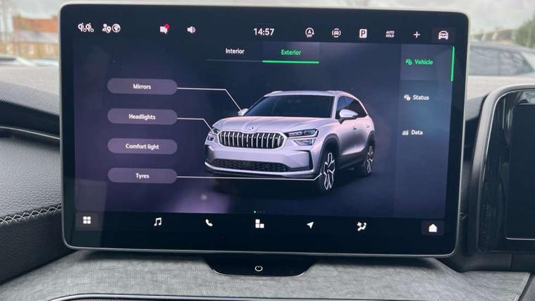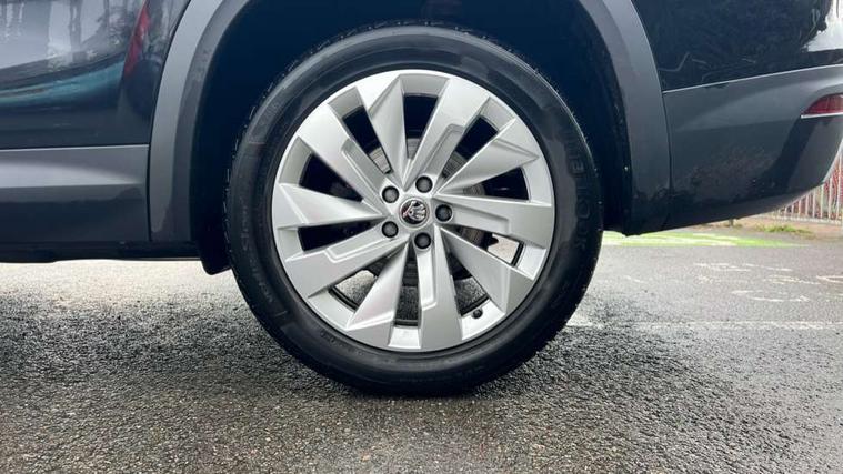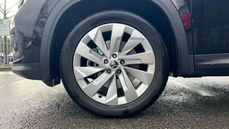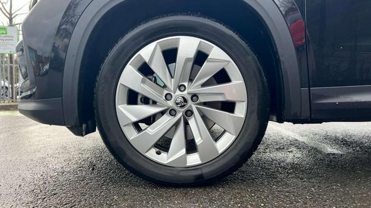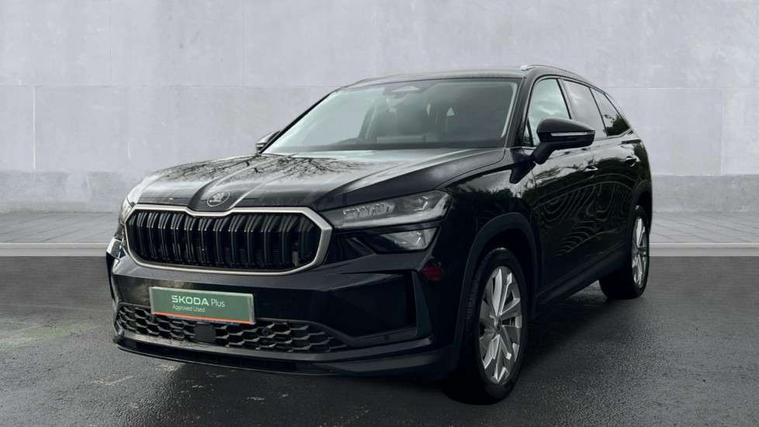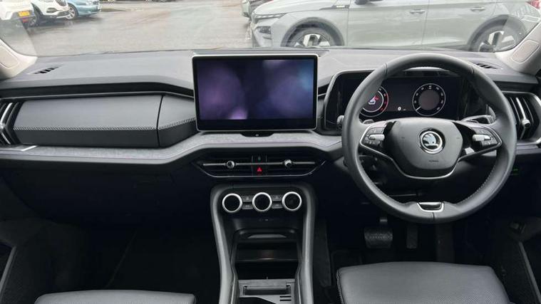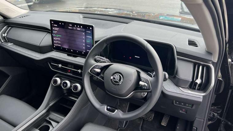 13" satellite navigation touchscreen display, Blind spot detection with door exit warning, Bluetooth system, ChatGPT functionality, Drive mode selector, Driver alert with fatigue sensor, Driver drowsiness alert system, Dry display cleaner, e call+, Front cross traffic assist, Lane assist, PAS, Rear traffic assist, Tailgate unlocking from outside, Traffic sign recognition, USB C Port x 2 in front centre console, Virtual Cockpit - 10.25" digital display, Voice control system, Wireless charging for two smartphones (15W) with cooling function, Wireless SmartLink for Apple CarPlay and Android Auto, Stop/start function, 2x USB-C in the rear, DAB Digital radio, Aero front windscreen wipers with intermittent function, Auto dimming rear view mirror, AWL (all weather lighting) and all weather light with cornering function, Black wheel arch surrounds, Body colour bumpers, Body colour door mirrors and handles, Cornering light and poor weather light, Electric folding /adjustable/separted heated/folding door mirrors, auto dimming with boarding sports and memory function, Electric front and rear windows, Exterior black decorative trims, Heat insulating glass in windshield, Heated rear window, Ice scraper in fuel tank cap, Invisible tailpipe, LED daytime running lights, LED third brake light in rear spoiler, Light assistant with automatic headlight control and coming home feature, Logo projection in door mirrors, Privacy glass, Rear side wing doors, Rear spoiler, Rear window wiper, Red decorative strip between rear LED lights, Safety reflectors on front and rear doors, Unique dark chrome design logo on alloy wheels, Window control switches with black trim, Windscreen wipers with rain sensor, Without engine designation, 1.5l bottle holder points in all door, 12V socket in boot, 1x centre rear reading light, 2 seat bench in 3rd row, 3 configurable smart dials with 32mm coloured display, 3 seat bench in 2nd row, 4 foldable roof handles with rear coat hooks, Ambient interior lighting - Dashboard, front-door stowage compartments, front and rear door panels and footwell lighting, Automatic gear selector on steering wheel, Chrome interior door handles, Driver/front passenger reading lights, Fabric headlining, Fixed bench 40:60:40 split folding backrests, Front and rear floor mats, Front centre armrest with jumbo box storage compartment, cup holder and 12V socket, Front courtesy lights, Height adjustable front headrests, Isofix child seat fittings in outer middle row rear seats and front passenger with top tether, Manually adjustable steering column, Pollen filter, Rear centre armrest with cupholders, Rear seat boot backrest release, Retractable luggage compartment cover, Single front passenger seat, Skoda lettering on steering wheel, Sliding trunk cover, Small Bags on the inner sides of the front backrests, Storage pocket including mobile phone pockets on the backs of the front seats, Sunvisors with illuminated vanity mirrors, Three rear height adjustable headrests, Ticket holder on A Pillar, Tri zone climate control, Umbrella in door panel x1 made from sustainable materials, Upper and lower glovebox with card holder and coin compartment, USB C port by rear view mirror for charging only (15W), Exterior styling pack - Kodiaq, Auto door release and activation of warning lights in the event of an accident, Driver and front passenger airbag with knee airbag and front passenger airbag deactivation, Electric child locks, Electronic parking brake, ESC (incl. ABS+EMD+MSR+ASR+EDL+HBA+DSR+RBS+ESBS+MCB+TSA+XDS), Front assist with braking reaction to vehicles, pedestrians and cyclists, Front disc brakes, Fuel cut off safety device, Height adjustable front 3 point seatbelts + pretensioners, Hill hold control, Junction assist with automatic emergency braking, Rear disc brakes, Safety vest holder in door, Seat belt reminder for all seats, Three point rear seat belts, Two tone horn, Tyre pressure monitor, Anti-theft wheel bolts, Immobiliser, Remote central locking with 2 keys, Breakdown kit,