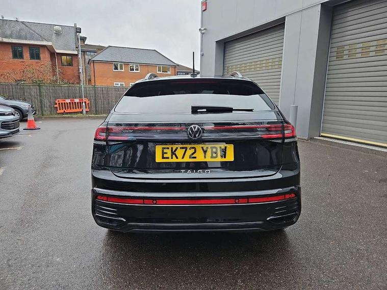 App-Connect including App-Connect Wireless, Digital cockpit pro - 10.25" high resolution TFT dash display screen with customizable menus and information, Driver alert system, Driving profile selection, e-Call (emergency call), Power Steering, Travel assist including emergency assist, Washer fluid level indicator, Wireless Charging including Bluetooth, Start-stop system with battery regeneration (recuperation - energy recovery during braking), XDS electronic differential lock for improved traction and handling, Digital radio reception (DAB+), Diversity antenna for FM reception, WeConnect plus, Ambient lighting with logo projection, Aspherical driver's exterior mirror, Auto headlights, Body coloured bumpers, Body coloured exterior mirror housings and door handles, Bumpers in R-Line style, Electric windows, External USB type C socket and charging sockets, Front fog lamps with cornering function, Front scuff plates with R-Line logo, Headlight range control, LED headlamps, LED rear combination lamp, LED third brake light, Left convex exterior mirror, Power folding adjustable/heated exterior mirrors and front passenger exterior mirror lowering function, Rear fog light on one side, reversing light on both sides, Rear side wing doors, Rear wash/wipe with intermittent wipe setting, 12V socket in centre console, 2 front reading lights, 3 rear head restraints, 3 seat bench in 2nd row, Air care climatronic air conditoning system with active combination filter and 2-zone temperature control, Black carpets, Black roof lining, Child seat anchor for child seat system i-Size, 2x top tether and child seat anchor in front on front passenger side, Chrome bezel for instrument cluster, vents, door handles + gear shift, Driver and front passenger seat height adjustment, Front + rear carpet mats, Front centre armrest, Front footwell illumination, Front sports comfort seats, Height and reach adjustable steering wheel, Interior ambient lighting and surround lighting, Karoso artvelours cloth upholstery, Leather trimmed gear knob, Leather wrapped multifunction steering wheel, Luggage compartment floor, Luggage compartment light, Lumbar support for driver's and front passengers seat, Seat covers in grey + titanium black, Single front passenger seat, Split folding backrest with centre armrest and unsplit rear seat bench, Stainless steel pedals, Storage compartment under front seats, Sun visors with illuminated vanity mirrors, Chrome Package - Taigo, Drivers assistance pack - Taigo, Light and Sight pack including High beam assist - Taigo, 2 x 3-point seatbelts/outer rear seats with ECE label, 3-point seat belts in front with pretensioner and height adjustment, 3-point seatbelt for centre rear seat, Driver and front passenger airbags with front passenger airbag de-activation, front side and curtain airbags, Driver and front passenger safety-optimised head restraints, Electronic stability control, Extended and predictive pedestrian/ cyclist protection, Front and rear disc brakes, Front curtain and side airbags with center airbag, Hill start assist, Manual rear child locks, Single tone horn, Tyre pressure loss indicator, Anti-theft alarm system with interior monitoring, backup horn, and towing protection, Anti-theft wheel bolts, Grey anodised matte decorative inserts in dash and front door panels, Low rolling resistance tyres,