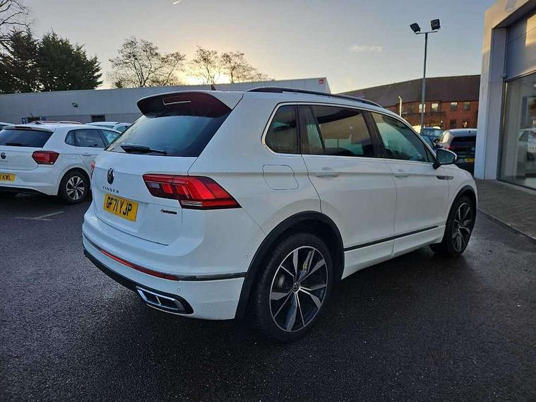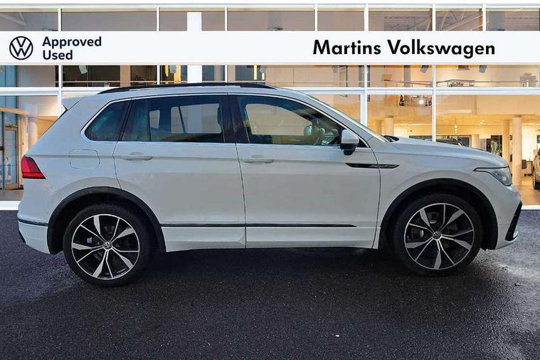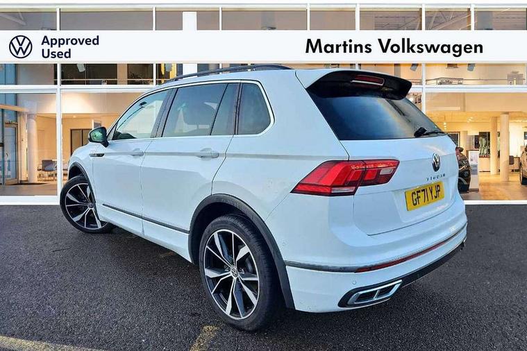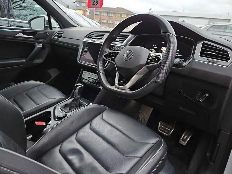 Adaptive cruise control ACC stop and go including speed limiter, App-Connect incl. App-Connect Wireless for Apple CarPlay and Android Auto, Bluetooth phone integration system, Digital Cockpit Pro - Active info display, Distance control assist, Driver alert system, Driver profile selection, Dynamic road sign display, eCall emergency call system, Electromechanical speed sensitive power steering, Engine start/stop button, Lane keeping system Lane Assist, Lights on warning, Multifunction front facing camera, Outside temperature display, Premium multifunction display with multi colour display, Remote control boot opening, Rev counter, Revision / skills operating concept travel assistant, Service interval indicator, Speed limit display, Start/stop system with regenerative braking, Trip computer, Warning sound and light for doors and tailgate open, All wheel drive - 4Motion, Battery regeneration during braking, XDS electronic differential lock for improved traction and handling, 2 USB-C ports in the front, 1 USB-C charging socket on the center console in the rear, Diversity antenna for FM reception, Radio, SD card slot, Simultaneous pairing of 2 compatible mobile devices, SMS functionality - read, compose and send SMS messages using touch-screen display, Title and cover art display, Auto dimming interior rear view mirror, Automatic headlight control system, Black roof rails, Body colour door handles, Body coloured bumpers in R Line style, Body coloured door mirrors with integrated indicators, Chrome moldings on the side windows, Coming/leaving home lighting function, Dynamic headlight range control, Front and rear electric windows, Heated rear window, High level 3rd brake light, Laminated safety glass windshield, heat and sound insulating, LED rear number plate lights, License plate carrier in front and rear, Poor weather light and cornering light, Privacy glass for rear side windows and rear window, R Line body kit, R Line side sills, Rain sensor windscreen wipers, Rear exhaust tailpipe, Rear fog lamp, Rear side wing doors, Rear spoiler in R style, Rear windscreen washer and wiper with interval delay, Side and rear windows in heat insulating glass, Trailer Stability Programme, Unique R Line badging, Windscreen wipers/ intermittent wipe + 4 position delay, 12V outlet in center console rear and in luggage compartment, 12V outlet in front and tray, 2 cup holders in front, 2 LED front reading lights, 2 LED rear reading lights, 3 bench rear seats in 2nd row, 3 rear headrests, 4 load lashing points, 40:20:40 split folding rear seats, Air Care Climatronic 3 zone automatic climate control with enhanced air filter and controls in the rear, Backrest release for left front seat, Black headlining, Brushed stainless steel pedals and footrest, Carpet mats in front and rear with decorative stitching in Gray, Climate control unit rear with touch function, Door and side trim panel in foam film, insert in leatherette, Front centre armrest, Front footwell illumination, Front seats head restraints (x-adjustment), Height adjustable front seats, Height/reach adjust steering wheel, Instrument lighting white adjustable panel illumination, Interior light with delay, Isofix Preparation 2 Rear child seats, Leather gear knob, Lockable cooled glovebox, Luggage compartment lighting, Luggage net, Rear bench seat asymetrically split folding, longitudinally movable and folding with load-through hatch and center armrest, Remote unlocking for rear seat backrest, Removable luggage cover, Removable rear headrests, Safety optimised front head restraints, Single front passenger seat, Sliding/reclining rear seats, Standard rear seat release, Storage compartment in driver's door, Storage compartment in passenger's door, Storage compartment in rear doors, Storage compartments in luggage area left and right, Storage tray on dashboard, Sun visors with illuminated vanity mirrors, Top front comfort seats, Variable boot floor, height adjustable and removable, Ambience pack - Tiguan R Line, Driver assistance pack plus - Tiguan DSG, Park assist pack - Tiguan, 3 point seat belt for centre rear seats, 3 point seat belts with seat belt pretensioners for the outer rear seats, Active bonnet, Curtain airbags for front and rear passengers, Driver/Front Passenger airbags, Drivers knee airbag, Electronic parking brake with auto hold, Electronic Stability Control with driver steering recommendation, ABS, ASR, EDL, EDTC and trailer stabilization, Front assist with autonomous emergency braking (for Adaptive Cruise Control ACC up to 130 mph), Front disc brakes, Front passenger airbag deactivation, Front side airbags, Height adjustable front 3 point seatbelts + pretensioners, Hill hold control, Manual child proof rear door locks, Pedestrian monitoring system, Power assisted brakes, Proactive passenger protection system in combination with front assist, Rear disc brakes, Rigid safety cell with front and rear crumple zones, Two tone horn, Warning sound and light for front seat belts if unfastened, Anti theft alarm system with interior monitoring, backup horn and towing protection, Anti theft wheel bolts, Electronic engine immobiliser, 20" Misano black with diamond turned surface alloy wheels with Airstop tyres, Tool kit,