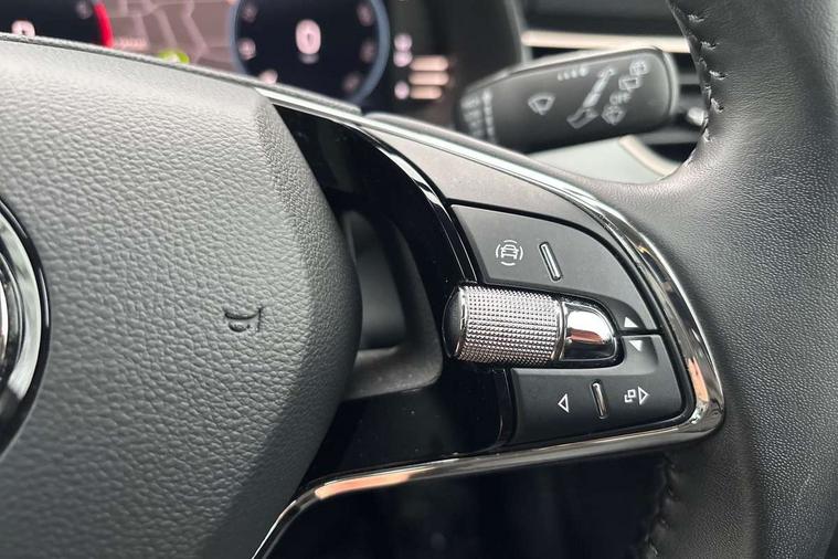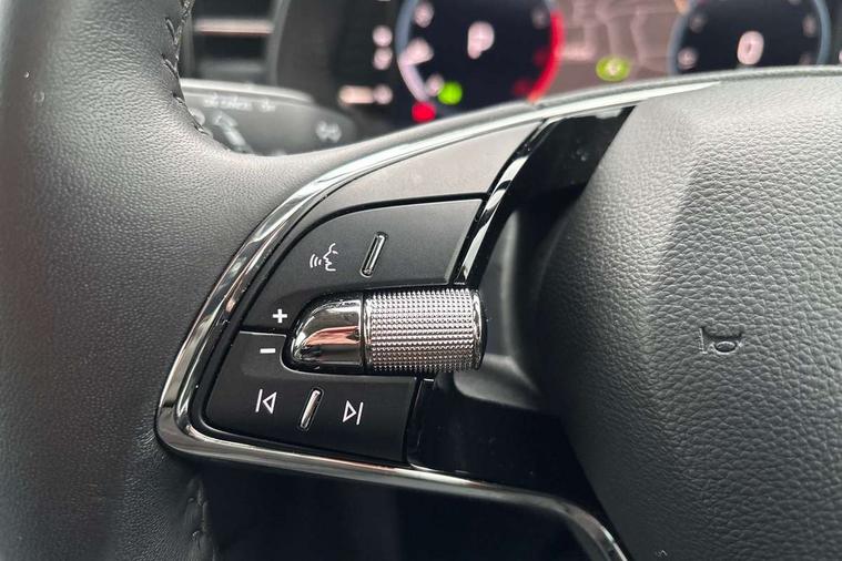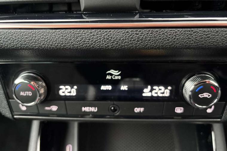 Amundsen satellite navigation with 9.2" glass colour touchscreen display, voice control, virtual cockpit, web radio and traffic sign recognition, Bluetooth system, E-call, Front and rear parking sensors, Front assist system, Gesture control, PAS, Rear view camera, Service indicator, Speed limiter, Virtual cockpit with 10.25" display, Wireless SmartLink for apple car play, android auto and mirrorlink, 8 Speakers, Auxiliary input socket, DAB Digital radio, Auto dimming rear view mirror, Body colour bumpers, Body colour door mirrors and handles, Chrome grille surround, Electric folding door mirrors, Electrically adjustable and heated door mirrors, Front and rear electric windows, Headlight range control, Heated rear window, LED rear lights - low functionality, LED third brake light, Light sensors, Privacy glass, Rear fog lights, Rear side wing doors, Rear wiper, 12V Accessory socket in centre console, 3 seat bench in 2nd row, Chrome inner door handles, Dual zone climate control, Front head restraints, Glove compartment with illumination, Ice scraper, Isofix child seat fittings on outer rear seats, ISOFIX on front passenger seat, Manual lumbar support for front seats, Rake/reach adjustable steering wheel, Reading lights, Single front passenger seat, Sun visors with illumination on front passenger, Textile floor mats, Third rear headrest, Top tether for front passenger seat, Umbrella in driver's door, 3x3 point rear seatbelts, Airbags - driver and front passenger, ESP, Front passenger airbag deactivation switch, Front side airbags with curtain airbags, Hill hold control, Manual parking brake, Manual rear child locks, One tone horn, Rear disc brakes, Seatbelt reminder for driver an co-driver, Traction control, Tyre pressure monitor, Anti-theft alarm system with interior monitoring, backup horn, towing protection and remote central locking with SAFE system, Anti-theft wheel bolts, Electronic engine immobilizer, Latice curved decorative insert on the dashboard with hot stamping in copper and white ambient lighting white,