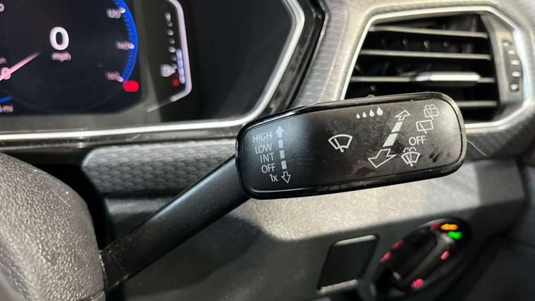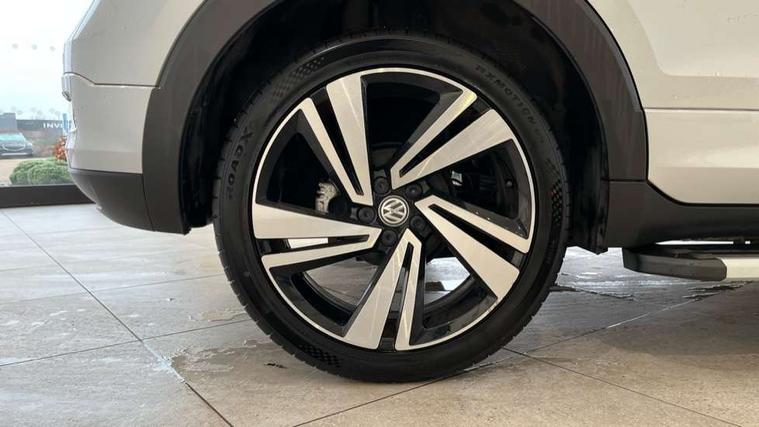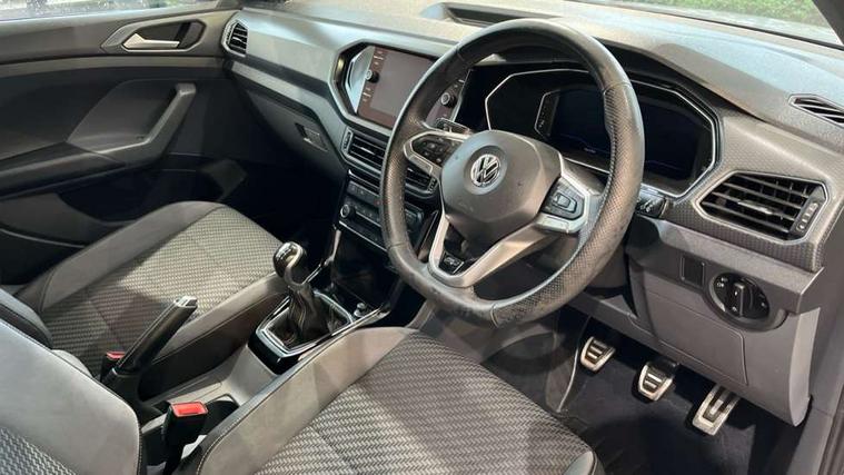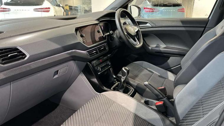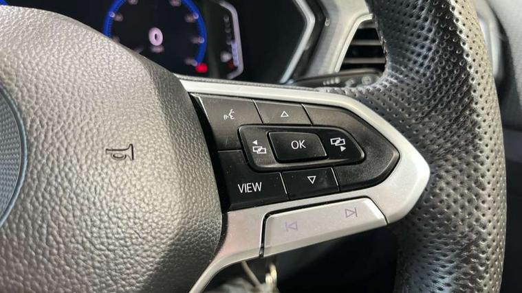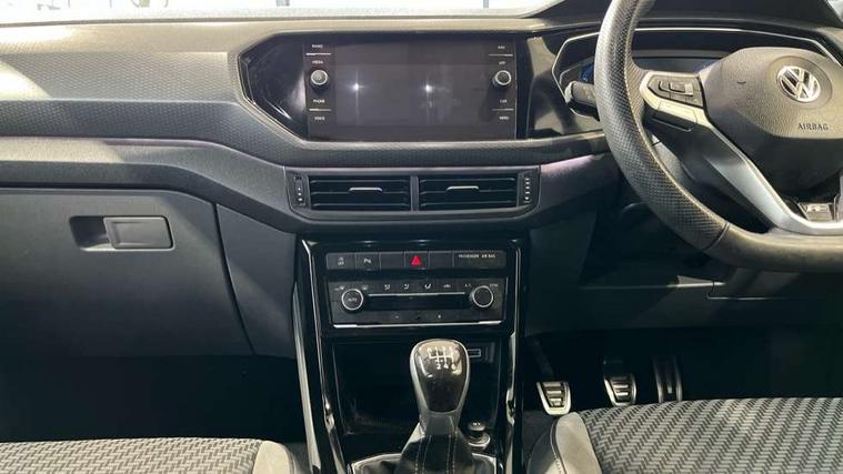 Active Info display 10.25" high resolution TFT dash display with customisable menu and information, Adaptive cruise control, Car-Net App-Connect with VW media control, Discover navigation system with 8.0" colour screen, radio/CD player, European map data, eCall emergency call system, Front assist, radar sensor controlled distance monitor, city emergency braking + predictive pedestrian protection, Lane assist with blind spot plus lane keeping system, Low washer fluid warning light, Multifunction computer with visual gear change recommendation for fuel consumption, Power assisted speed sensitive steering, Progressive steering, Side scan blind spot detection, Speed limiter, Speedo, rev counter, electronic odometer, trip, service interval display, exterior temperature and fuel gauge, Stop/start system, Warning sound and light for doors and tailgate open, Warning sound and light for front seatbelts unfastened, Battery regeneration during braking, Misfuel prevention device, 2 USB sockets in rear, Composition Media with 8"colour touch screen including DAB/CD drive, MP3/WMA, AUX-in/SD slot, 1 USB port and Bluetooth telephone connectivity, Multi device interface (MDI) with USB connection, Premium USB cable for Apple or Android smartphone compatibility, Simultaneous pairing of 2 compatible mobile devices, Title and cover art display, Automatic dimming interior rear view mirror with rain sensor, Automatic hazard lights activation under emergency braking, Body colour door handles, Body colour door mirrors with integrated indicators, Body coloured bumpers, Dusk sensor, Front and rear electric windows, Front fog lights with static cornering function, Galvanised body, Heated rear window, High level 3rd brake light, LED headlights with auto range adjustment + LED daytime running lights, Manual coming/automatic leaving home lighting function, Radiator grille with chrome lamelel and bumpers in wagon paint, Rear tail lights LED except turn signals, Rear tinted glass 65% approx light absorbing from B pillar backwards, Rear windscreen washer and wiper with interval delay, Reflectors in all doors, Silver roof rails, Tailgate with integrated roof spoiler, Unique R Line badging, Windscreen wipers/ intermittent wipe + 4 position delay, 12V Accessory socket in centre console, 2 Front and rear reading lights incorporating LED technology, 2 Zone electronic climate control with automatic air recirculation, 3 rear head restraints and 3 rear three point seat belts with ECE label, 60/40 split folding rear seat backrest, Aluminium pedals, Carbon flag cloth upholstery, Drawer under drivers seat, Driver's seat height adjustment, Driver's sunvisor with ticket holder, Dust and pollen filter, Front centre armrest with storage compartment and two rear air vents, Front comfort seats, Front seat R Line logo with rear seat backrest, Front seats with adj lumbar support, Front sport seats, Glovebox, Heating and fresh air system with 4 stage blower, Height/reach adjust steering wheel, Instrument lighting white adjustable panel illumination, Interior light with delay, Isofix child seat preparation for 2 rear child seats, Luggage compartment cover, Luggage compartment lighting, Lumbar support, Manual front seats with height adjustment, Moveable and foldable Rear bench seat, R Line front and rear floor mats with contrast stitching, Removable luggage cover, Storage compartment in driver and passenger doors, Sun visors with mirror on passenger side, Three spoke multi-function leather trimmed steering wheel and gearknob, Unique R Line door sill protectors, Variable boot floor, Light and sight pack - T-cross, R Line styling pack - T-cross, 3 point seat belt with electric pre tensioner, Anti-lock Braking System (ABS) with Hydraulic Brake Assist (HBA), Automatic post collision braking system, Driver and front passenger safety-optimised head restraints, Drivers and Front Passengers airbags with front passengers airbag deactivation switch, ESC with EDL, ASR, EDTC and trailer stabilisation function, Extended and proactive pedestrian protection, Front and rear curtain airbags, Front disc brakes and rear drum brakes, Front seat side impact airbags, Front ventilated disc brakes and rear disc brakes, Height adjustable 3 point automatic front seatbelts with pretensioners, Hill start assist, Pre crash preventive occupant protection, Rigid safety cell with front and rear crumple zones, Tyre pressure loss indicator, Volkswagen roadside assistance, Alarm with remote central locking and interior protection, Central locking without safe fuse with radio remote control and 2 radio folding keys, Child security locks in rear doors, Electronic engine immobiliser, Softell decorative inserts in dash and centre console, 18" Nevada black alloy wheels + anti theft wheel bolts,