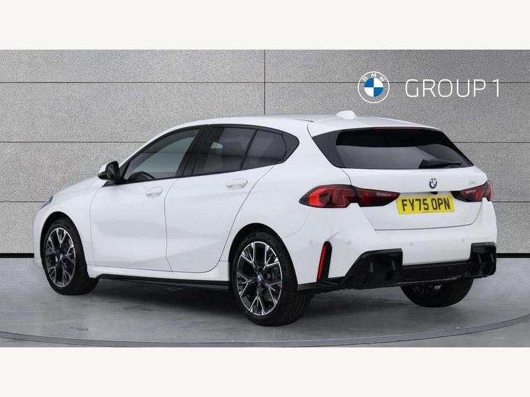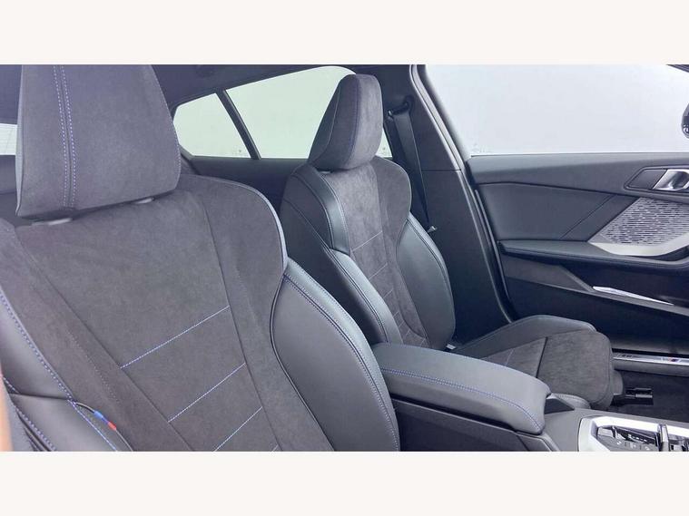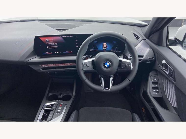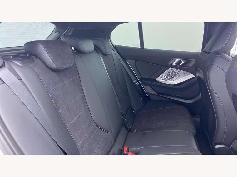 Active guard plus, Attentiveness assist, Bluetooth / WiFi interface for wireless connection of mobile terminal devices and audio streaming, BMW ConnectedDrive online services, BMW Live cockpit plus, BMW Teleservices, Check Control warning system for monitoring of lights and door/luggage compartment open warning, Eco pro mode, Electric power steering with Servotronic steering optimised at all speed ranges, Evasion assistant, Flat airvents in instrument panel with adjustable slats, Front and rear parking sensors, Front axle single joint with specific axle kinematics to minimise drive influences on steering + provide increased rigidity agile driving behaviour, Gearshift time display in manual mode, Integrated owners handbook, Left turn warning with brake function, My modes (Personal / Efficient / Sport), Oil sensor for level and grade, On board computer, Optimum shift indicator, Park assist including reversing assistant, lateral parking aid and reversing assist camera, Personal e-SIM, Personal Profile, Pull away assistant, Rigidly mounted rear subframe - Multi link construction with separate spring / damper configuration and excellent driving characteristics, Speed limit Info including no-overtaking indicator, Speed limiter, 49 litre fuel tank, Aluminium lightweight construction, Anti roll bar front and rear, Balancer shaft, Double VANOS twin scroll turbocharging system, Drive Performance Control, Electronic differential lock, Electronic selector lever, High precision injection, M Adaptive suspension, Petrol Particulate Filter, Steptronic transmission with double clutch, Twin tube gas filled shock absorbers with degressive characteristic curve, VALVETRONIC engine management, DAB Digital radio, Auto dimming rear view mirror, Automatic windscreen wipers and automatic headlight, Body colour door handles, Body colour roof trims, Chrome 'M' logo side designation, Chrome exhaust twin tailpipes round 90mm in left, Chrome kidney grille frame with Satin Aluminium struts, Direction indicator side lights in exterior mirrors, Electrically adjustable exterior mirror with mirror adjustment switch on drivers armrest and aspheric on driver side, convex on passenger side, Exterior M sport design elements, Fading support, Folding side mirrors with auto dimming/folding wing mirrors with auto dimming, Follow me home headlights, Front and rear bumper system with replaceable deformation elements, Front and rear electric windows with open and close fingertip control, anti trap facility and comfort closing, Front bumper panel with M specific design in vehicle colour with inserts in black high gloss, Front door sill finishers in black plastic with M designation in metallic look, Green tinted heat protection glazing, Heated rear window, High gloss black exterior mirrors, High gloss shadowline window frame, Recess cover mirror frames and B/C pillar embelisher trim, High level third brake light, Integrated front windscreen with washer jets, LED daytime running lights, LED eyebrow turn indicators, LED front fog lights, LED Headlights, Lightweight engineering, Matt black air guide grilles, Matt black wheel arch trim, Model badge on tailgate right, Nearside reverse light in rear light cluster, Preparation for high beam assistant, Rain sensor, Rear bumper panel with M-specific design in vehicle colour with inserts in black high gloss, Rear fog lights, Rear side wing doors, Rear window wiper, Shark fin antenna, Side sill covers with M specific design in body colour, Trailer stabilisation logic, Visible VIN plate, Welcome lighting, 12V power socket in front centre console with blanking plug, 3 rear seat head restraints, 3 seat bench in 2nd row, 3 spoke sports leather steering wheel with black leather and stitching, pearl chrome decorative finish, specific M Badge, Anthracite front and rear floor mats, Anthracite headlining, Black boot net with lashing eyes, Cargo function on 2nd seat row, Child seat ISOFIX attachment for two outer rear seats and front passenger seat with anchorage points, Conditioned based service, Driver and front passenger backrest net on rear, Driver and front passenger seat heating, Driver side folding compartment in instrument panel, Folding rear clothes hook, Footrest and pedals in black plastic, Four grab handles integrated in roof lining, Front and rear door pockets with bottle holders, Front and rear side armrest integrated into door trim, Front armrest with storage compartment, Gearshift paddles on steering wheel, Glove compartment, Height adjustable front head restraints, Luggage compartment for bag hooks on left and right, foldable luggage compartment liner and four lashing eyelets, Manual adjust steering wheel, Multi-function controls for steering wheel, Rear seat backrest with manual 60:40 split folding with 3 top tether clips integrated on rear of seat panels, Single front passenger seat, Storage compartment in centre console, Storage compartment in luggage compartment, Stowage of the parcel shelf in luggage compartment trim, Sun visors with vanity mirrors and insert tab, Two front centre console cupholders, Type C two USB ports in rear centre console, Upper retaining strap integrated into backrest rear panels, Connected pack professional - 1 Series, Interior lights pack - 1 Series, M Sport exterior styling aerodynamics pack - 1 Series, 2 tone horn, 3 point seatbelts on all seats, front pyrotechnic belt tensioners, stopper and belt force limiters, rear coded belt buckles, Airbags - Front driver/passenger, front and rear curtain head protection, front side, manual deactivation of front passenger airbag, Anti lock braking system (ABS) with brake assist, BMW emergency call, Brake drying, Braking readiness, Child proof locking system in rear door, Comfort modes, Cornering brake control, Crash sensor activating of airbags, Unlocking doors, hazard warning lights, interior light, safety battery terminal, Driver and front passenger seat belt security check, Dynamic stability control + (DSC+), Dynamic