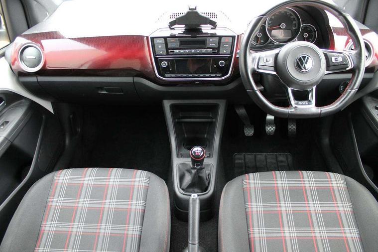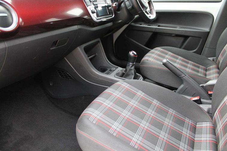 Digital clock, Multifunction camera with lane assist, Multifunction computer, Rev counter, Speed sensitive power steering, Speedometer, electronic odometer and fuel gauge, Trip computer, Volkswagen connect, Body lowered sports suspension, Galvanished body, Start/stop function with battery regeneration, Composition colour system with 5" screen, DAB, AUX in socket, SD card, MP3/WMA/AAC, 4 X 20W, bluetooth, audio connection and USB connectivity, Smartphone interface navigation system, 'GTI' sports bumpers with chrome bezel for front fog lamps, Antenna, Black door mirrors, Black radiator grille, Body colour door handles, Body coloured bumpers, Door mirror integrated indicators, Door sill protectors with GTI design, Electric front windows, Front air intake in black honeycomb, GTI badge, GTI on front and rear red stripe on lower radiator grille and tailgate, Halogen clear headlights with integrated indicators and range adjustable, Heated rear window, High level 3rd brake light, LED daytime running lights, LED rear number plate lights, Left side chrome exhaust tailpipe, Manually dimming rear view mirror, Rear fog lights, Rear tailgate spoiler in gloss black, Rear tinted glass from B pillar backwards, approx 65% tinted, Rear wash/wipe, Windscreen wipers intermittent wipe, 12V accessory power point in centre console, 2 cup holders in the front and rear centre console, Ambient lighting, Black headliner, Cooled glovebox, Delay courtesy light function, Driver seat height adjust, Drivers and front passengers sun visors with vanity mirrors, Folding front seat backrest release on front passenger seat, Front and rear carpet mats with contrast stitching in red and grey, Front head restraints, Front sports seats, GTI logo and red contrast stitching on steering wheel, Heating/ventilation unit with 4 speed fan, Height adjustable rear seat head restraints with red contrast stitching (x2), Height adjustable steering wheel, Isofix Preparation 2 Rear child seats, Jacara cloth upholstery, Jack and tool kit, Luggage compartment cover, Luggage compartment lighting, Multifunction leather trimmed three-spoke steering wheel, gear knob and handbrake grip, Storage compartment in front doors, Two rear seats with 60/40 split folding rear seat backrest, Variable boot floor, Winter pack - Up, 3 point front seatbelts with pre-tensioners, Anti-lock braking system with EDL, EBD + TCS, Curtain airbags for front and rear passengers, Driver and front passenger airbag with front passenger airbag deactivation, Driver/front passenger side airbags, Engine drag torque control, Front disc brakes, HBA (Hydraulic Brake Assist), High tone horn, Hill hold control, Rear drum brakes, Red brake calipers, Seatbelt warning lamp and buzzer, Two 3 point rear seatbelts, Tyre pressure loss indicator, Electronic engine immobiliser, Locking fuel filler cap, Remote central locking with 2 remote folding keys, Chrome surrounds to the air vents, radio controls and air conditioning, Chrome-plated light switch surround, Matt chrome trim on interior door handles, infotainment system + instrument cluster, Red pixels dash pad, 17" Oswald alloy wheels with anti theft wheel bolts, Tyre mobility system,