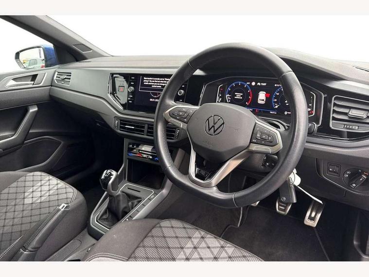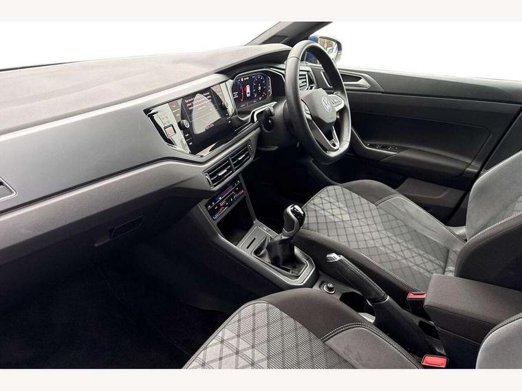 Adaptive cruise control without follow-to-stop and speed limiter, Bluetooth mobile phone interface, Digital Cockpit Pro with 10.25" Display, Driver alert system, Dynamic road sign display, Emergency call service, Power assisted speed sensitive steering, Preparation for We connect and We connect plus, Speedo and rev counter, electronic odometer, trip, service interval display and fuel gauge, Standard rear axle, Travel Assist - Lane keeping system and traffic jam assist, Travel assist including emergency assist, Trip computer, Warning signal and warning light for front and rear seatbelts not fastened, Washer fluid level indicator, Wireless app connect, Front wheel drive, Rear shock absorpion, Start-stop system with battery regeneration (recuperation - energy recovery during braking), DAB Digital radio, Diversity antenna for FM reception, Front and rear 6 speakers, Body colour bumpers, Body colour door handles, Electric front windows, Front scuff plates with R-Line logo, Heat insulating darkened glass in side and rear windows, Heat insulating glass windscreen, Power folding adjustable/heated exterior mirrors and front passenger exterior mirror lowering function, Rear electric windows, Rear fog light, Rear side wing doors, Rear windscreen washer and wiper with interval delay, Third brake light, 12V power socket in centre console, 2 USB-C ports in the front, 2 USB-C charging sockets on the center console in the rear, 3 rear head restraints, 60/40 split folding rear seat and rear seat bench not split, Air care climatronic air conditoning system with active combination filter and 2-zone temperature control, Black roof lining, Chrome plated radiator grille inserts, air vent surrounds and light switch surrounds, Door and side trim panel, Driver and front passenger seat height adjustment, Driver/passenger sunvisors with illuminated vanity mirrors, Front + rear carpet mats in recycled material, Front centre armrest, Front footwell illumination, Front seat backrest storage pockets, Front sports comfort seats, Handbrake lever handle in leather, Headliner in recycled material, Isofix child seat preparation easy-fit (for two outer rear seats, and front passenger seat) compatible with I-size, Karoso artvelours cloth upholstery, Leather trimmed gear knob, LED interior light with switch off delay and dimmer, 2 reading lights front and rear, Luggage compartment cover, Luggage compartment floor, Luggage compartment lighting, Lumbar adjustment for front seats, Multifunction steering wheel, Single front passenger seat, Stainless steel pedals, Standard pedal cluster, Light and sight pack - Polo R-Line/Black Edition, 3 point height adj front seatbelts + pretensioners, 3x3 point rear seatbelts, ABS, Driver and front passenger airbag with front passenger airbag deactivation, Drivers and front passengers safety optimised head restraints, ESC (Electronic stability control) + EDL (Electronic Differntial lock) and ASR (Traction control), Extended and predictive pedestrian/ cyclist protection, Front curtain and side airbags with center airbag, Hill hold control, Manual child lock in rear doors, Single tone horn, Tyre pressure loss indicator, Alarm with interior protection, Anti-theft alarm system with interior monitoring, backup horn, and towing protection, Anti-theft wheel bolts, Electronic engine immobiliser, Chrome applications on rotary light, mirror adjustment, window regulator switches, outlet with frame in black, Dark grey anodised matt decorative inserts in dash and front door panels, Low rolling resistance tyres,