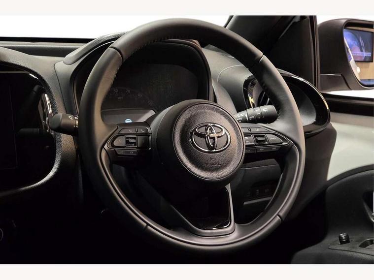 4.2" TFT colour screen, Adjustable speed limiter, Analogue speedometer, Bluetooth connectivity, Digital tachograph, Driver attention alert system, eCall emergency call system, Electric power steering, Intersection turn assist, Key reminder warning, Noise reduction kit, Pre collision system with emergency steering assist, Reversing camera with static guide lines, Smart phone integration with Apple car play/Android Auto, Speed limit display, Start and stop, Vehicle Stability Control (VSC), 4 speakers, 9" HD multimedia display touch screen with Toyota smart connect, DAB digital audio broadcast, USB connector, Auto headlights, Auto wipers, Automatic headlights cut-off, Bicycle towing hook, Black contrast roof, Black side protection mouldings, Black wheel arch mouldings, Body colour door handles, Body coloured front bumper, Boot door scuff plate, Eclipse black rear bumper, Electric heated door mirrors, Follow me home headlights, Front fog lights, Front power windows, Gloss black door mirrors, Gloss black upper front grille, Headlight cut-off reminder, LED daytime running lights, LED front light guide, LED High mounted stop lamp, Manual day/night rear view mirror, Manual headlight levelling, Pagoda roof, Power adjustable door mirrors, Power back door, Privacy glass, Projector halogen headlights, Rain sensor, Rear combination lights LED bulb type, Rear side wing doors, Rear windscreen defogger, Rear windscreen wiper, Short antenna, Variable intermittent windscreen wipers, 12v power outlet - front, 2 seat bench in 2nd row, 3 spoke leather steering wheel, 50/50 split folding rear seat, Adhesive roof headlining, Adjustable speed limiter switch on steering wheel, Audio and telephone switches on steering wheel, Auto air conditioning, Black insert on steering wheel, Black roof lining, Boot light, Centre room light, Chrome interior door handles, Chrome surround on air conditioning buttons, Clean air filter, Console box storage in body color, Fabric upholstery, Floor mats, Front and rear cup holders, Front head rest deco art, Front head restraints, Height adjustable driver seat, Intelligent adaptive cruise control switch on steering wheel, ISOFIX child restraint system on rear seats, Lane departure alert switch on steering wheel, Leather gearshift knob, Manual tilt steering wheel, Manually reclining and sliding driver seat, Manually reclining and sliding front passenger seat, Multimedia switches on steering wheel, Pollen filter, Rear door pockets, Rear head restraints, Satin silver insert on gear shift knob, Single compartment glovebox with lights, Single front passenger seat, Soft tonneau cover, Sun visors with mirror on driver and passenger side, Voice recognition switch on steering wheel, Toyota safety sense pack - Aygo X, Anti lock braking system + Electronic brake force distribution, Child safety door lock, Emergency brake light signal (EBS), Hill start assist control (HAC), Passenger airbag on/off switch, Seat belt reminder for front and rear seats, Supplement restraints system (SRS) - 6 airbags, Traction control, Tyre pressure warning system, Immobiliser, Remote power door locks, Black wheel centre caps, Tyre repair kit,