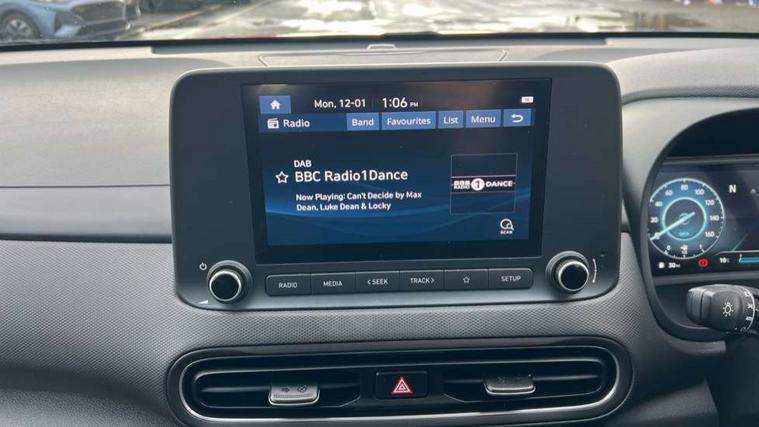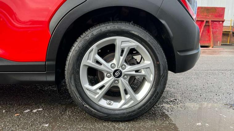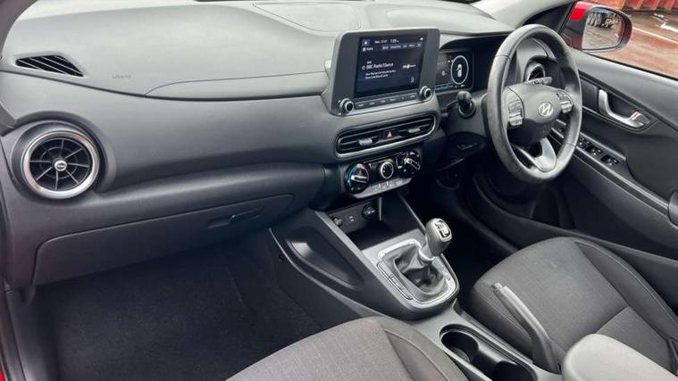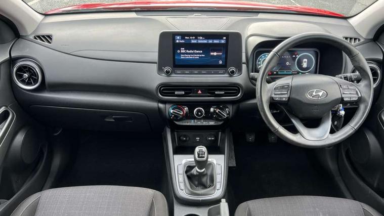8" Touchscreen display audio + smart device integration, Bluetooth connectivity, Cruise control + speed limiter, Digital clock, Driver attention warning, Driver supervision instrument cluster with 10.25" LCD display, eCall emergency call system, Forward collision avoidance assist with pedestrian detection, Lane follow assist, Lane keep assist, Leading vehicle departure alert (LVDA), Parking system with rear camera and guidance system, PAS, Phone connection with apple carPlay and android auto, Rear parking sensor, Roadside assistance, Tailgate, Windscreen washer fluid sensor and warning indicator, 6 speed intelligent manual transmission, 6 speakers (2 front, 2 tweeters, 2 rear), Front USB ports, RDS and Digital DAB, Steering wheel mounted audio/phone controls, Automatic headlights with dusk sensor, Body colour door mirrors and handles, Door mirror integrated indicators, Electric front/rear windows with drivers one touch/anti-trap, Electrically adjustable and heated door mirrors, Halogen headlights, Halogen rear lights, LED daytime running lights, Positioning Lights - LED, Rain sensor, Rear roof spoiler with integrated LED brake light, Rear side wing doors, Rear wiper, Roof rails, Tinted glass with front door glass and windscreen with shade band, Variable front intermittent wipers, 12V power outlet in front console, 3 seat bench in 2nd row, 60/40 split folding rear seat, Adjustable head restraints, Air conditioning, Centre interior light, Cloth upholstery, Door scuff plate, Driver's seat height adjustment, Driver/passenger sunvisors and illuminated vanity mirrors, Front interior light, Front passenger seat manual adjustments, Height/reach adjustable steering column, Isofix rear child seat fastenings, Leather wrapped steering wheel and gear knob, Luggage compartment lighting, Luggage hooks, Metal paint effect interior door handles, Parcel shelf, Rear centre console with air vents, Single front passenger seat, Sunglasses holder, Vertical adjustment rear head restraints, Trailer wiring package - Kona, Airbags - front, front side and curtain airbags, Anti-lock brake system (ABS), Childproof rear door locks, Downhill brake control, EBD + Brake Assist, Electronic stability control, Fasten seatbelt reminder, Fixed 3 point for second row centre passenger seatbelt, Front seatbelt pretensioners, Height adjustable front seatbelts, Hill start assist control (HAC), Manual parking brake, Passenger airbag deactivate switch, Rear seat alert, Traction control, Tyre pressure monitoring system, Alarm/immobiliser, Deadlocks, Folding key, Locking wheel nuts, Remote central locking, 17" Alloy wheels,