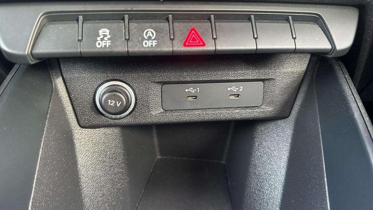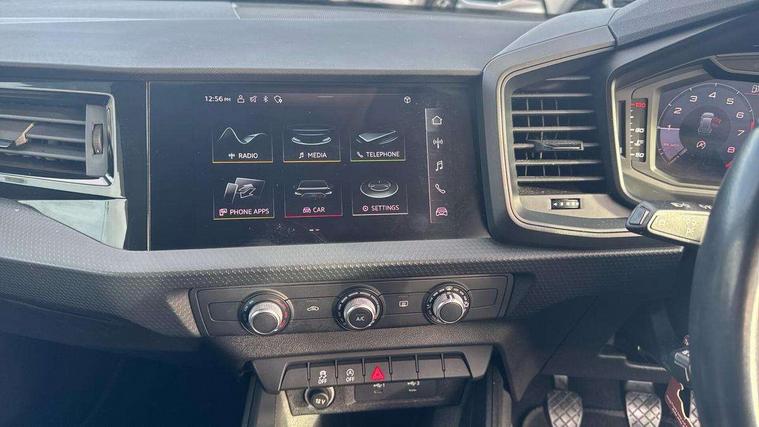 10.25" Digital instrument cluster display classis style instrument dials + speed, odometer, time, outside temperature, telephone menu + fuel level warning, Audi connect safety emergency and service including E-call, Audi smartphone interface with connect compatible smartphone via USB directly MMI display + Nav, music, third party apps controlled via MMI controller, Automatic start/stop system, Bluetooth interface, Driver's information system, Electromechanical power steering, Lane departure warning system, Service interval indicator, Speed limiter, Voice control system, Washer fluid level indicator, Dynamic suspension, 1 x SDXC card reader, 2 x USB type C connection points, 6 passive loudspeakers, DAB Digital radio, MMI radio plus with 8.8" colour MMI display screen and MMI touch, Auto dimming rear view mirror, Body coloured bumpers, Body coloured door mirrors, Electric front and rear windows, Electrically adjustable, heated, folding door mirrors with integrated LED side indicator, Front side air inlets with front spoiler lip and rear diffuser in matt black grained, Heat insulating glass windscreen and side windows, Heated rear windscreen, LED headlights with LED rear lights + dynamic rear indicators + headlight adjustment and high beam, turning light + LED daytime running lights, Radiator grille in matt black, Rain and light sensors, Rear fog lights, Rear wiper, 12V socket in centre console with two cup holders, 3 rear seats with headrests, 3 spoke leather multifunction plus steering wheel, 40:60 Split folding rear seat or folded fully, Air vents, door handle recesses and centre console in black, Delta cloth upholstery, Driver and passenger seat with manual height adjust with forward and backwards adjustment, Front head restraints, Front/rear floor mats, ISOFIX child seat mounting for front passenger and outer rear seats including top tether attachment point of outer rear seats, Leather gear knob with aluminium trim, Leatherette handbrake grip, Luggage compartment light with front and rear reading lights, Manual air conditioning, Titanium grey cloth headlining, Luggage compartment pack - A1, 3x3 point rear seatbelts, Audi pre-sense front with pedestrain and cyclist recognition, Brake assist function, Driver and front passenger airbag with front side and head airbags, Electronic Stability Control including ABS, EBD, ASR and EDL, Front and rear seatbelt reminder, Front passenger airbag deactivation switch, Hill hold assist, Seatbelt height adjustment for front seats, Seatbelt monitoring, Tyre pressure warning light, Warning triangle and first aid kit, Anti theft alarm, Anti theft wheel bolts and loose wheel warning, Immobiliser, Remote central locking with 2 foldaway keys, Black inlays polygon structure, 15" 5 arm design alloy wheels,