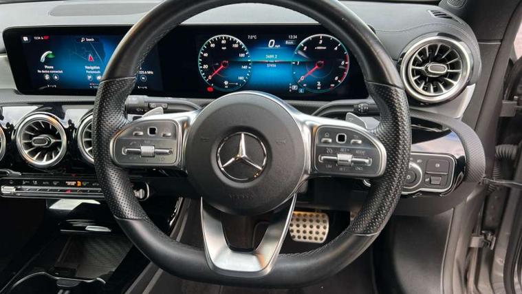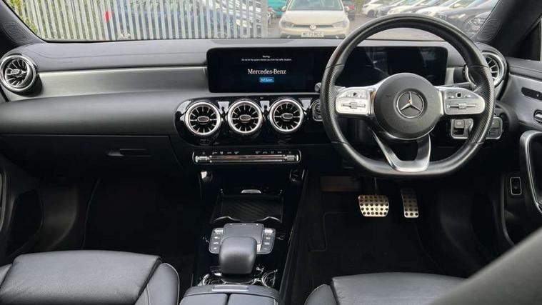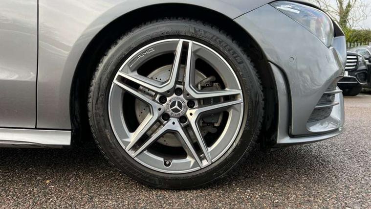 10.25 inch Instrument display with digital cockpit, 10.25 inch touchscreen media display, Attention assist - Monitors steering behaviour and long journey fatigue, Bluetooth connection, Car wash mode, DYNAMIC SELECT with a choice of driving modes (ECO, Comfort, Sport and Individual), ECO start/stop function, Fluid level warning indicator for fuel, oil, coolant and washer fluid, Hard-disk navigation, Hey Mercedes Voice activation, Lamp failure indicator, Mercedes me connect including emergency call system, accident recovery, breakdown management and maintenance, Mercedes me remote services, Outside temperature gauge, Owners manual and service booklet in English, Pre-installation of private car share, Preinstallation for Mercedes Benz link, Radio aerial integrated into front and rear windshields, Service indicator (ASSYST), Smartphone integration with Apple CarPlay and Android auto, Traffic sign assist, Trip computer in multifunction display with current consumption indicator, Lowered comfort suspension, Rear axle multi-link, DAB digital radio tuner, MBUX multimedia system with DAB digital radio and touchpad including satellite navigation, Mercedes Benz sound system (100 W) with 6 speakers, USB (type C) ports (2) in stowage compartment and 1 in front of centre console, Adaptive brake lights, AMG body styling with AMG front apron and rear apron and visible exhaust tailpipe in chrome trim elements, AMG bodystyling side skirts, Body colour bumpers, Body colour door handles, Chrome beltline strips, Chrome weather strip, Diamond radiator grille pins in chrome with silver painted louvres and chrome insert, Electric panoramic sliding sunroof, Electric windows, Electrically adjustable and heated door mirrors with integrated LED indicators, Exhaust system with 2 Visible tailpipe trim elements and rear apron with trim in chrome, Headlamp assist automatic headlamp activation, Heated glass rear windscreen + timer control, High level LED third brake light, Integrated LED daytime running lights, Interior mirror with black reading lamps and frameless, LED tail lamp, Multibeam LED headlamps with adaptive highbeam assist plus, Privacy glass with dark tinting on rear side windows and rear window, Rain sensing windscreen wipers with two sensitivity settings, Rear fog lamp, Window line trim strip in chrome, 3 spoke flattened bottom nappa leather multifunction steering wheel with perforated leather in grip area, 40:20:40 split folding rear seats with backrest, Air conditioning - Two zone thermotronic luxury automatic climate control with display, Air vents with surround in silver chrome, Automatic child seat recognition sensor, Black roof lining, Brushed stainless steel sports pedals with rubber studs, Electrically adjustable front memory seats including lumbar support, Floor mats with stitched AMG lettering, Front centre armrest with stowage, Galvanished gear shift paddles on steering wheel, Heated front seats, Illuminated front door sills with changeable cover, Illuminated glove compartment stowage, Interior lighting - 64 colour Ambient lighting, Luggage net on driver/front passenger seat backrest, Manually height and reach adjustable steering column, Rear armrest with two integral cup holders for drinks, Rear head restraints, Sport seats with fixed head restraints, Stowage compartment in centre console with retractable cover, Sunvisors with illuminated vanity mirrors, Touchpad on center console, Twin front cupholders, Two outer rear seat isofix and top tether child seat fixing points, Light and sight pack - CLA, Mirror pack - CLA, Parking package - CLA, Seat comfort pack - CLA, Active bonnet pedestrain safety measure which detects an impact and raises bonnet by 65mm, Adaptive brake assist with hold function and hill start assist, Anti-lock braking system (ABS), Black seat belts, Bonnet with power domes, Brake pad wear warning indicator, Childproof locks manually operated for rear doors and electrically operated for rear power windows, Crash responsive emergency lighting, Driver and front passenger head and sidebags, Driver and front passenger windowbags, Drivers knee airbag, Dual stage driver and front passenger airbags, Electric parking brake, Electronic stability programme with acceleration skid control, ESP curve dynamic assist, Front and rear seatbelt reminder, Front passenger seat occupancy sensor, Three point rear seat belts, Tyre pressure monitoring system, Warning triangle and first aid kit, Remote central locking and crash sensor with emergency opening function, Urban guard vehicle protection system with immobiliser and interior protection, Light aluminium with longitudinal grain interior trim, 18" 5 twin spoke design alloy wheels painted in titanium grey with high sheen finish, Summer tyres, Tirefit tyre sealant kit,