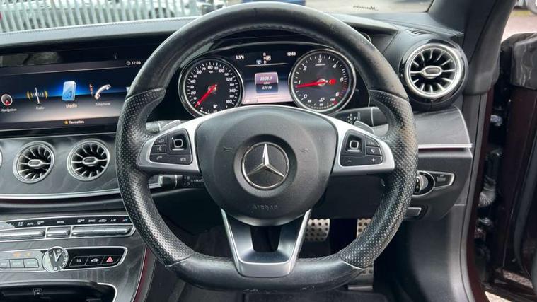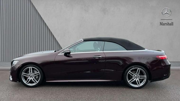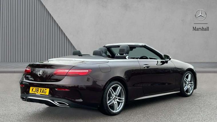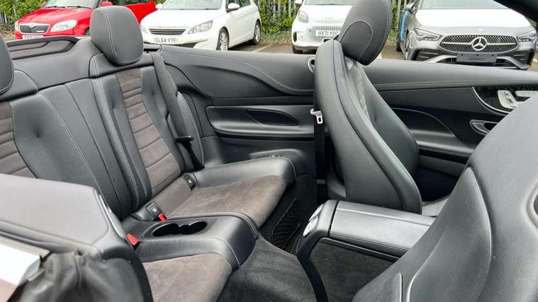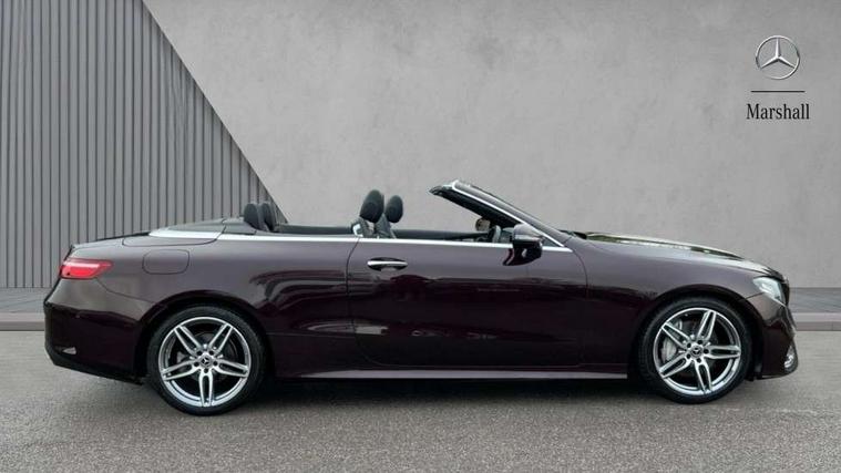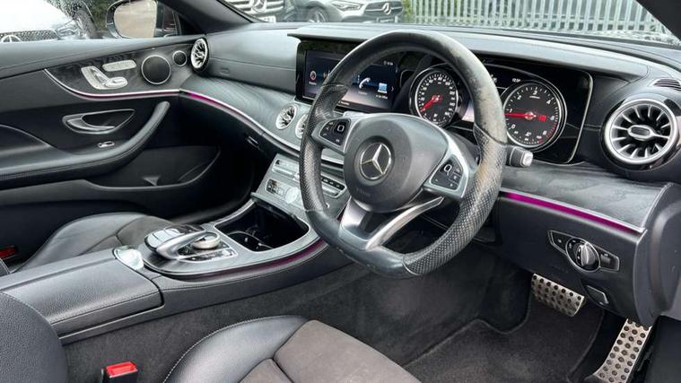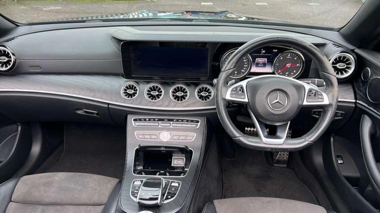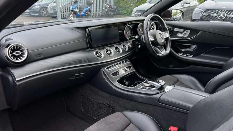 Active park assist with parktronic system, Analogue clock, Attention assist, Automatic boot separator, Bluetooth interface for hands free telephone, Collision prevention assist plus, Direct steering, DYNAMIC SELECT with a choice of driving modes (ECO, Comfort, Sport, Sport+ and Individual), Instrument cluster, Mercedes connect me, Multi function trip computer, On board computer, Outside temperature display, Remote boot release, Reversing camera, Service indicator (ASSYST PLUS), Diesel particulate filter, DAB Digital radio, Media interface, Steering wheel mounted audio controls, USB/aux-in in centre console, Acoustic soft-top with enhanced climate and noise comfort, Adaptive brake lights, AMG bodystyling, AMG boot lid spoiler in body colour, AMG front, rear apron and side skirts, Automatic rain sensing wipers, Body colour door handles, Body coloured bumpers, Electric adjustable heated door mirrors, Electric front/rear windows with one touch/auto up/down, Electric soft-top with auto roll-over bar, Heated windscreen wash system, Illuminated door sill inserts, LED daytime running lights, LED Headlights, LED tail lights, Polished aluminium upper window surround, Polished aluminium waistline, Radiator grille with integral star and 2 louvres in matt iridium silver with chrome trim, Twin exhaust pipes, Wind deflector, 2 way rear head restraints, 3 spoke flat bottom AMG steering wheel in nappa leather, 4 way adjustable front head restraints, 50/50 split folding rear seat, Airscarf - neck level heating, Ambient lighting, AMG floormats, Artico man-made leather upper dash trim, Bag hook in luggage compartment, Black roof lining, Centre armrest and door handle illumination, Child seat recognition sensor, Chrome door pins, Cupholders in centre console, Dual zone automatic climate control, Easy entry seats, Front and rear door pockets, Front centre armrest with storage compartment, Front footwell lights, Front seat back map pockets, Front seatbelt electric feeders, Heated front seats, Height/reach adjust steering wheel, Illuminated air conditioned glovebox, Interior rear light/integral reading lights, Isofix rear child seat fastenings, Lockable glovebox, Multi contour front sports seats, Multi function steering wheel, Partial electric front seats/backrest/height adjust, Rear centre armrest with 2 cupholders + storage, Sports pedals with stainless steel surfaces and rubber studs, Steering wheel gearshift paddles, Storage net in luggage compartment, Stowage compartment with 12V socket, Sunglasses holder, Sunvisors with illuminated vanity mirrors, Twin front cupholders, Interior lighting pack - E Class, Keyless Go comfort pack - E Class, Memory pack - E Class, Mirror pack - E Class, 3 point seatbelts, ABS, Active bonnet, Active brake assist, Adaptive brake system, Adaptive driver and front passenger airbags, Crash sensor (auto door unlocking), Drivers knee airbag, Electronic parking brake, ESP with ASR, Front and rear window airbags, Front seatbelt pretensioners, Front side airbags, Head airbags, Hill hold function, Seat occupancy sensor, Seatbelt warning, Tyre pressure monitoring system, Warning triangle and first aid kit, Alarm system/interior protection/immobiliser, Chrome surround in electric key, Remote central locking, Open pore black ash wood centre console, Run flat tyres,
