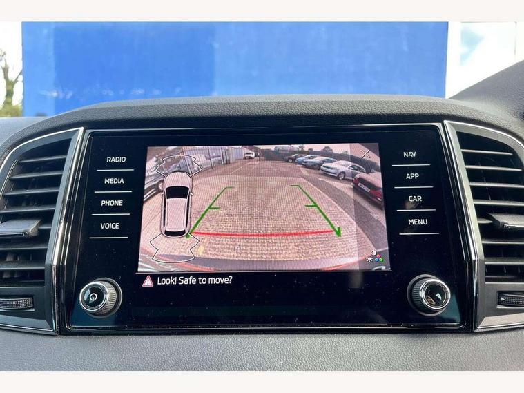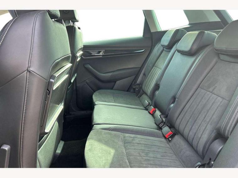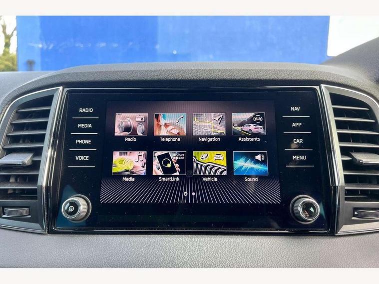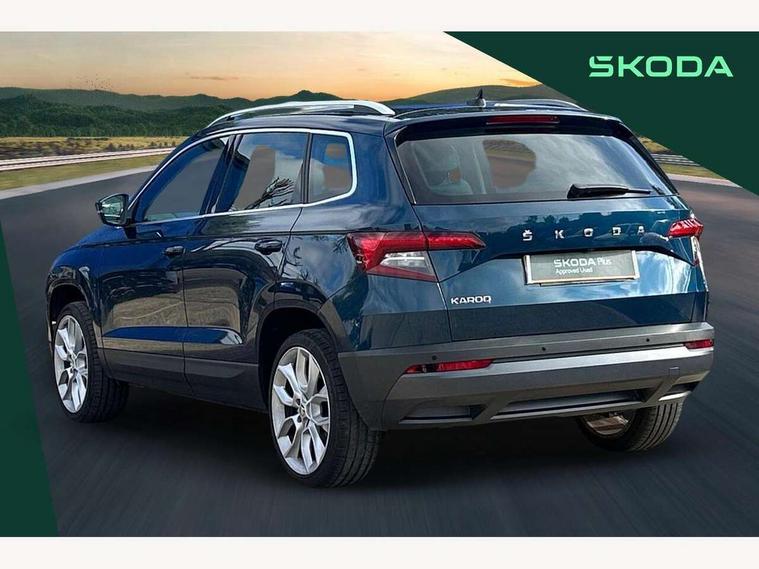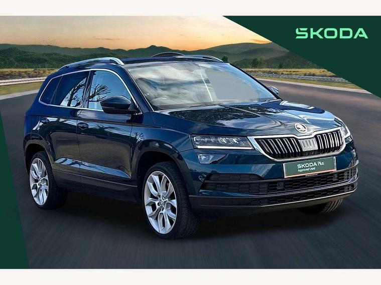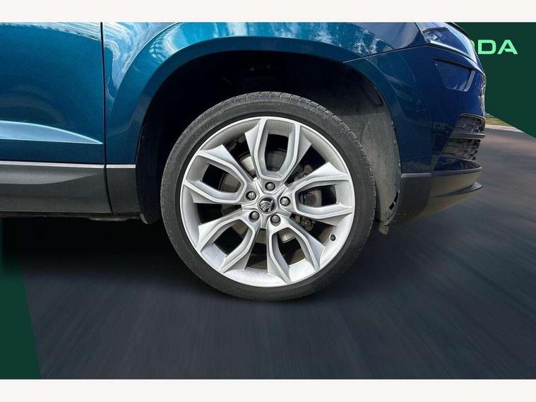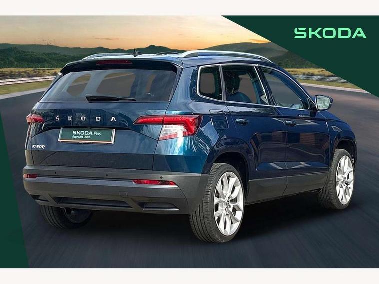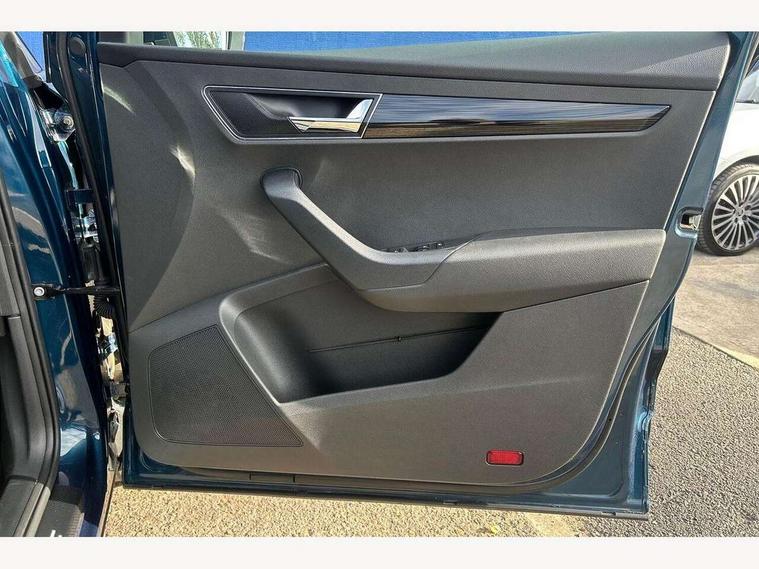 Care connect, Drive mode selector, Driver alert system, Driver fatigue sensor, Driver profile selection, Multifunction colour trip computer, Outside temperature gauge, Rear view camera, Service interval indicator, SmartLink + wireless for Apple and wired for Android, Start/stop system with regenerative braking, USB C Port x 2 in front centre console, DAB radio with Bluetooth, SD card slot, USB connection, Acoustic glass, Aero front windscreen wipers with intermittent function, Automatic headlight control system, Black electric window control buttons, Body colour door mirrors and handles, Body coloured bumpers, Electric front and rear windows with child proof lock, Full LED headlights + adaptive front light system + LED daytime running lights and front cornering fog lights, Headlight washers, Heated rear windscreen, LED rear lights with high functionality, Light assistant (coming/leaving home/tunnel light), Privacy glass, Safety reflectors on front doors, Third brake light, 1.5 litre bottle holders in driver and front passenger door panels, 12V socket in boot, 12v socket in front centre armrest with storage compartment and rear air vents, 2 Folding hooks and nets in boot, 2 Front readings lights for driver and passenger, 3 rear height adjustable headrests, 4 foldable roof handles with rear coat hooks, 4 lashing points on luggage floor, Backrest release, Cargo elements in boot, Chrome inner door handles, Folding tables on the front seat backrests, Front head restraints, Front seat and rear pockets, Height adjustable front three point seats belts with tensioners, Height adjustable passenger seat, Height/reach adjust steering wheel, Ice scraper, Illuminated and cooled glovebox, Illuminated luggage compartment, Isofix child seat preparation outer rear, Net programme in boot, Pen holder, Pollen filter, Rear boot cover, Rear reading lights, Rear seats fixed folding and divided 60:40, Retractable parcel shelf attachable to tailgate, Safety vest holder, Storage box in upper central dashboard closed, Storage compartment below the passenger seat, Sunvisors with illuminated vanity mirrors, Textile floor mats, Umbrella under passenger seat, VarioFlex seats with retractable parcel shelf, Chrome roof rails + chrome pack - Karoq, Airbags - Front side, head, knee and curtain, Automatic door unlocking in case of crash, Automatic fuel cut off in case of crash, Driver airbag, Electronic parking brake with auto hold function, Emergency rear braking signal, ESC including ABS, MSR, ASR, EDS, HBA, DSR, RBS, MKB and traction control, Front assist radar scanning of the space in front of the car with automatic braking, Hill hold control, Passenger airbag with switch-off function, Pedestrian monitor, Seatbelt reminder signalisation and pretensioner for all seats, Three point seatbelts rear, Two tone horn, Tyre pressure display, Tyre pressure monitor, Alarm with interior monitoring, back up horn and tilt sensor with safe function, Electronic engine immobiliser, Keyless entry and keyless start with safe system, Remote central locking with 2 remote folding keys, Chrome framed air vents, 19" Crater alloy wheels with anti theft wheel bolts, Storage on wheel cover,