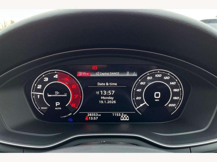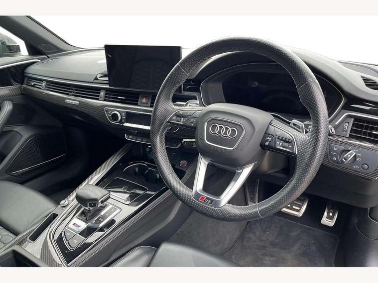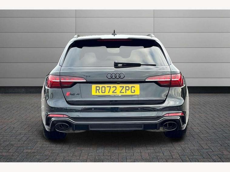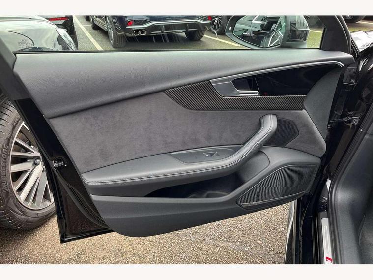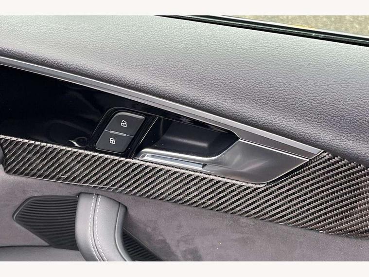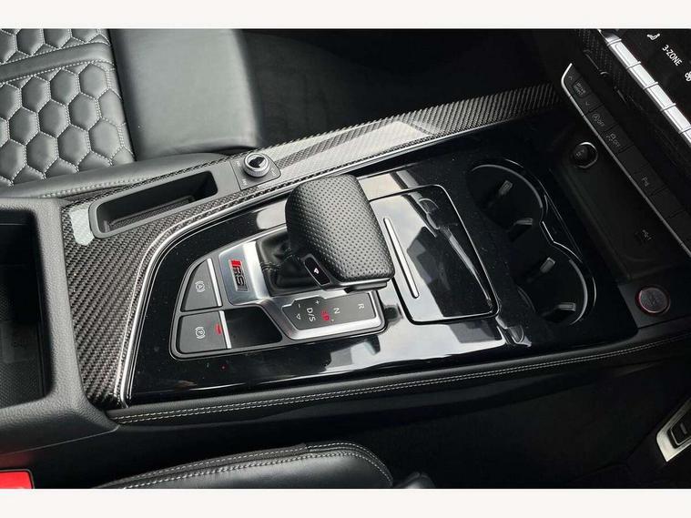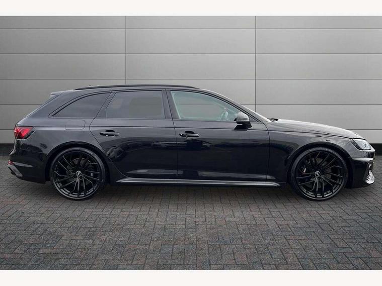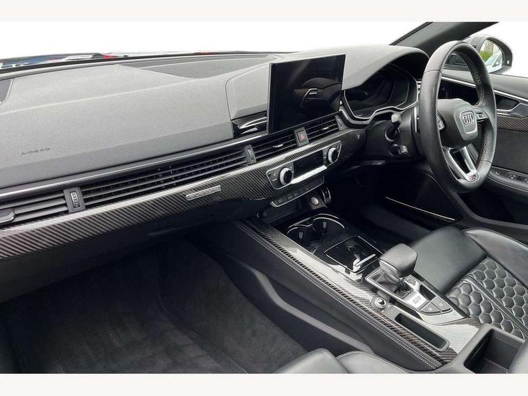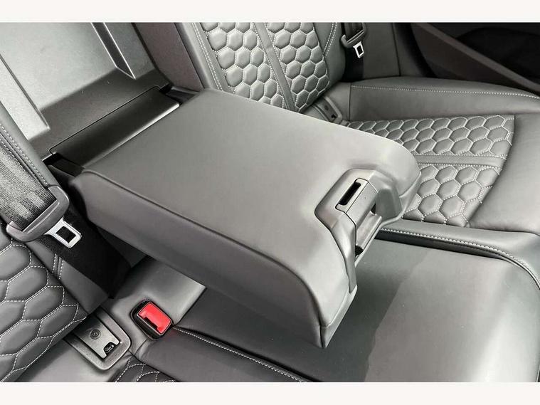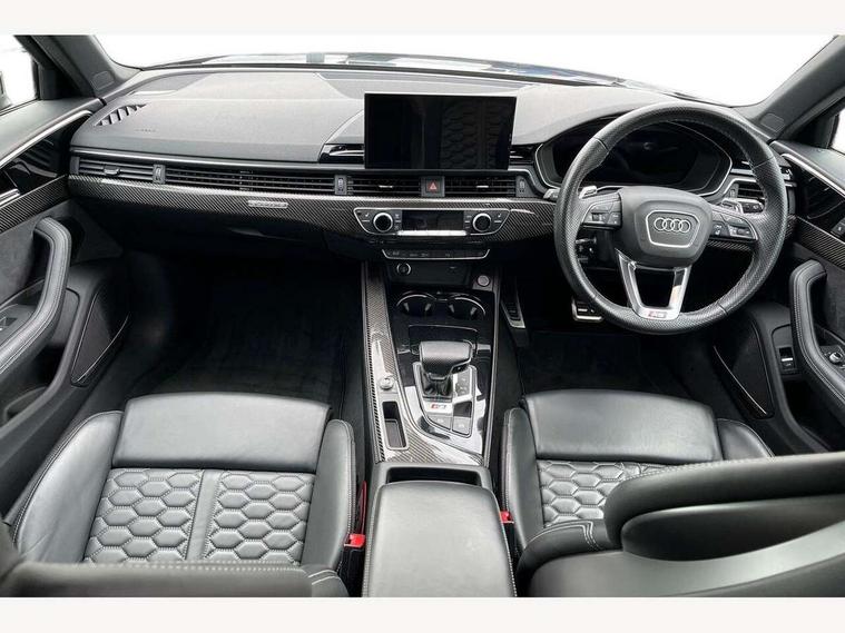 7" Colour driver information system, Amazon alexa Integration, Audi connect safety and service (e-call), Audi drive select, Audi side assist, Audi smartphone interface, Audi virtual cockpit with RS specific display, Automatic start-stop system with coasting functionality and efficiency programme, Bluetooth interface, Electromechanical power steering, Email, calendar and text messages displayed via MMI, MMI Navigation plus with MMI touch includes 10.1" high resolution colour MMI display, 3D map, Power opening/closing tailgate, Service interval indicator, Voice control system, 58 Litre fuel tank, Quattro sports differential, 2 USB charging ports, Audi sound system, DAB digital radio module, 3rd brake light, Acoustic windscreen, Audi Beam uses LEDs to project the RS logo onto ground as you exit your RS4, Audi matrix LED headlights with LED rear lights + dynamic front and rear indicators, Audi rings and lettering glossy black, Auto dimming rear view mirror, Automatic headlights + automatic windscreen wipers, Black roof rails, Blue tinted glass, Body colour door handles, Electric front windows, Electric rear windows, Electrically folding auto dimming/adjustable/heated door mirrors with memory function, LED side indicators and kerb view function for passenger side, Flared front and rear wheel arches, Front bumper with enlarged air inlets, Headlight range control, High beam assistant, High gloss black door mirror housing, High gloss black triangular aperture at rear door, Honeycomb design grille with quattro logo, Lateral air inlets next to front headlights, LED daytime running lights, LED indicators in door mirrors, Privacy glass with rear acoustic glazing, Rain and light sensors, Rear side wing doors, Rear wiper, Roof spoiler, RS 4 badges on grille and rear, RS4 dual branch chrome tailpipes with left and right oval pipes, 3 seat bench in 2nd row, 3 spoke multifunction plus leather steering wheel with heating and RS badging, 40/20/40 split folding rear seats with rear centre armrest, Black cloth headlining, Deluxe 3 zone electronic climate control, Electric load area cover, Electrically adjustable front seats, Fine nappa leather with contrast honey comb stitching + super sports seats with pneumatic massage function, Front centre armrest, Front headrests, Front/rear floor mats, Heated front seats, Height and reach adjustable steering wheel with full size airbag, Illuminated door sill trims with RS4 logo, ISOFIX child seat mounting and top tether, Leather door armrests and knee pad, Luggage compartment carpet, Perforated leather gear lever knob with contrast stitching, Rear headrests, Retractable load area cover, Single front passenger seat, Stainless steel pedals, Sunvisors with vanity mirrors, Carbon black styling pack - RS4, LED Interior light pack - RS4, Non Smokers pack, 3 point seatbelts on all rear seats, Adaptive driver and front passenger airbags, Electromechanical parking brake, Electronic stabilisation control including ABS, ASR and EDL, Enhanced braking system, Front head airbags, Front seatbelt pretensioners + load limiters, Front side airbags, Hill hold assist, Manual child lock in rear doors, Multi-Collision braking, Pop-up bonnet for pedestrian protection, Pre sense city, Rear side airbags, Seatbelt monitoring, Traction control, Tyre pressure warning, Variable restraint system, Warning triangle and first aid kit, Anti theft alarm, Anti-theft wheel bolts, Immobiliser, Keyless Go, Remote central locking, Remote control key with RS emblem, Carbon twill inlays, 20" 5 segment spoke evo design glossy black sport alloy wheels, Tool kit, Tyre repair kit,