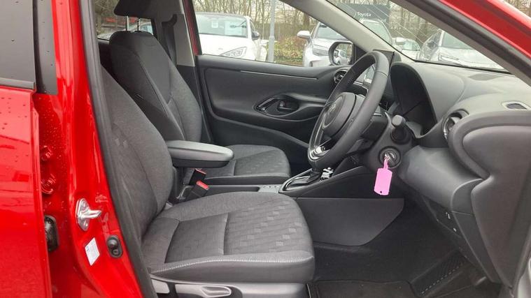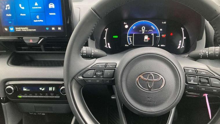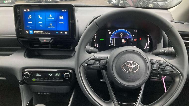 7" Digital Combimeter, Adaptive cruise control, Adjustable speed limit with speed warning, Bluetooth connectivity, Colour binocular inspired displays with digital speedometer, E-call, Electric power steering, Hybrid energy display, Lane trace assist, Multi information display switches on steering wheel, Pre-collision system (PCS), Reversing camera, Smartphone integration with Apple CarPlay and Android auto, Tailgate, Voice recognition, Vehicle Stability Control (VSC), 4 speakers, 9" Multimedia touch display, Toyota Touch 3 system with DAB radio, USB connection, Acoustic windscreen glass, Auto high beam assist, Auto windscreen wipers, Automatic headlights, Body coloured door mirrors, Electric adjustable heated door mirrors, Follow me home headlights, Front auto power windows with anti jam protection, LED daytime running lights, LED front fog lights, LED front light guide, LED Headlights, LED High mounted stop lamp, LED Indicators, LED rear light guide, Manual headlight levelling, Painted chequered front grille, Rain sensor, Rear auto power windows with anti jam protection, Rear privacy glass, Rear roof spoiler, Rear side wing doors, Rear wiper, Shark fin antenna, Turning signal integrated indicators in door mirrors, Variable front intermittent wipers, 3 adjustable rear headrests, 3 seat bench in 2nd row, 3 spoke leather steering wheel, 60/40 split folding rear seat, Active headrests, Adjustable boot height, Auto air conditioning, Coat hooks in rear grab handles, Cup holders (2 front & door), Data Communication Module (DCM) connected services, Fabric upholstery, Front armrest, Glovebox, Grey roof lining, Height adjustable driver's seat, Isofix seat fixing, Leather gearshift, Pollen filter, Shopping bag hooks, Single front passenger seat, Tilt/telescopic steering column, 3 point seatbelts on all rear seats, ABS+EBD+Brake assist, Electronic parking brake, Emergency brake light system (EBS), Front passenger airbag on/off switch, Front seatbelt reminder, Hill start assist control (HAC), Rear child proof door locks, Rear seat belt reminder, Supplemental Restraint System (SRS) 8 airbags: Driver & passenger's airbags, dual side curtain airbags, side impact airbags, front centre airbag, Toyota Safety Sense 3 with over the air updates, Tyre pressure warning system, 2x Master key, Alarm/immobiliser, Remote powered central double locking doors, Soft touch instrument panel, Space saver spare wheel,