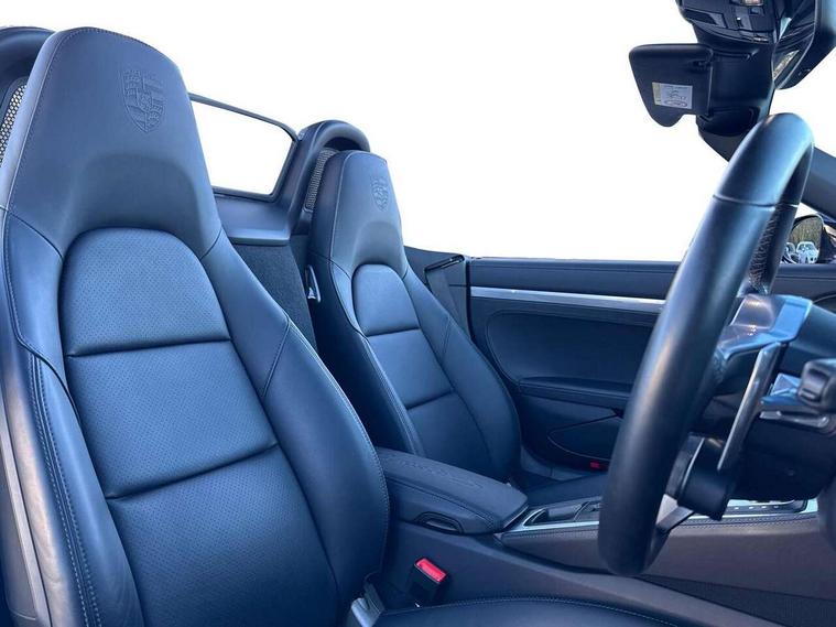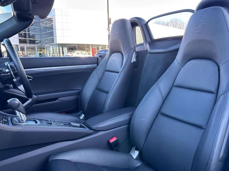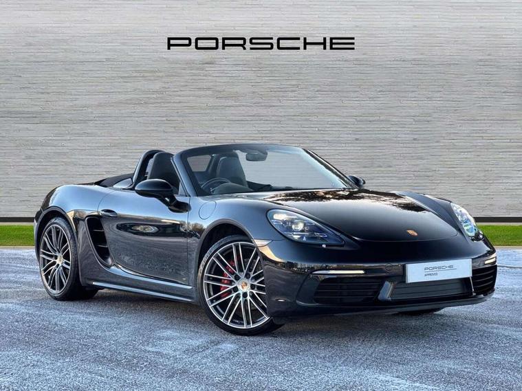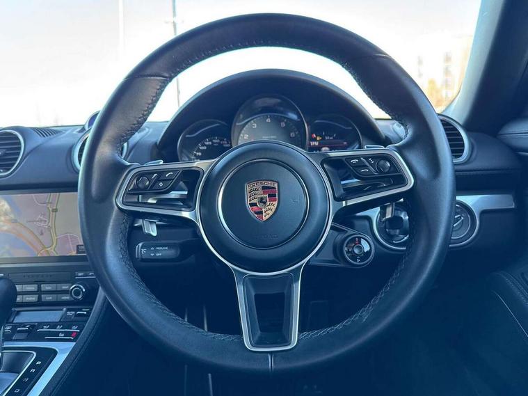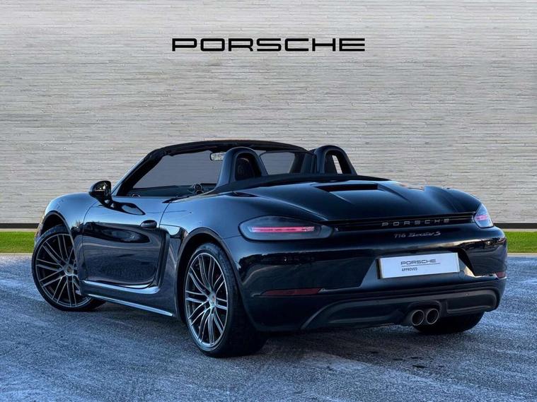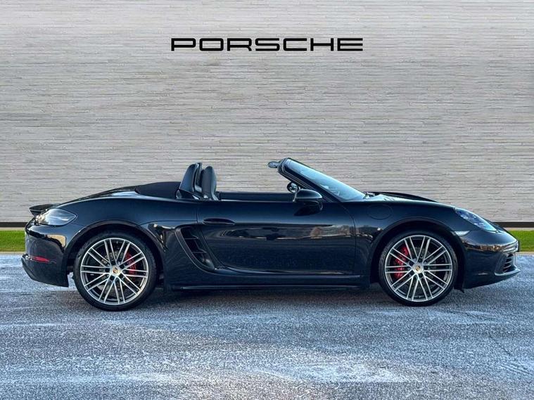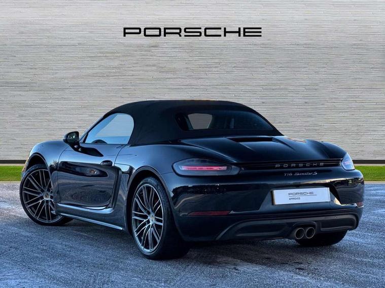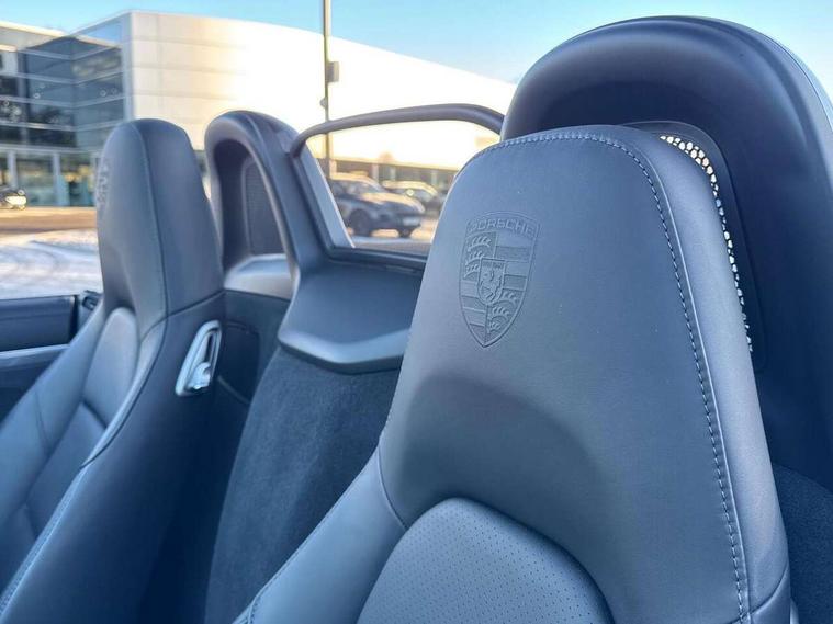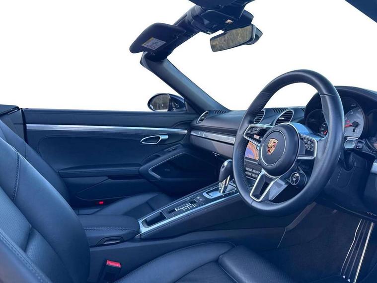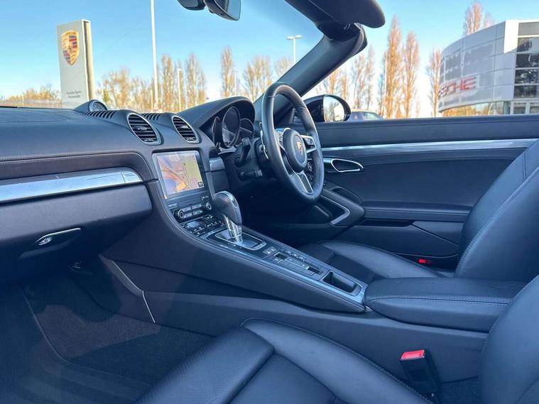 Auto start and stop system, Digital displays for vehicle speed, chosen gear, odometer, trip odometer and clock, eCall emergency call system, Instrument cluster with central rev counter and high-resolution 4.6 inch colour display, Porsche Communication Management (PCM) including online navigation module, mobile phone preparation, audio interfaces and voice control system, 3-way catalytic converters and on-board diagnostics for monitoring emission control system and coated particulate filter, 4 valves per cylinder, 64 litre fuel tank, Aluminium block and cylinder heads, Direct fuel injection (DFI), Gasoline particulate filter, Integrated dry-sump lubrication with an on-demand oil pump, Porsche Doppelkupplung (PDK), Porsche Stability Management (PSM) with ABS, advanced brake functions, Rear wheel drive, Turbocharger with variable turbine geometry (VTG) and intercooler, Two seater vehicle with mid mounted engine, VarioCam Plus variable valve timing and switchable valve lift, Water cooled with thermal management, DAB Digital radio, Integrated 4G/LTE compatible SIM including data for the Porsche Connect Services, Integrated compatible SIM including Porsche Connect Services, Navigation incl porsche + Apple Carplay, connect module, wireless internet access, carfinder, remote vehicle status, remote service and vehicle track, Wifi and music streaming, Auto deploying rear wing, Automatic headlight activation including welcome home lighting, Automatically extending rear boot spoiler, Body colour bumpers, Body colour door handles, Electrically adjustable heated exterior mirrors on door waist rails, aspherical on driver's side, Fully automatic fabric hood, electrically operated/heatable rigid glass rear screen, operable approx 31 mph and convenient operation by key remote, Green tinted heat insulating glass, Grey top tinted windscreen, Heated rear windscreen, Intelligent lightweight body in Aluminium/Steel composite construction, LED 3rd brake light, Net wind deflector, Power windows with one touch operation and door seal protection, Rain sensor, Rear boot, Separate auxiliary lights in the front end with LED indicators and position lights, Twin tract sports exhaust system with central twin tailpipe in stainless steel, Windscreen washer system with two wiper speeds and washer jets, 12V sockets in passenger footwell and centre console storage compartment, 718 logo on gear lever, Additional smooth finish leather with door panel armrest and centre console main storage compartment, Adjustable fan with air recirculation and defroster functions, Ascending centre console with uncovered storage compartment and closed storage compartment, Clothes hooks on front seat backrests, Footwell illumination, Front and rear luggage compartments, Front headrests, Heated seats, Hood lining in black fabric, LED reading lights, orientation, ignition lock, additionally luggage compartment and glove compartment lighting, Lockable glovebox, Seat centres in race tex, side bolsters and headrests in leather, Single front passenger seat, Smooth finish leather on steering wheel rim, gear lever and door handles, SPORT button to activate dynamic driving settings for engine, transmission (with PDK), Storage compartments in each doors, Two individual cup holders (Passenger side, integrated into dashboard trim strip), 3 point automatic seatbelts, ASR, Electrically controlled parking brake, Front and rear 4 piston aluminium monobloc fixed calipers, discs internally vented and cross drilled, front/rear disc diameter, brake calipers in red, Front and rear lightweight spring strut axle, Front seatbelt pretensioners + load limiters, Full size driver and passenger airbags, Passenger airbag deactivate switch, Porsche side impact protection doors with thorax airbag in outer backrest side bolster and head airbag for driver/passenger in door panel, Tyre pressure monitoring system, Alarm system with interior surveillance, Anti-theft wheel bolts, Dashcam prep, Engine immobiliser with in key transponder, central locking and remote control, Tyre repair kit,