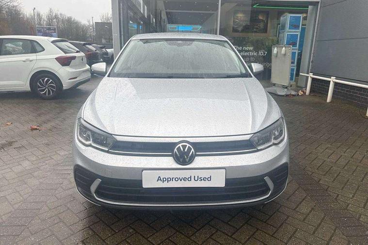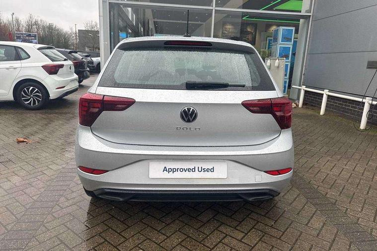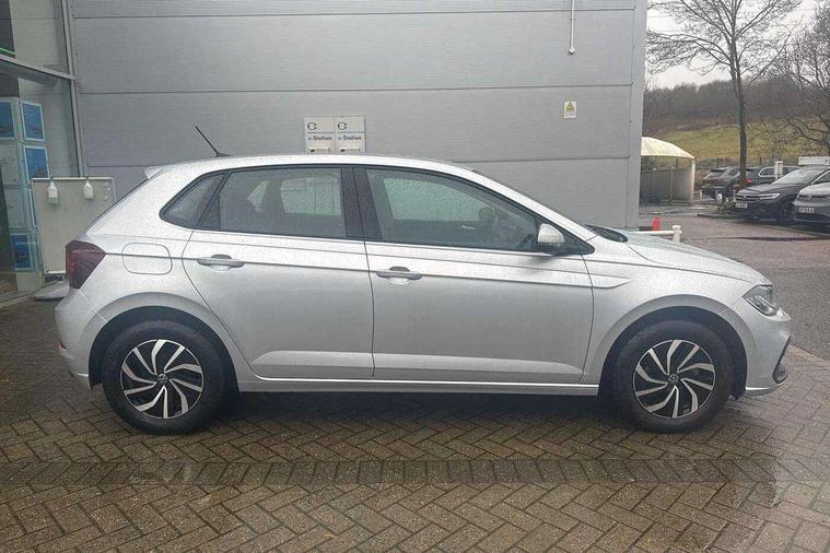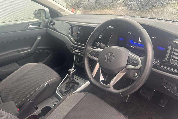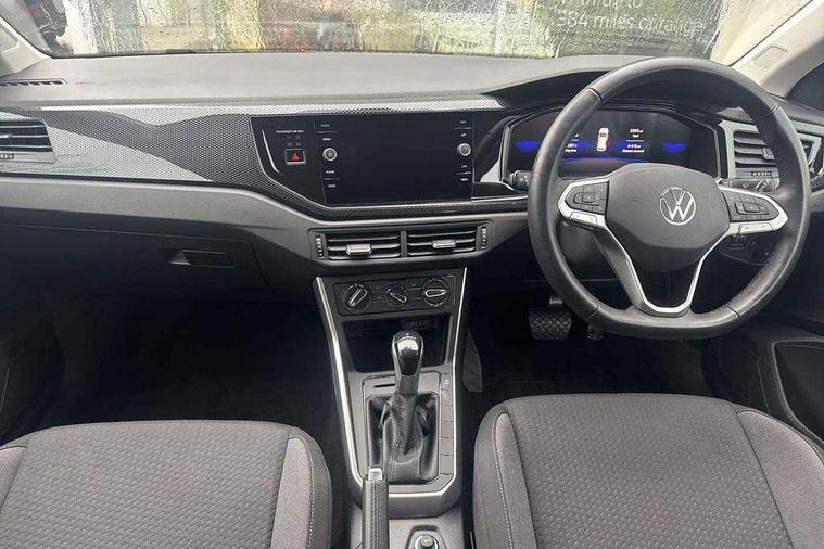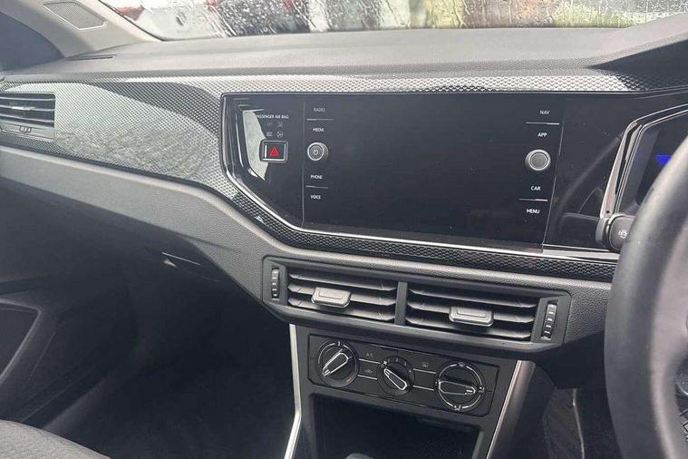 Adaptive cruise control with follow-to-stop and speed limiter, Advanced driver attention and drowsiness monitor, Bluetooth mobile phone interface, Dynamic road sign display, Emergency call service, Multifunction camera, Power assisted speed sensitive steering, Preparation for navigation system with media and internet package, Preparation for We connect and We connect plus, Speedo and rev counter, electronic odometer, trip, service interval display and exterior temperature gauge, Standard rear axle, Travel Assist - Lane keeping system and traffic jam assist, Travel assist including emergency assist, Trip computer, Warning signal and warning light for front and rear seatbelts not fastened, Washer fluid level indicator, Wireless app connect, Front wheel drive, Rear shock absorpion, Start-stop system with battery regeneration (recuperation - energy recovery during braking), DAB Digital radio, Diversity antenna for FM reception, Front and rear 6 speakers, Automatic dimming interior rear view mirror, Automatic headlight control with LED separate daytime running lights with coming/leaving home function, Body colour bumpers with chrome inserts, Body colour door handles, Body colour door mirrors, Electric front windows, Engine badge deletion, Headlight range adjustment, Heat insulating and laminated safety glass windshield, Heat insulating darkened glass in side and rear windows, LED Headlights, LED rear combination lamps, Power folding adjustable/heated exterior mirrors and front passenger exterior mirror lowering function, Rain sensor, Rear electric windows, Rear fog light, Rear side wing doors, Rear windscreen washer and wiper with interval delay, Third brake light, 12V power socket in centre console, 2 front and 2 rear reading lights with switch off delay and dimmer, 2 USB-C ports in the front, 2 USB-C charging sockets on the center console in the rear, 3 rear head restraints, 60/40 split folding rear seat and rear seat bench not split, Ceramique roof lining, Chrome plated radiator grille inserts, air vent surrounds and light switch surrounds, Door and side trim panel, Driver and front passenger seat height adjustment, Driver/passenger sunvisors with illuminated vanity mirrors, Front centre armrest, Front seat backrest storage pockets, Front standard seats, Handbrake lever handle in leather, Hartley/Thomas cloth upholstery, Headliner in recycled material, Isofix child seat preparation easy-fit (for two outer rear seats, and front passenger seat) compatible with I-size, Leather trimmed gear knob, Luggage compartment cover, Luggage compartment lighting, Removable luggage compartment floor, Single front passenger seat, Standard climatic zones, Standard pedal cluster, Three spoke leather wrapped multifunction steering wheel with shifting paddles, Light and vision pack - Polo, 3 point height adj front seatbelts + pretensioners, 3x3 point rear seatbelts, ABS, Driver and front passenger airbag with front passenger airbag deactivation, Drivers and front passengers safety optimised head restraints, ESC (Electronic stability control) + EDL (Electronic Differntial lock) and ASR (Traction control), Extended and predictive pedestrian/ cyclist protection, Front assist with autonomous emergency braking (for Adaptive Cruise Control ACC up to 130 mph), Front curtain and side airbags with center airbag, Front disc brakes, Hill hold control, Manual child lock in rear doors, Rear drum brakes, Single tone horn, Tyre pressure loss indicator, Alarm with interior protection, Anti-theft alarm system with interior monitoring, backup horn, and towing protection, Anti-theft wheel bolts, Electronic engine immobiliser, Lava stone black gloss/matt decorative inserts in dash and front door panels, Low rolling resistance tyres,