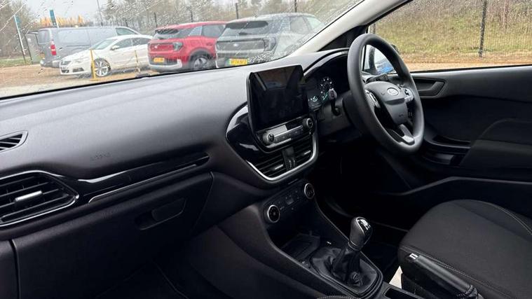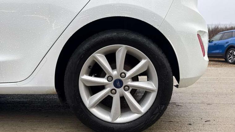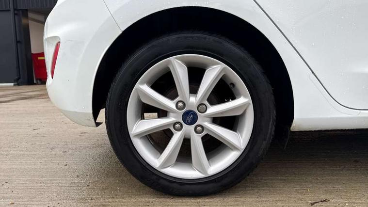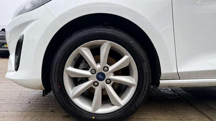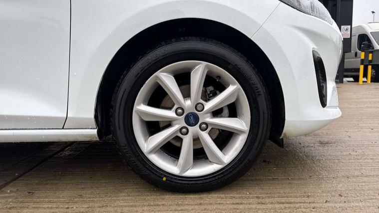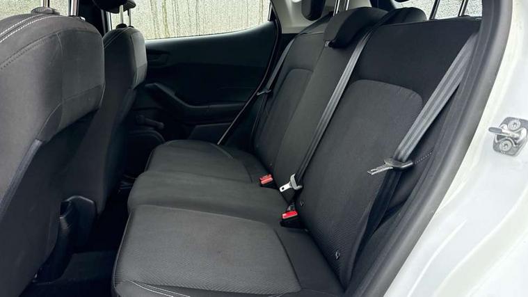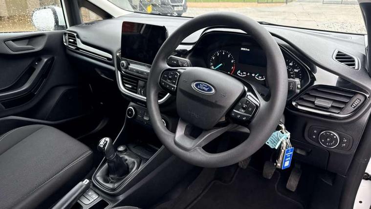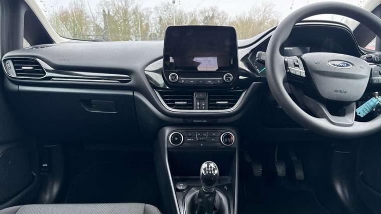 Bluetooth system, Electric power steering, Ford easy fuel, Trip computer, 2 USB ports, Auxiliary input socket, DAB Digital radio, Ford SYNC includes 8" touchscreen, 6 speakers, apple carplay, android auto and emergency assistance, Steering wheel mounted controls, Body colour bumpers, Body colour door handles, Body colour rear spoiler, Chrome beltline trim, Electric front windows/one touch facility, Electric rear windows, LED projector low beam headlamps with LED daytime running lights, Mesh design front grille with chrome surround, Quickclear heated windscreen, Rear wiper, 12V Accessory socket in centre console, 60/40 split folding rear seat, Adjustable head restraints, Ambient lighting, Boot carpet, Chrome inner door handles, Cloth upholstery, Footwell illumination, Front floor mats in velour, Front map reading lights, Front seat and rear pockets, Illuminated glovebox, Load area light, Luxury woven headliner, Manual 2 way passenger seat adjust, Manual 4-way driver seat adjust, Manual air conditioning, Overhead console with sunglasses holder, Pollen filter, Rake/reach adjustable steering wheel, NCAP Pack - Fiesta, 3 point seatbelts on all rear seats, ABS+EBA, Curtain airbags, Driver and passenger airbags, Drivers knee airbag, Electronic stability control with hill start assist, Front passenger airbag deactivation, Front side airbags, Tyre pressure monitoring system, MyKey system, Remote central locking & engine immobiliser, Thatcham Cat.1 alarm, 16" 8 spoke alloy wheels with rock metallic machined finish, Tyre repair kit,
