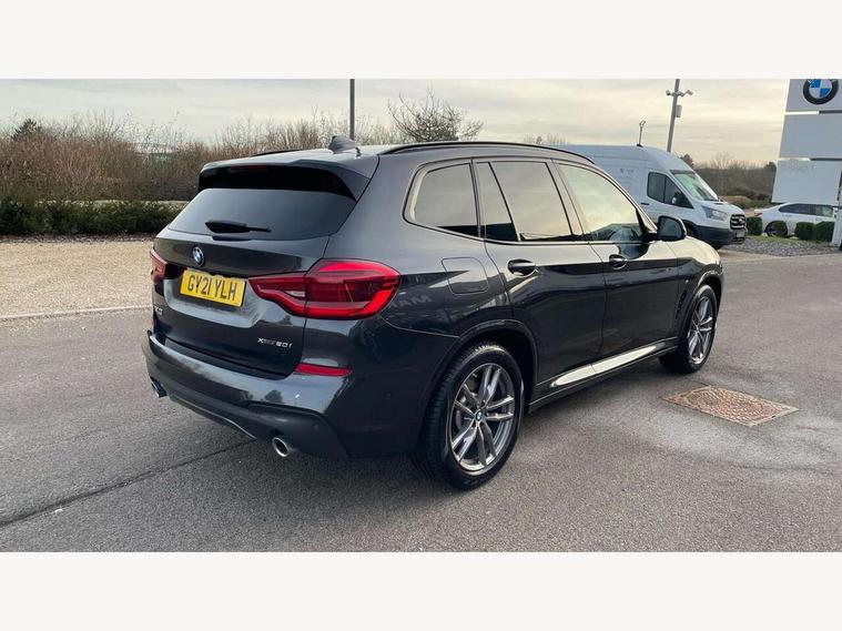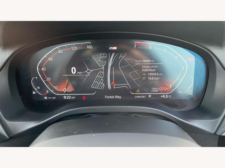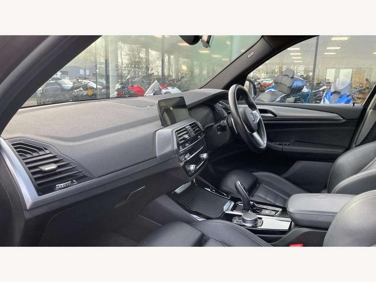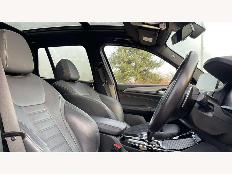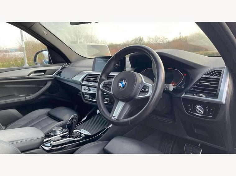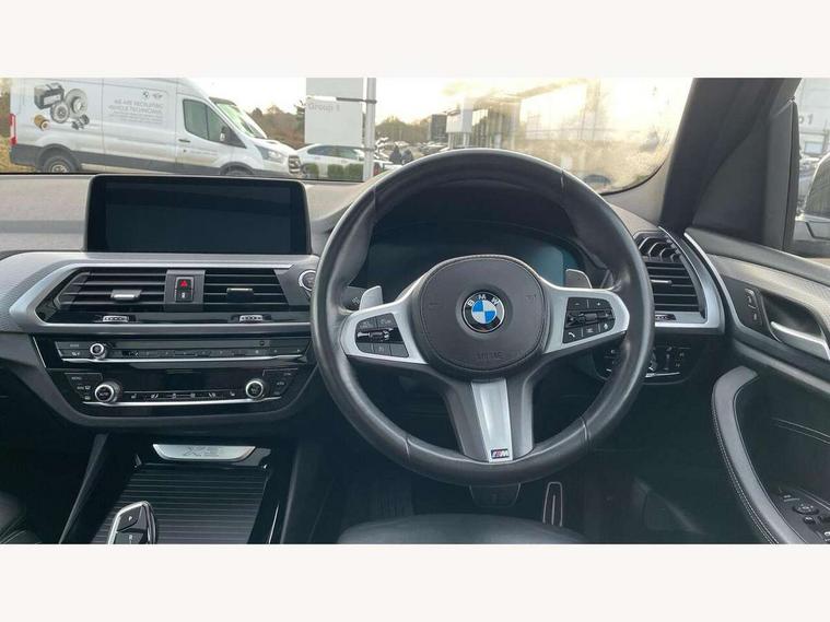 Attentiveness assist, Automatic tailgate operation, BMW Live Cockpit Professional sat nav system including 10.25" high resolution display and Intelligent Voice Assistant, BMW Online services, BMW Teleservices, Brake pad wear indicator in front and rear, Check Control warning system for monitoring of lights and door/luggage compartment open warning, Control display - 6.5" colour display screen, Electric Power Steering (EPS) with Servotronic, iDrive Controller with 8 favourite buttons, Lights on warning by audio warning signal when ignition is switched off, Navigation system - BMW Professional multimedia with Hard disc drive (HDD) and 10.25" touch display, Oil sensor for level and grade, warning by check control system, On board computer - average speed+fuel consumption, service interval, clock/date, odometer/trip meter, outside temperature display and ice warning, Optimum shift indicator, Personal Profile - automatic lock when driving away selectable, Semi digital instrument cluster, Stop/start system, Automatic transmission with gearshift paddles, Drive performance control with ECO PRO comfort + sport mode, Incorrect fuelling protection, M sport suspension, Multi-link rear suspension, Performance Control, Auxiliary socket for external MP3 player, BMW professional radio/CD/MP3, DAB Digital radio, Acoustic glazing, Black finish on B pillars, Body colour door handles, Body colour electric adjust heated aspherical door mirrors, Body colour roof mouldings, Body coloured bumpers, Chrome kidney grille with high gloss black vertical slats, Direction indicator, side repeaters, integrated in exterior mirrors, Dual chrome exhaust, Dynamic brake lights, Exterior mirrors - electrically folding with anti-dazzle, Fingertip control / anti-trap function on electric window, Follow me home headlights, Front and rear bumper system with replaceable deformation elements, Front and rear electric windows, Green tinted heat insulating glass, Heated windscreen washer jets, Height adjustable headlamps, High gloss black door sill finishers, High gloss black shadow line roof rails, High gloss shadowline exterior trim in decorative moulding side frame/recess cover/guide rail/B, C pillars/mirror frame and triangle with mirror base, High level 3rd brake light incorporating LED Technology, Interior rear view electrochromatic mirror with automatic anti dazzle function, LED front fog lights, LED tail lights, Lightweight engineering, M aerodynamic bodystyling, Model designation, Rain sensor including auto headlights activation, Rear wiper, Shark fin antenna, Side exterior M designation badges, Visible VIN plate, Welcome lighting, Windscreen wipers with adjustable interval, 12V socket in centre console and luggage area, 3 rear headrests, 3 zone automatic air conditioning, 4 lashing points to secure luggage, Ambient lighting, Anthracite headlining, Anthracite Velour floor mats, Door sill finishers with BMW Individual designation, Driver/passenger sunvisors with ticket holders + illuminated vanity mirrors, Foldable boot floor with storage compartment, Four grab handles integrated in roof lining, Front and rear bottle holders integrated into door trim storage compartments, Front and rear side armrests integrated into door trim, Front centre armrest with storage compartment, Front footwell lights, Front sports seats, Front/rear courtesy lights with soft on/off dimming, Front/rear reading lights, Height adjustable front/rear head restraints, Isofix rear child seat preparation, Leather gear knob, Luggage area underfloor compartment, Luggage compartment lighting, M leather steering wheel, Parcel shelf removeable and storable under boot floor, Reach and rake adjustable steering column, Rear centre armrest with 2 cupholders, Removable / retractable luggage cover, Slope adjustable rear seats, Storage compartment in rear centre console and front/rear door trims, Through loading system with 40/20/40 split folding rear seat, Toolkit located in luggage compartment, Two front cupholders with removable oddments tray/lid, Vernasca leather upholstery, Connected pack professional - X3, ABS/EBD, ADB - Automatic Differential Brake, Automatic Stability Control (ASC), Battery safety cut-off, BMW emergency call, Brake assist, Brake drying, Brake energy regeneration, Braking pre-tensioning, Child locks on rear doors, Cornering brake control (CBC), Crash Sensor - activation of central locking release, hazard warning light and interior lighting, Deactivation of fuel pump in the event of a crash, Driver and front passenger front and side airbags with passenger deactivation and ITS front and rear head airbags, DSC+, Dynamic brake control, Dynamic Traction Control - DTC, Electromechanical parking brake, Front seat belts warning, Hill descent control, Hill start assist, Seatbelt security check for front seats, Side impact protection, Three point seatbelts to all seats with front and outer rear pyrotechnic belt tensioners and seat belt force limiters, Two tone horn, Tyre pressure monitoring system, Ventilated front and rear disc brakes, Warning triangle and first aid kit, Central locking switch for all doors, fuel filler cap and luggage compartment, Electronic engine immobiliser, Locking wheel nuts, Remote control including two integrated key - one button for open/close all lockable content, windows and separate button for open luggage compartment, Remote control Thatcham category 1 alarm, Start/stop button with Comfort Go keyless engine start and auto Start/stop deactivation button, Low rolling resistance tyres,