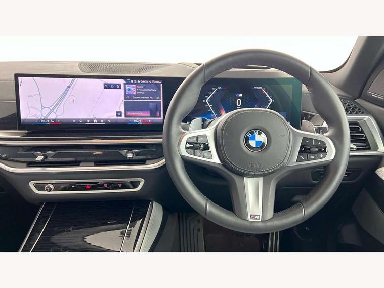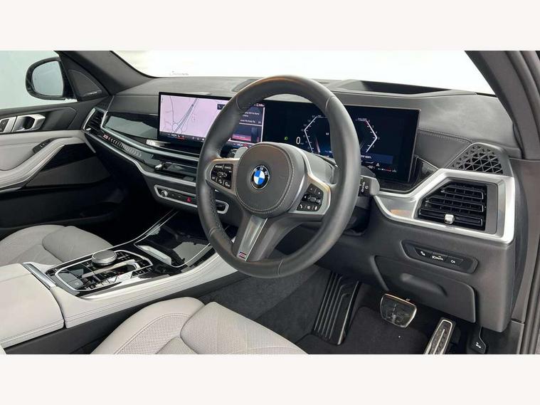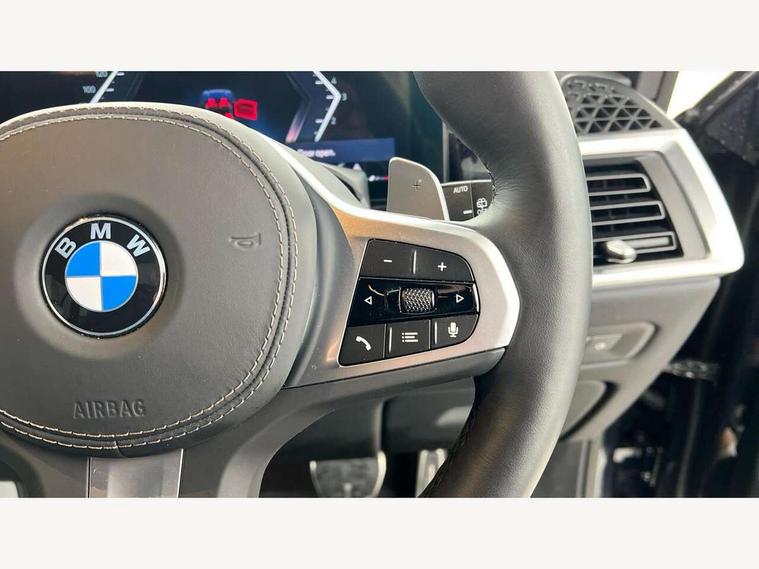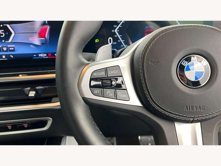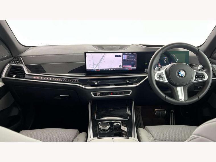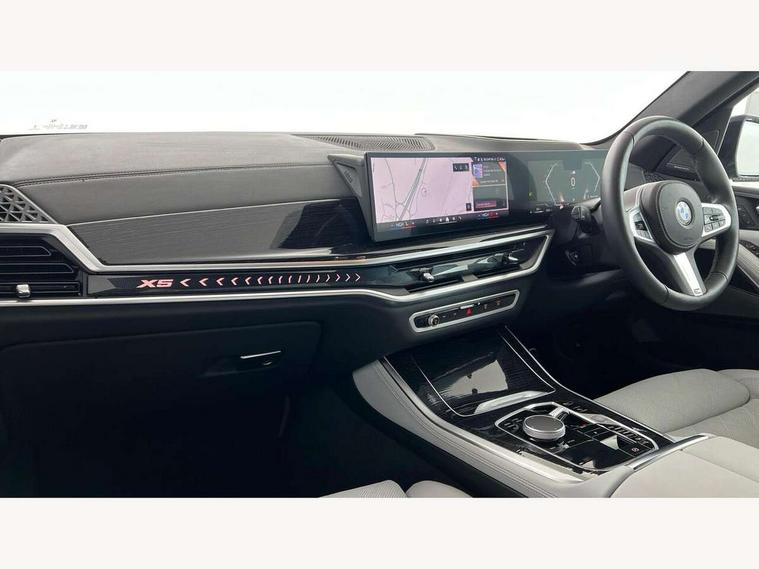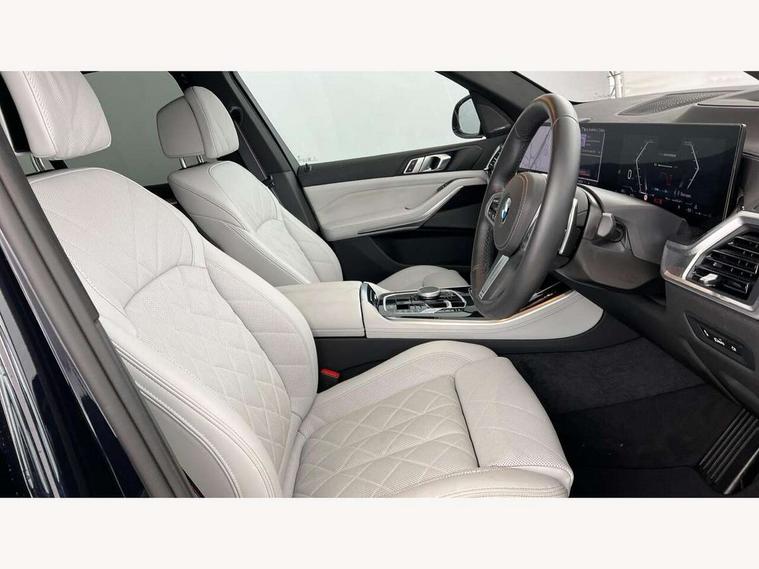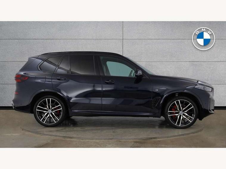 Attentiveness assist, Automatic tailgate operation, BMW ConnectedDrive online services, BMW live cockpit + with curved 12.3 instrument cluster/14.9 central display, nav/Tuner with diversity reception, RDS/4GLTE/remote software upgrade, BMW Recovery system, BMW Teleservices, Condition based service, Cruise control with brake assist, eCall emergency call system, Enhanced bluetooth with wireless charging, Integrated owner's handbook, PAS, Speed limiter, Wi-Fi hotspot, Drive performance control with ECO PRO comfort + sport mode, Eight speed steptronic sport automatic transmission and gearshift paddles on the steering wheel, Adaptive LED Headlights, Front and rear electric windows, High beam assistant, High gloss black shadow line roof rails, LED daytime running lights, Rain sensor, Rear side wing doors, Third brake light in rear spoiler, Variable intermittent rear wash/wipe, 12V - Power sockets with 2x centre console and 1x luggage compartment, 3 seat bench in 2nd row, Foldable rear centre armrest with 2 cupholders and storage compartment, Front and rear side armrest integrated into door trim, Headrests for all seats, Luggage compartment separating net, Lumbar support with height and depth adjustment in backrest, Single front passenger seat, Three spoke sport M leather steering wheel, Velour floormats, Ambient light interior pack - X5, Driving assistant pack with radar based driver assistance system - X5, Expanded exterior mirror pack - X5/X5 M, M aerodynamics pack - X5, Parking assistant pack - X5, 3 rear seatbelts, Active protection, Airbags - driver/front passenger, rear and side, first and second row seats head airbags, front passenger seat airbag deactivation + knee airbag, Anti-lock braking system (ABS), Automatic Stability Control (ASC), Brake energy regeneration, Cornering brake control (CBC), Crash sensor activating central locking release, hazard warning lights, fuel cut off, interior lighting + activation of safety battery terminal clamp, DSC - Dynamic Stability Control, Dynamic Traction Control - DTC, Electromechanical parking brake with automatic drive away release and auto hold function, Electronic brake force distribution, Hill start assistant, M Sport blue painted brake calipers with 'M' designation, Mechanical child proof lock on rear doors, Tyre pressure monitoring system, Tyre pressure sensors, Ventilated front and rear disc brakes, Warning triangle and first aid kit, Alarm system, Closing system with central locking, Comfort access system, Locking wheel bolts,