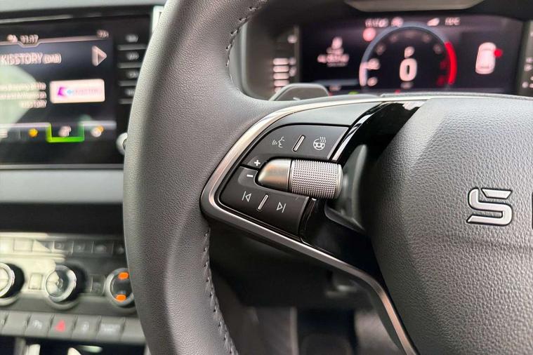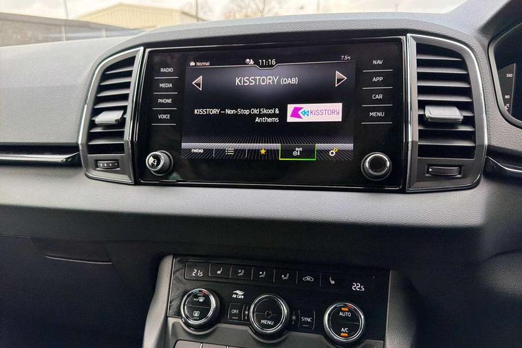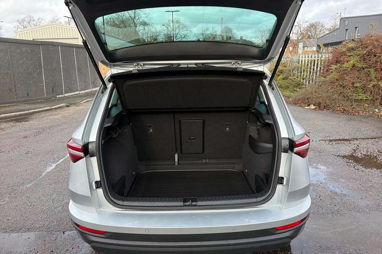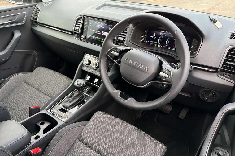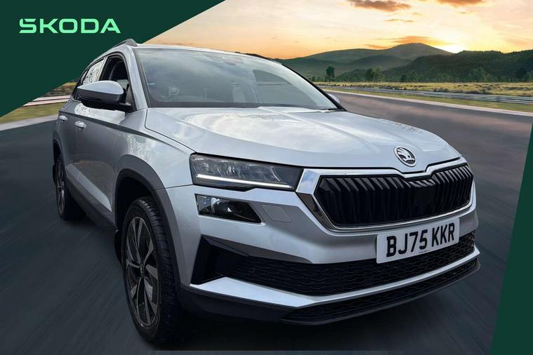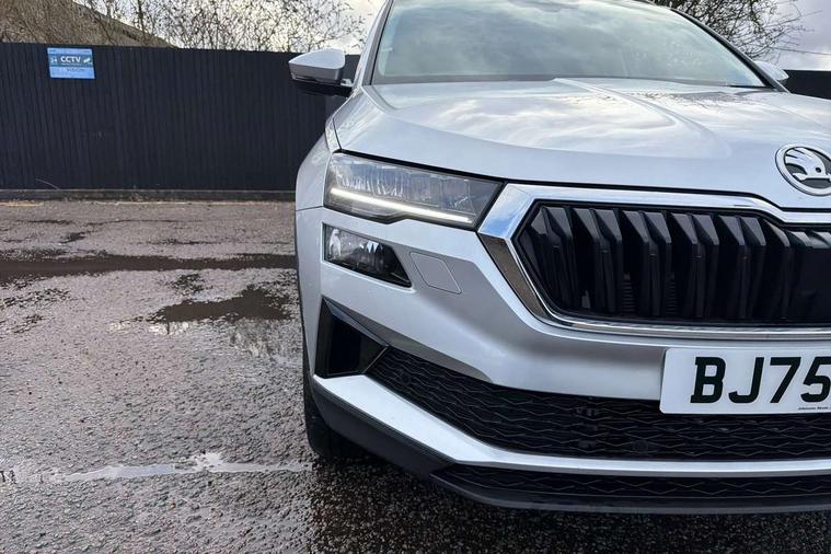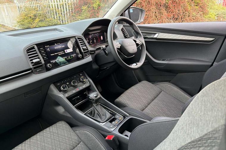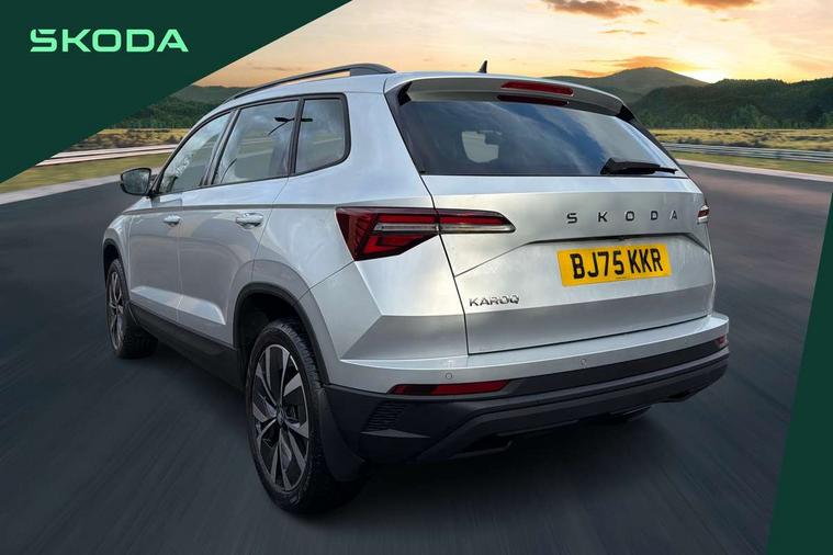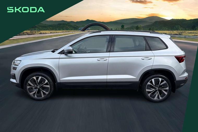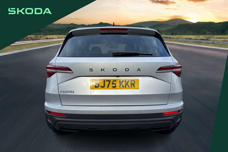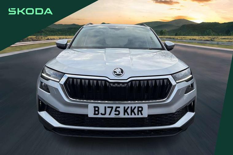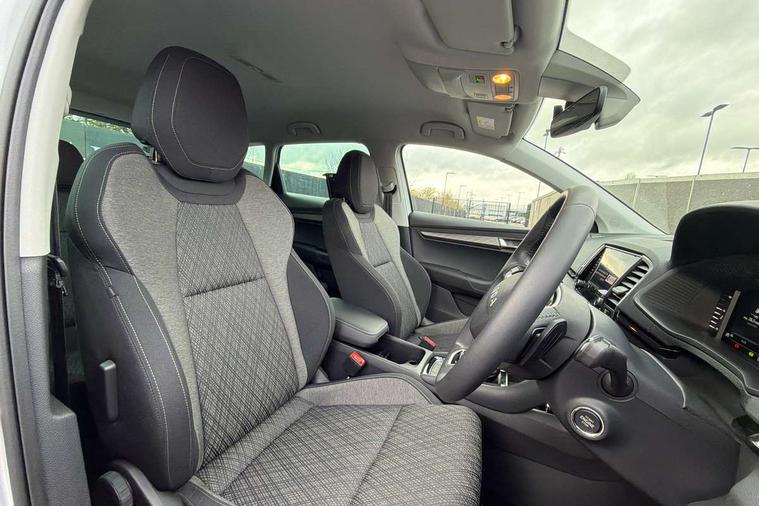 Advanced driver attention and drowsiness monitor, Amundsen navigation system with 8" touchscreen display and integrated WLAN and web radio, Electro-mechanical PAS, Emergency services call system, Lane assist, Outside temperature gauge, Sensor for driver assistance systems, Service interval indicator, SmartLink wireless for Apple and wired for Android, Start/stop system with regenerative braking, Traffic sign recognition, USB C Port x 2 in front centre console, Virtual Cockpit - 10.25" digital display, Wireless smartphone charging, 8 Speakers, DAB radio with Bluetooth, USB connection, Acoustic glass, Aero front windscreen wipers with intermittent function, Auto dimming rear view mirror with light and rain sensors, Black electric window control buttons, Body colour door mirrors and handles, Electric front and rear windows with child proof lock, Electrically adjustable heated folding and auto dimming door mirrors, Front fog lights, Headlight range control, Heated rear windscreen, LED daytime running lights, LED Headlights, LED rear lights with high functionality welcome effect and dynamic indicators, Light assistant (coming/leaving home/tunnel light), Plastic scuff plates in door apertures, Privacy glass, Rear side wing doors, Rear window wiper with washer system and intermittent control, Safety reflectors on front doors, Third brake light, Unique dark chrome design logo on alloy wheels, 1.5 litre bottle holders in driver and front passenger door panels, 12V socket in boot, 12v socket in front centre armrest with storage compartment and rear air vents, 2 spoke leather heated multifunction steering wheel with DSG paddles, 2 x Tablet holder, 3 rear height adjustable headrests, 3 seat bench in 2nd row, 4 foldable roof handles with rear coat hooks, Black floor carpet, Cargo elements in boot, Chrome inner door handles, Driver/front passenger reading lights, Foldable hooks in the boot, Folding tables on the front seat backrests, Front head restraints, Height adjustable driver and passenger seat, Height adjustable front three point seats belts with tensioners, Height/reach adjust steering wheel, Ice scraper, Illuminated glovebox, Illuminated luggage compartment, Interior noise suppression, Isofix child seat preparation for front passenger seat, Isofix child seat preparation outer rear, Loft fabric upholstery, Manual lumbar support for front seats, Pearl grey interior ceiling, Pen holder, Pollen filter, Rear boot cover, Rear package tray, Rear reading lights, Rubbish bin door, Safety vest holder, Single front passenger seat, Skoda lettering on steering wheel, Storage box in upper central dashboard closed, Sunvisors with illuminated vanity mirrors, Textile floor mats, Ticket holder, Umbrella under passenger seat, Under passenger seat storage compartment, Non Smokers pack, Parking pack - Karoq, Winter pack with heated front seats - Karoq, Automatic door unlocking in case of crash, Automatic fuel cut off in case of crash, Driver airbag, Electronic parking brake with auto hold function, Emergency rear braking signal, ESC (incl. ABS+MSR+ASR+EDS+HBA+DSR+RBS+MKB), Front assist, Front side airbags, Head airbags, Hill hold control, Knee airbags, Passenger airbag with switch-off function, Pedestrian monitor, Power operated child safety locks, Seatbelt reminder signalisation and pretensioner for all seats, Three point seatbelts rear, Two tone horn, Tyre pressure monitor, Alarm with interior monitoring, back up horn and tilt sensor with safe function, Electronic engine immobiliser, Keyless entry and start/stop, Remote central locking with 2 remote folding keys, Anodized cross door decor, Black centre console, Chrome framed air vents, Satin black dashboard, Satin black door trim, Anti-theft wheel bolts protection, Breakdown and tool kit,