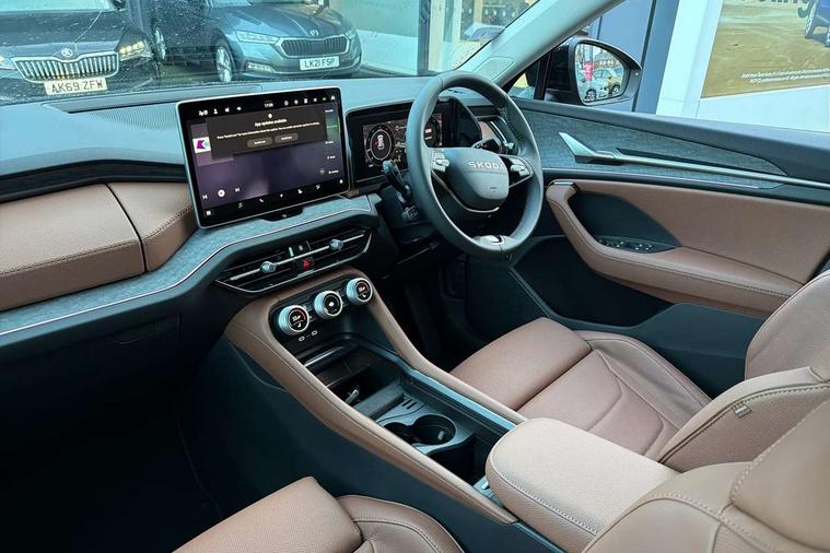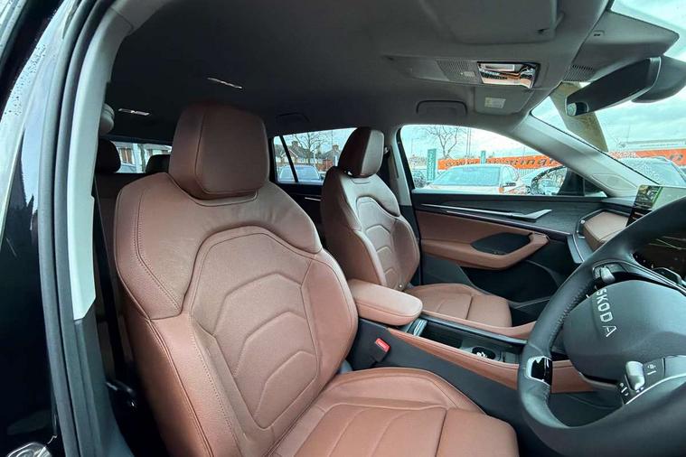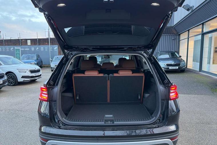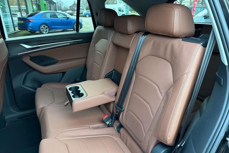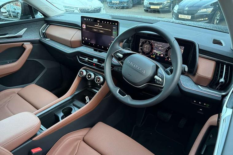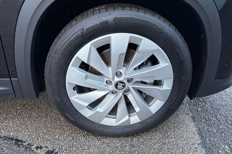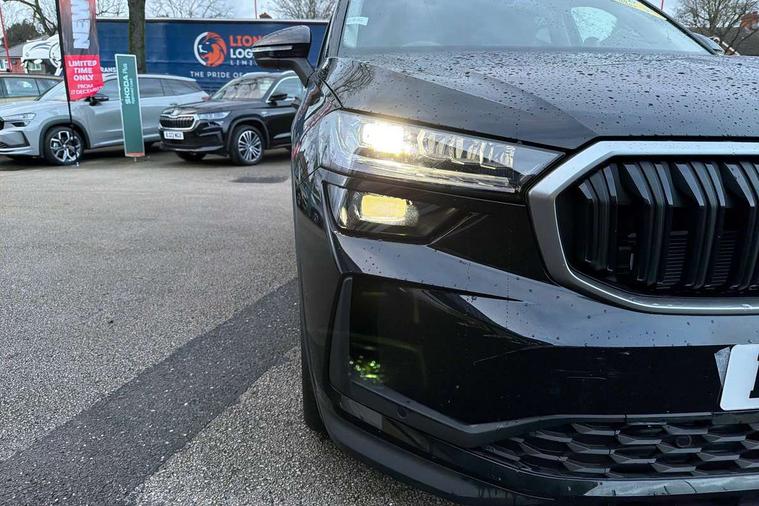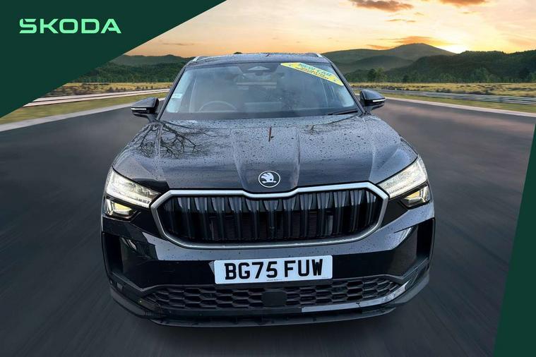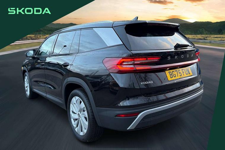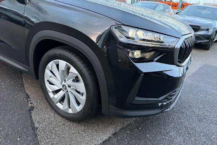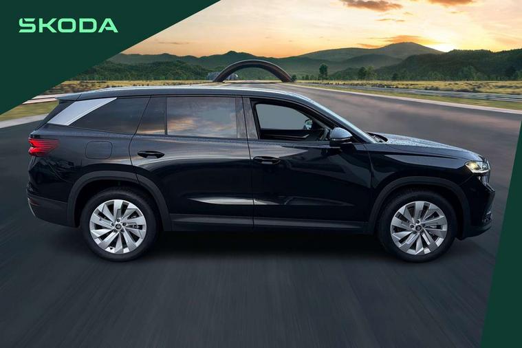 13" satellite navigation touchscreen display, Blind spot detection with door exit warning, Bluetooth system, ChatGPT functionality, Driver alert - Fatigue and drowsiness monitor, Dry display cleaner, Emergency call, Front and rear parking sensors, Front cross traffic assist, Lane assist, PAS, Rear traffic assist, Tailgate unlocking from outside, Traffic sign recognition, USB C Port x 2 in front centre console, Virtual Cockpit - 10.25" digital display, Voice control system, Wireless charging for two smartphones (15W) with cooling function, Wireless SmartLink for Apple CarPlay and Android Auto, Stop/start function, 2x USB-C in the rear, DAB Digital radio, Aero front windscreen wipers with intermittent function, Auto dimming rear view mirror, AWL (all weather lighting) and all weather light with cornering function, Black wheel arch surrounds, Body colour bumpers, Body colour door mirrors and handles, Cornering light and poor weather light, Electric folding /adjustable/separted heated/folding door mirrors, auto dimming with boarding sports and memory function, Electric front and rear windows, Exterior black decorative trims, Heat insulating glass in windshield, Heated rear window, Ice scraper in fuel tank cap, Invisible tailpipe, LED daytime running lights, LED third brake light in rear spoiler, Light assistant with automatic headlight control and coming home feature, Logo projection in door mirrors, Privacy glass, Rear roof spoiler, Rear side wing doors, Rear window wiper, Red decorative strip between rear LED lights, Safety reflectors on front and rear doors, Unique dark chrome design logo on alloy wheels, Window control switches with black trim, Windscreen wipers with rain sensor, Without engine designation, 1.5l bottle holder points in all door, 1x centre rear reading light, 2 seat bench in 3rd row, 3 configurable smart dials with 32mm coloured display, 3 seat bench in 2nd row, 4 foldable roof handles with rear coat hooks, Ambient interior lighting - Dashboard, front-door stowage compartments, front and rear door panels and footwell lighting, Automatic gear selector on steering column, Chrome interior door handles, Driver/front passenger reading lights, Fabric headlining, Fixed bench 40:60:40 split folding backrests, Front and rear floor mats, Front centre armrest with jumbo box storage compartment, cup holder and 12V socket, Height adjustable front headrests, Isofix child seat fittings in outer middle row rear seats and front passenger with top tether, Manually adjustable steering column, Pollen filter, Rear centre armrest with cupholders, Rear seat boot backrest release, Single front passenger seat, Skoda lettering on steering wheel, Storage pocket including mobile phone pockets on the backs of the front seats, Sunvisors with illuminated vanity mirrors, Three rear height adjustable headrests, Ticket holder on A Pillar, Tri zone climate control, Umbrella in door panel x1 made from sustainable materials, Upper and lower glovebox with card holder and coin compartment, USB C port by rear view mirror for charging only (15W), Exterior styling pack - Kodiaq, Auto door release and activation of warning lights in the event of an accident, Driver and front passenger airbag with knee airbag and front passenger airbag deactivation, Electric child locks, Electronic parking brake, ESC (incl. ABS+EMD+MSR+ASR+EDL+HBA+DSR+RBS+ESBS+MCB+TSA+XDS), Front assist with braking reaction to vehicles, pedestrians and cyclists, Front disc brakes, Fuel cut off safety device, Height adjustable front 3 point seatbelts + pretensioners, Hill hold assist, Junction assist with automatic emergency braking, Rear disc brakes, Safety vest holder in door, Seat belt reminder for all seats, Three point rear seat belts, Two tone horn, Tyre pressure monitor, Anti-theft wheel bolts, Immobiliser, Remote central locking with 2 keys,