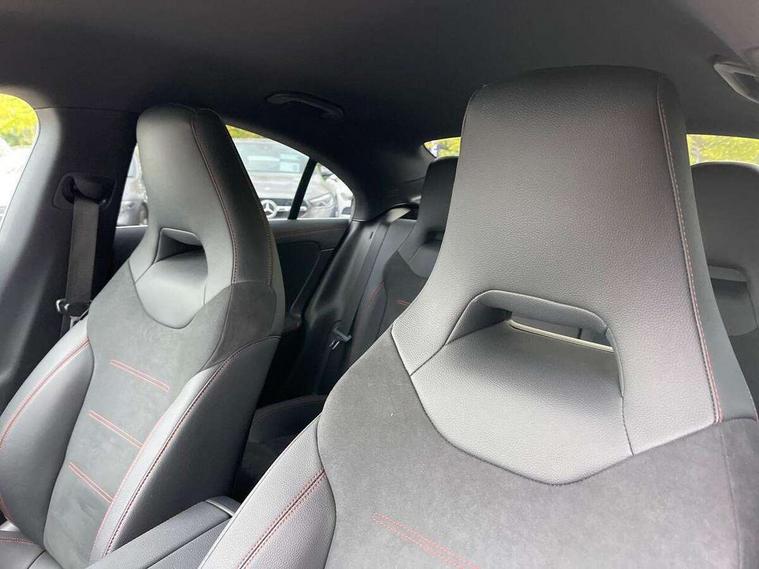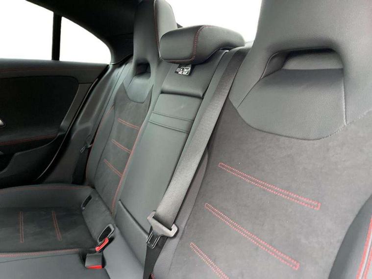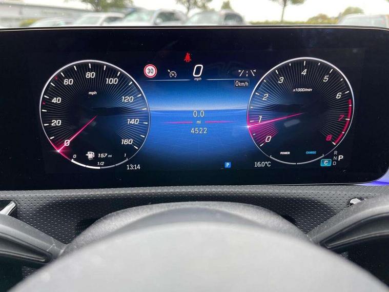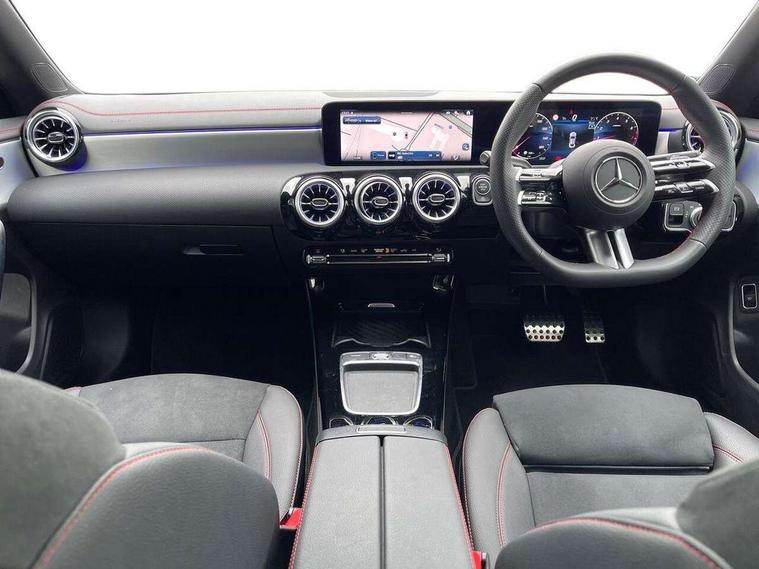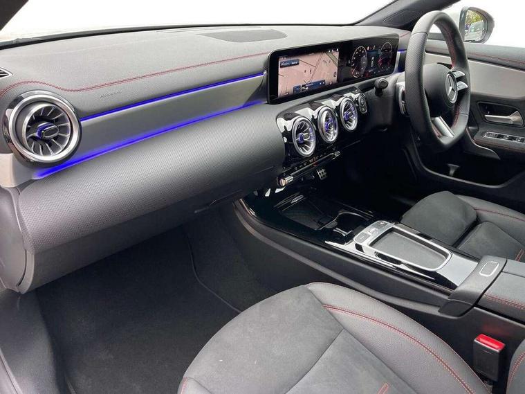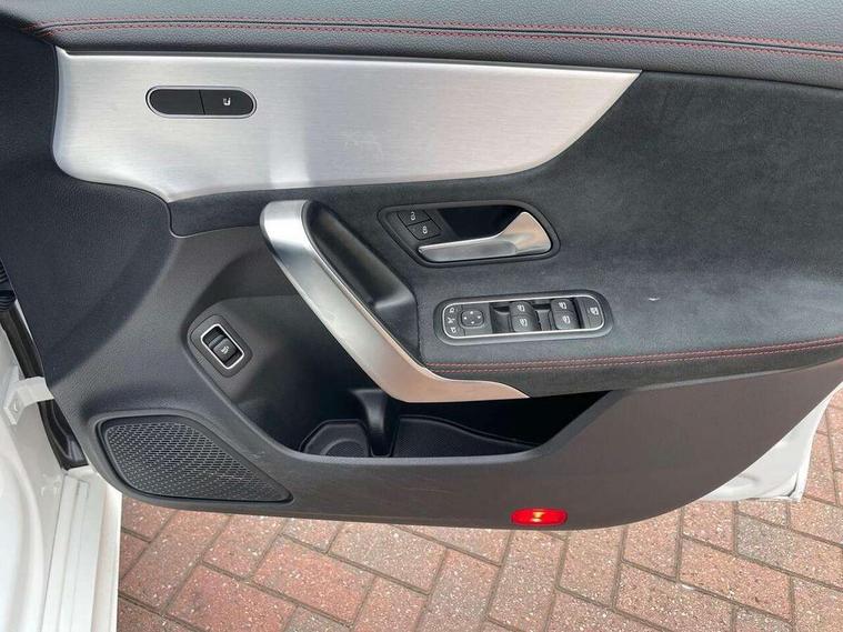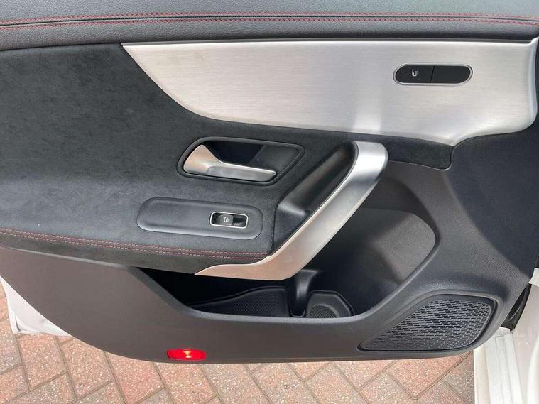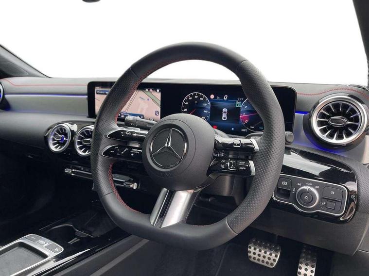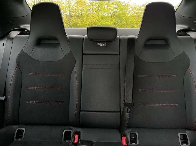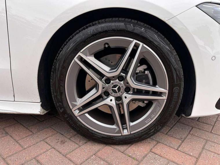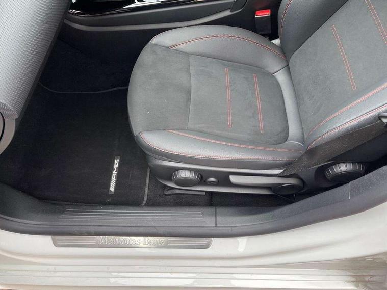 10.25 inch Instrument display with digital cockpit, 10.25 inch touchscreen central media display, Active lane keeping assist, Attention assist - Monitors steering behaviour and long journey fatigue, Bluetooth connection, Car wash mode, Cruise control with limiter, Direct steer system, DYNAMIC SELECT with a choice of driving modes (ECO, Comfort, Sport and Individual), ECO start/stop function, Fluid level warning indicator for fuel, oil, coolant and washer fluid, Hard-disk navigation, Hey Mercedes Voice activation, Lamp failure indicator, Mercedes me connect including emergency call system, accident recovery, breakdown and maintenance management, Mercedes me remote services, Outside temperature gauge, Owners manual in English, Pre-installation of private car share, Radio aerial integrated into front and rear windshields, Service indicator (ASSYST), Smartphone integration with Apple CarPlay and Android auto, Speed limit assist, Trip computer in multifunction display with current consumption indicator, Wireless charging in the front centre console, Comfort suspension with ride height lowering, Rear axle multi-link, DAB digital radio tuner, MBUX multimedia system, Mercedes Benz sound system (100 W) with 6 speakers, Pre installation for Mercedes Benz Link, Adaptive brake lights, AMG body styling with AMG front apron and rear apron and visible exhaust tailpipe in chrome trim elements, Body colour door handles, Chrome beltline strips, Electric windows, Electrically adjustable and heated door mirrors with integrated LED indicators, Exhaust system with 2 Visible tailpipe trim elements and rear apron with trim in chrome, Hand free access, Headlamp assist automatic headlamp activation, Heated glass rear windscreen + timer control, High level LED third brake light, Interior mirror with black reading lamps and frameless, LED high performance headlamps with integrated LED daytime running lights and adaptive highbeam assist, LED tail lamp, Privacy glass with dark tinting on rear side windows and rear window, Radiator grille with Mercedes-Benz pattern in chrome with central Mercedes star and single louvre with chrome inserts, Rain sensing windscreen wipers with two sensitivity settings, Rear boot, Rear fog lamp, Rear side wing doors, Variable front intermittent wipers, Window line trim strip in high gloss aluminium, 3 seat bench in 2nd row, 3 twin spoke flattened multifunction steering wheel in nappa leather - horizontal twin spoke in high gloss black, vertical twin spoke in silver chrome, 4 way lumbar support, 40:20:40 split folding rear seat backrests, Air conditioning - One zone thermatic automatic climate control with automatically controlled air distribution, Air vents with surround in silver chrome, Artico man-made leather/Microcut microfibre upholstery, Automatic child seat recognition sensor, Black roof lining, Brushed stainless steel sports pedals with rubber studs, Floor mats with stitched AMG lettering, Fluorescent jacket, Front centre armrest with stowage, Galvanished gear shift paddles in silver chrome, Heated front seats, Interior lighting - 64 colour Ambient lighting, Luggage net on driver/front passenger seat backrest, Manually height and reach adjustable steering column, Rear head restraints, Single front passenger seat, Sport seats with fixed head restraints, Stowage compartment in centre console with retractable cover, Sunvisors with illuminated vanity mirrors, Twin front cupholders, Two outer rear seat isofix and top tether child seat fixing points, Keyless go comfort pack - CLA, Light and sight pack - CLA, Mirror pack - CLA, Parking pack with reversing camera - CLA, Seat comfort pack - CLA, USB package plus - CLA, Active bonnet pedestrain safety measure which detects an impact and raises bonnet by 65mm, Active brake assist includes forward collision warning system with autonomous braking, Adaptive brake assist with hold function and hill start assist, Anti lock braking system (ABS) with brake assist, Black seat belts, Bonnet with power domes, Brake calipers with Mercedes-Benz lettering, Brake pad wear warning indicator, Childproof locks manually operated for rear doors and electrically operated for rear power windows, Crash responsive emergency lighting, Driver and front passenger head and sidebags, Driver and front passenger windowbags, Drivers knee airbag, Dual stage driver and front passenger airbags, Electric parking brake, Electronic stability programme with acceleration skid control, ESP curve dynamic assist, Front and rear seatbelt reminder, Front passenger seat occupancy sensor, Perforated front brake discs, Sports braking system, Three point rear seat belts, Tyre pressure monitoring system, Warning triangle and first aid kit, Alarm system with immobiliser and interior protection -Thatcham category 1, Guard 360 deg vehicle protection - tow away protection with visual, acoustic warning, interior monitoring, preinstallation for parking damage, Remote central locking and crash sensor with emergency opening function, Light aluminium with longitudinal grain interior trim, 18" AMG 5 twin spoke light alloy wheels painted in termolite grey with high sheen finish, Summer tyres, Tirefit tyre sealant kit,