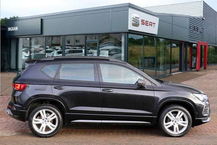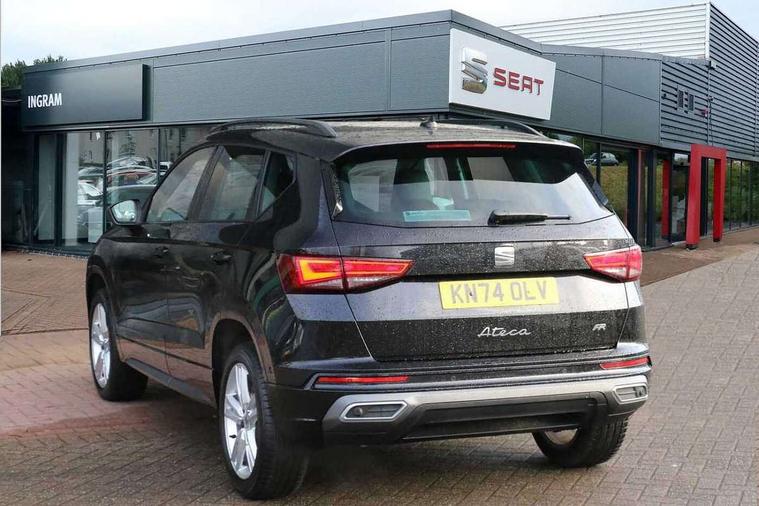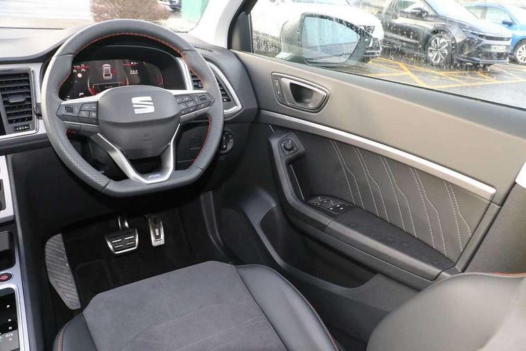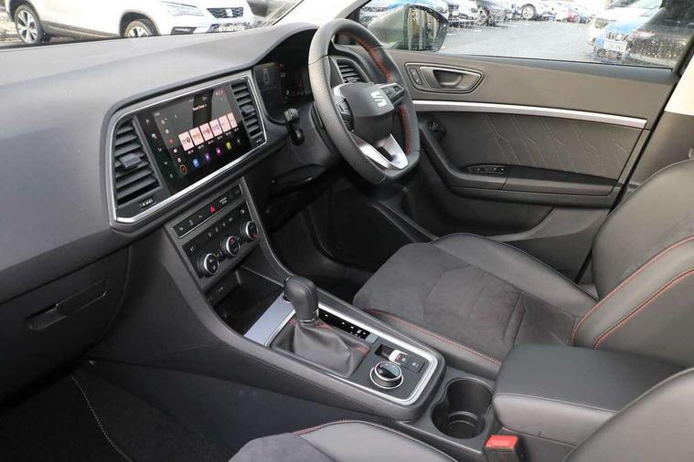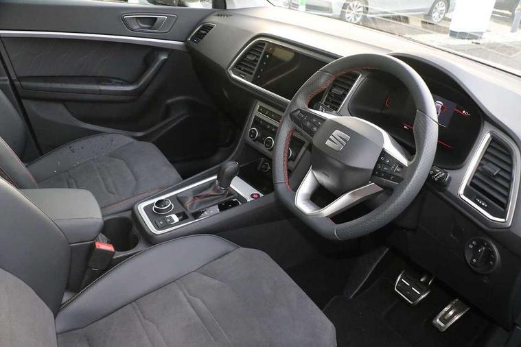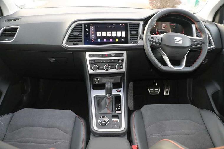 8" Digital cockpit, Colour multi-function on board computer display, Cruise control system with speed limiter, E-call, Outside temperature gauge, Progressive power assisted steering, SEAT drive profile with driving experience button - Normal, Sport, Eco and Individual mode, gearshift, steering and throttle response, Self parking functionality (includes front and rear parking sensors), Start/stop system, Tailgate, Trip computer, wired and wireless full link smartphone integration, Wireless phone charger, Steering wheel mounted audio/phone controls, Black roof rails, Black side window trim, Body colour bumpers, Body coloured wheel arch surrounds, Chrome front grille frame, Dark tinted rear windows, Daytime running lights, Door mirrors with welcome light silhouette, Dynamic headlight range control with self adjusting whilst driving, Electric adjustable/heated/folding door mirrors, Front and rear electric windows, Full LED headlamps with lens and LED front fog lamps with cornering function, Illuminated aluminium front door sill, LED 3rd brake light, LED rear tail lights with dynamic indicators, Rear exhaust tailpipe, Rear fog lights, Rear side wing doors, Rear wash/wipe, Roof spoiler, Variable front intermittent wipers, 12V socket in front, 3 seat bench in 2nd row, 60/40 split folding rear seat, Aluminium pedals, Dinamica upholstery with front comfort seats, Drawer under right front seat, Dual zone climate control, Front and rear head restraints, Front centre armrest, Front seat back storage pockets, Height adjustable driver and passenger seat with lumbar adjustment, ISOFIX points in outer rear seats with top tether anchorage points, Leather sports steering wheel and gear knob, Rear armrest and easy back seat release mechanism from boot, Single front passenger seat, Steering wheel mounted gearshift paddles, Convenience pack - Ateca, Interior lighting pack - Ateca, Navigation system pack with DAB - Ateca, Safety and driving pack with attention and drowsiness assist - Ateca, 3x3 point rear seatbelts, ABS, Traction control system (TCS), Electronic stability control (ESC) and Electronic differential lock system (XDS), Airbags - Driver and front passenger airbag with deactivation, front side, two curtain and driver's knee airbags, Electric parking brake with auto hold function, Front and rear seatbelt reminder, Front assist with autonomous emergency braking, Hill hold control, Manual rear child locks, Single tone horn, Tiredness recognition system, Tyre pressure monitoring system, Alarm, Keyless entry, Locking wheel bolts, Remote central locking, Chrome interior detailing, 18" Brillaint silver alloy wheels,