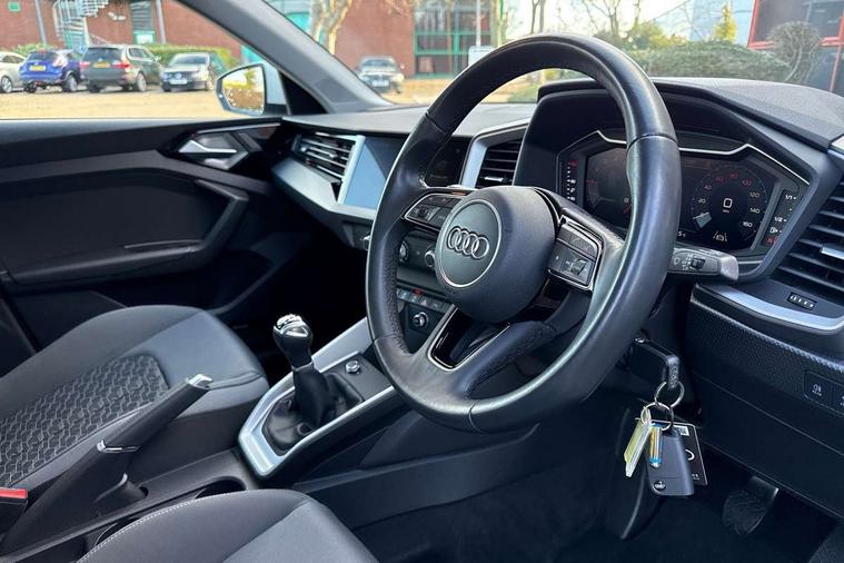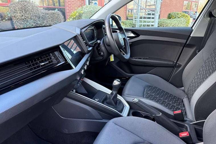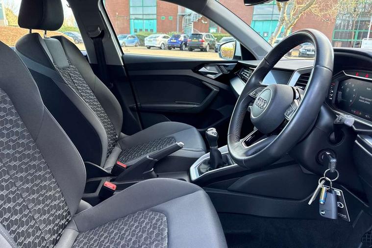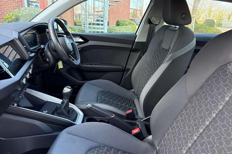 10.25" Digital instrument cluster display classis style instrument dials + speed, odometer, time, outside temperature, telephone menu + fuel level warning, Audi drive select - power steering assistance + engine, Audi smartphone interface with connect compatible smartphone via USB directly MMI display + Nav, music, third party apps controlled via MMI controller, Automatic start/stop system, Bluetooth interface, Cruise control, Driver's information system, Electromechanical power steering, Emergency e-call, Lane departure warning system, Rear parking sensor, Service interval indicator, Speed limiter, Voice control system, Washer fluid level indicator, Dynamic suspension, 2 x USB type C connection points, 6 passive loudspeakers, DAB Digital radio, MMI radio plus with 10.1" colour MMI display screen and MMI touch, Auto dimming rear view mirror, Body coloured bumpers, Body coloured door mirrors, Electric front and rear windows, Electrically adjustable, heated, folding door mirrors with integrated LED side indicator, Front side air inlets in grained matt black and C frame in anthracite black, Heat insulating glass windscreen and side windows, Heated rear windscreen, High level LED brake light, LED headlights with LED rear lights + dynamic rear indicators + headlight adjustment and high beam, turning light + LED daytime running lights, Radiator grille and rear diffuser in matt anthracite black, Radiator protective grille frame in matt aluminium silver, Rain and light sensors, Rear fog lights, Rear side wing doors, Rear wiper, Side front spoiler lips in grained matt black, 12V socket in centre console with two cup holders, 3 rear seats with headrests, 3 seat bench in 2nd row, 3 spoke leather multifunction plus steering wheel, 40:60 Split folding rear seat or folded fully, Black front and rear floor mats, Door sill trims with aluminium inlay, Driver and passenger seat with manual height adjust with forward and backwards adjustment, Front head restraints, Front passenger seat, Grey cloth headlining, Height and reach adjustable steering wheel, ISOFIX child seat mounting for front passenger and outer rear seats including top tether attachment point of outer rear seats, Leather gear knob with aluminium trim, Leather handbrake grip, Luggage compartment light with front and rear reading lights, Manual air conditioning, Manually adjustable lumbar support in front seats, Novum cloth upholstery with front sport seats, Luggage compartment pack - A1, 3x3 point rear seatbelts, Audi pre-sense front with pedestrain and cyclist recognition, Brake assist function, Driver and front passenger airbag with front side and head airbags, Electronic Stability Control including ABS, EBD, ASR and EDL, Front passenger airbag deactivation switch, Hill hold assist, Manual rear child locks, Seatbelt height adjustment for front seats, Seatbelt monitoring, Tyre pressure warning light, Warning triangle and first aid kit, Anti theft alarm, Anti theft wheel bolts and loose wheel warning, Immobiliser, Remote central locking with 2 foldaway keys, Aluminium trim for control switches, air vents and digital instrument cluster, Black dashboard, Silver grey accent areas including air vents, door handle recesses and centre console in diamond paint finish, Slate grey inlays polygon structure in fine paint finish,