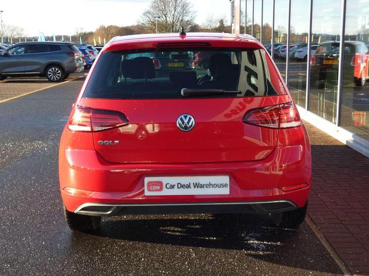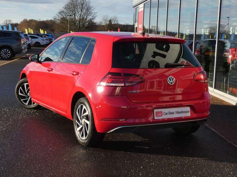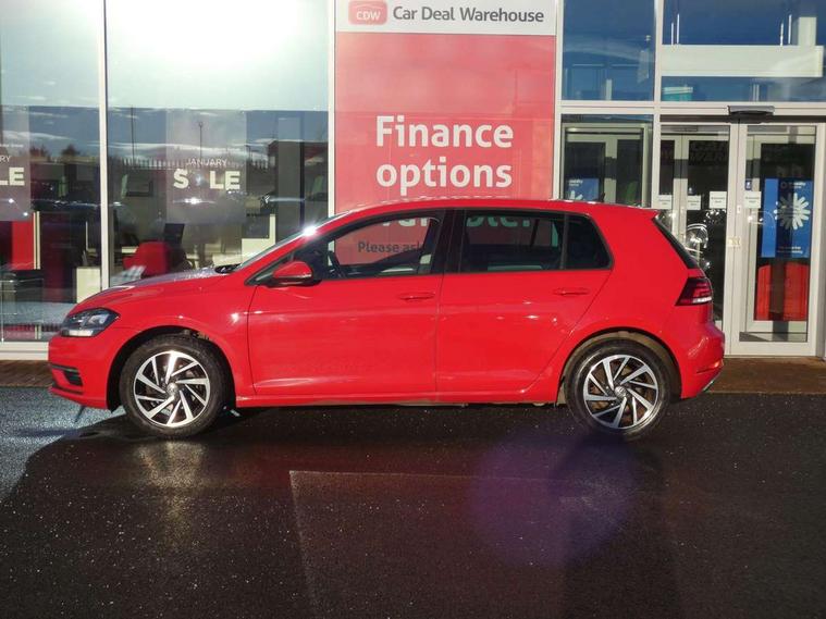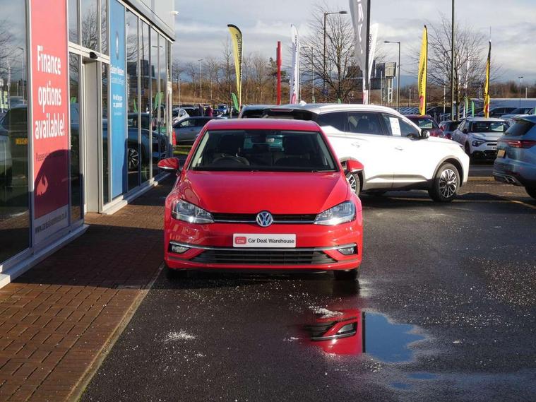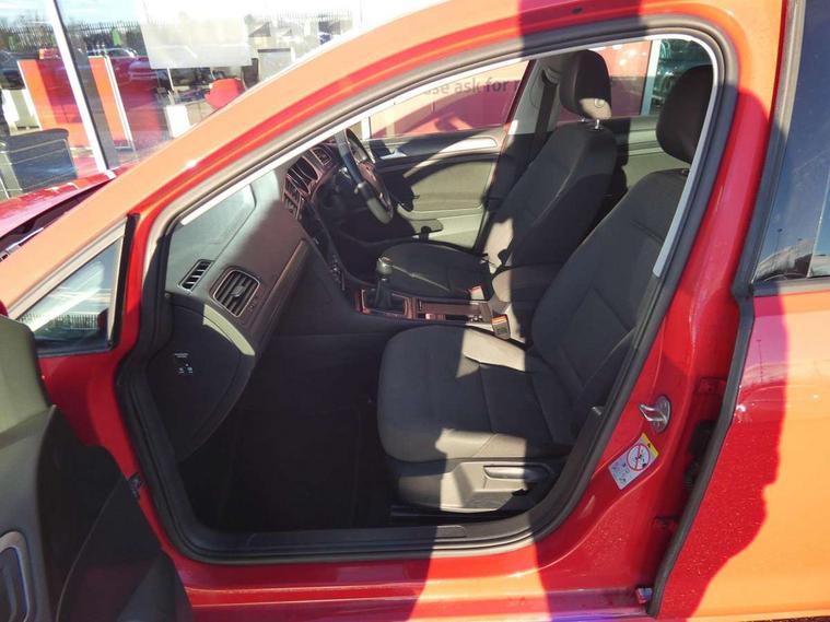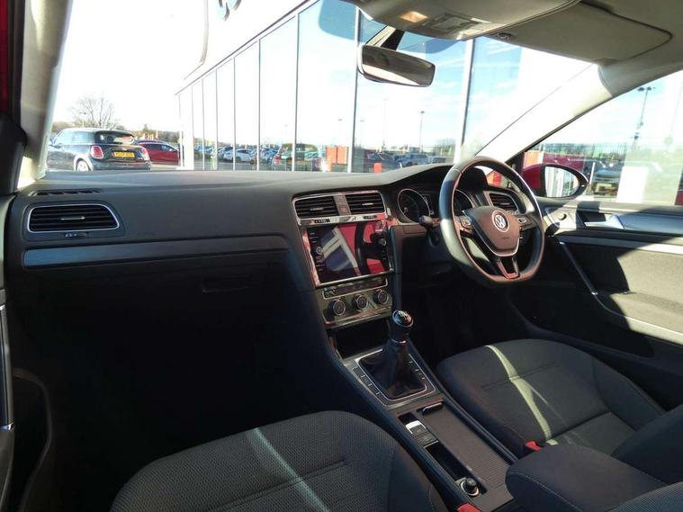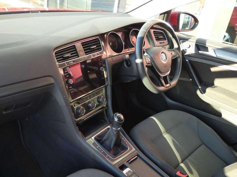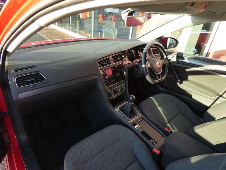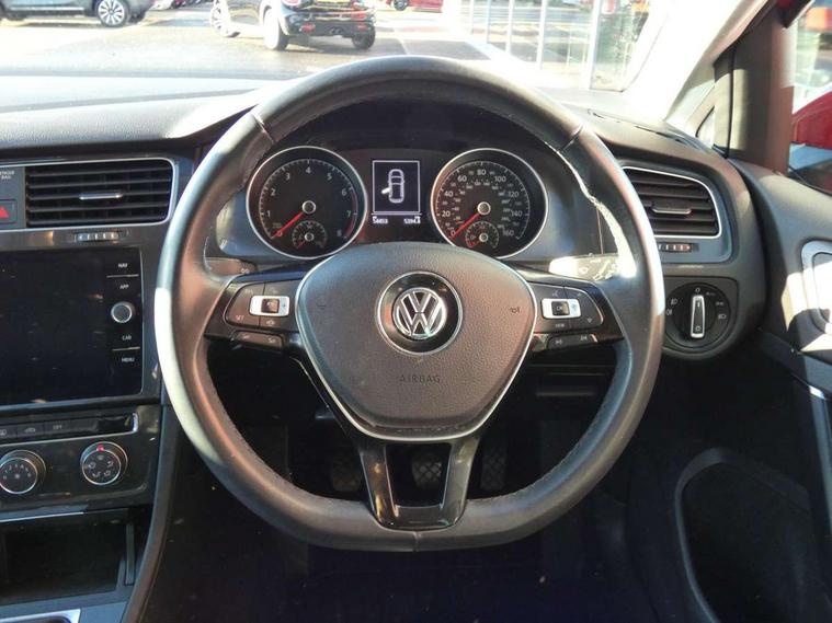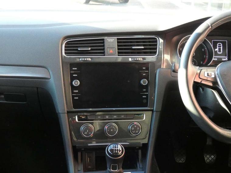 'Lights On' Reminder warning buzzer, ACC - Adaptive cruise control with front assist, forward collision warning, distance monitoring, city emergency brake and speed limiter, Bluetooth telephone and audio connection for compatible devices, Brake pad wear indicator warning light, Driver alert system, Driver profile selection, Driving Mode Selection with four preset modes - Eco, normal, sport or individual modes, Instrument cluster in white, Multifunction computer with visual gear change recommendation for fuel consumption, Power assisted speed sensitive electro-mechanical steering, Push tank flap, Speed limit display, Speedo, rev counter, electronic odometer, trip, service interval display, exterior temperature and fuel gauge, Stop/start system, Warning buzzer and light for front seatbelts unfastened, Battery regeneration during braking, XDS electronic differential lock, Composition media system, DAB Digital radio receiver, MP3/WMA compatability, Multi device interface (MDI) with USB connection, Personalisation 1.1 profile for media, Premium USB cable in choice of either Apple or Android smartphone compatibility, SD card slot, SMS Functionality, USB and SD card connectivity, Black front air intake and radiator grille with chrome insert, Black rear diffuser, Body colour bumpers, Body colour door handles, Body colour door mirrors with integrated indicators, Dusk sensor + automatic driving lights, Electric front windows, Electric rear windows, Electrically adjustable and heated door mirrors, Fully galvanised body, Heated rear windscreen, Hidden exhaust pipe, High level 3rd brake light incorporating LED Technology, LED daytime running lights, LED front fog lights with static cornering light function, Rear fog lamp, Rear tinted glass 65% light absorbing from B pillar backwards, Rear window aerial, Rear window wash/wipe with intermittent wipe, Reflectors in all doors, Tailgate with integrated rear roof spoiler, Windscreen wipers/ intermittent wipe + 4 position delay, 12V socket in luggage compartment, 3 rear headrests, 4 load lashing points in luggage compartment, 60/40 split folding rear seat backrest, Auto fold down lever in rear seat backrest, Bag hook in luggage compartment x 2, Cooled glovebox, Cupholder cover, Dust/pollen filter, Front and rear reading lights incorporating LED technology, Front centre armrest with storage compartment and two rear air vents, Front seat back storage pockets, Grab handles front x 2, rear x 2 with integrated coat hooks, Height and reach adjustable steering wheel, Illuminated vanity mirrors, Instrument lighting white adjustable panel illumination, Interior light delay, Isofix preparation for 2 rear child seats, Load through provision with rear centre armrest and cupholders x2, Luggage compartment lighting, Overhead storage box, Passenger underseat drawer, Pearl grey headlining, Storage box in luggage compartment, Storage compartment in roof console with cover, Storage compartments in centre console, Storage compartments in front doors, Storage compartments in rear doors, Stowable luggage compartment cover, Sun visors, Variable boot floor, height adjustable and removable, Convenience Pack - Golf, Light and Sight pack - Golf, Mirror pack - Golf, 3 rear three point seatbelts, Airbags - Driver's and front passenger's, curtain airbag, Driver's knee, front side impact and passenger's airbag deactivation switch, Anti-lock Braking System (ABS) with Hydraulic Brake Assist (HBA), Automatic post collision braking system, Child locks on rear doors, Driver/Passenger optimised head restraints, Electronic parking brake with auto hold, Electronic stability control (ESC) including Electronic differential lock (EDL) and ASR (Traction control) with deactivation via infotainment system, Pre crash preventive occupant protection, Three point height adjustable front seatbelts with tensioners, Tyre pressure loss indicator, Alarm with interior protection and deactivation via infotainment system, Electronic engine immobiliser, Remote central locking with 2 remote folding keys, Brushed dark silver decorative inserts in dash and door panels, Chrome plated air vent surround, Chrome plated electric mirror adjustment light switch surround, Polar night black centre console, Steel space saver spare wheel,