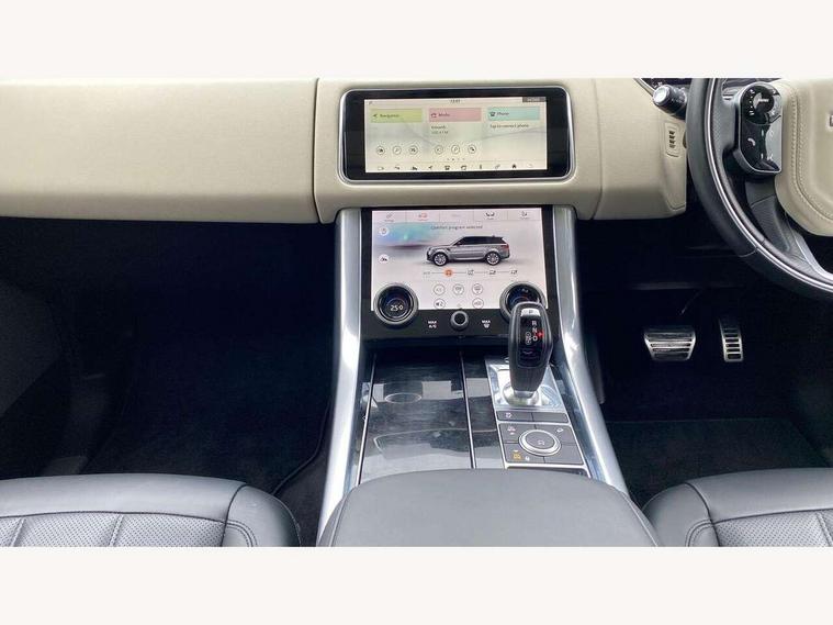 All Terrain Info Centre, Android Auto, Apple car play, Bluetooth connectivity, Electric power assisted steering (EPAS), Incontrol apps in vehicle touchscreen, Interactive Driver display instrument cluster, Mist sensor, Navigation pro system with 10" touch screen, app interface and media storage, Pro services and wifi hotspot, Push button start, Remote premium - Upgraded Incontrol remote app including remote climate control (engine dependent), remote lock + Unlock and remote beep + flash, TFT Virtual Instrument Panel, Touch pro duo system, Trip computer, Gradient release control (GRC), Bluetooth audio streaming, DAB Radio (Digital Audio Broadcasting), Incontrol protect - SOS emergency call with automatic collision detection, optimised assistance call and Incontrol remote app essential, USB/aux input socket, Acoustic front and toughened rear side glass, Acoustic laminated front windows, Adaptive brake lights, Auto dimming interior rear view mirror, Automatic headlights, Body coloured bumpers, Body coloured door mirrors, Centre high mounted stop light, Electric windows with one touch open/close and anti trap, Electrical towing preparation, Engine cover, Follow me home lighting, Front and rear recovery eyes, Front fog lights, Headlight power wash, Heated rear window, Heated windscreen includes heated washer jets, LED rear lamps, Privacy glass (Tinted glass rear of B pillar), Rain sensing windscreen wipers, Rear fog lights, Rear side wing doors, Rear wash/wipe, Remote window closing, Side repeater indicators in mirror, Sport Badge in silver, Standard bonnet, Trailer stability assist, 2 way active front head restraints, 2 way rear head restraints, 3 seat bench in 2nd row, 60/40 load through rear seats, Auto air recirculation, Bright metal foot pedals, Centre console with armrest, Climate control memory, Customer configurable single point entry, Driver's footrest, Front and rear cupholders, Front door storage space, Front map lights, Front seat back map pockets, Front stowage pocket, Front/rear passenger grab handles, Heated steering wheel, Isofix child seat preparation, Leather steering wheel with Atlas inserts, Loadspace light, Loadspace mounting provisions, Lockable glovebox, Multifunction steering wheel, Pollen filter, Power socket, Reach/rake electric adjustable steering column + entry/exit tilt away, Rear centre armrest, Rear ISOFIX, Roller blind loadspace cover, Satin chrome gearshift paddles, Single front passenger seat, Three 12V accessory power outlets, Smartphone pack - Range Rover Sport, 3 point seatbelts on all seats, Anti-lock braking system (ABS), Brake pre-fill technology, Cornering brake control (CBC), Curtain airbags, Customer configurable autolock, DSC - Dynamic Stability Control, Dual stage driver/passenger airbags, EBD - Electronic brakeforce distribution, Electric parking brake, Electronic traction control, Emergency braking includes city, urban AEB and pedestrian, Front seatbelt pretensioners, Gradient acceleration control, Grey anodised brake calipers, Height adjustable front seatbelts, Hill descent control, Hill launch assist, Low traction launch, Passenger seat occupant detector with front airbags, Power operated child locks, Roll stability control, Seatbelt warning, TPMS (Tyre pressure monitoring system), Immobiliser, Intrusion sensor, Keyless entry, Locking wheel nuts, Perimetric and volumetric anti theft alarm, Remote locking, Grand black veneer,