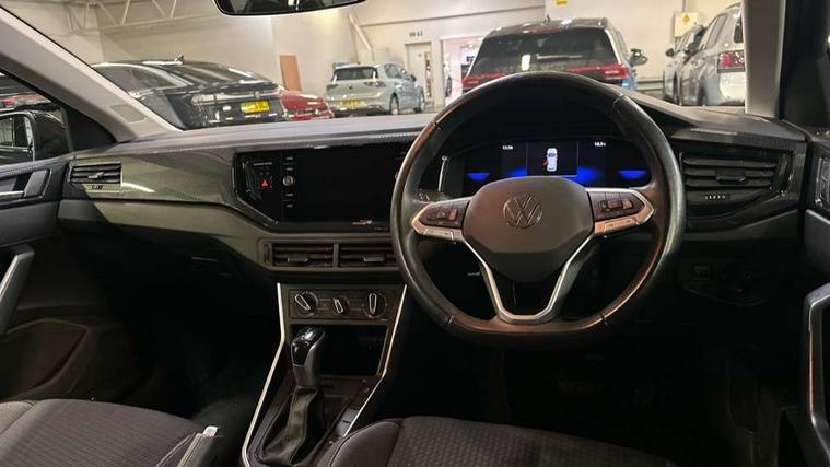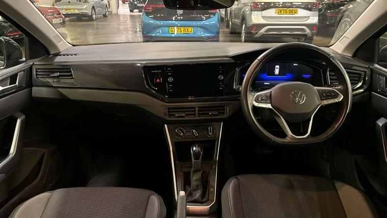 Advanced driver attention and drowsiness monitor, Bluetooth mobile phone interface, Dynamic road sign display, Emergency call service, Multifunction front facing camera for distance control, Park distance control, Power assisted speed sensitive steering, Predictive adaptive cruise control without follow-to-stop and speed limiter, Preparation for navigation system with media and internet package, Preparation for We connect and We connect plus, Rear view camera, Speedo and rev counter, electronic odometer, trip, service interval display and exterior temperature gauge, Standard rear axle, Travel Assist - Lane keeping system and traffic jam assist, Travel assist including emergency assist, Trip computer, Warning signal and warning light for front and rear seatbelts not fastened, Washer fluid level indicator, Wireless app connect, Front wheel drive, Rear shock absorpion, Start-stop system with battery regeneration (recuperation - energy recovery during braking), DAB Digital radio, Diversity antenna for FM reception, Front and rear 6 speakers, Automatic dimming interior rear view mirror, Automatic headlight control with LED separate daytime running lights with coming/leaving home function, Body colour bumpers with chrome inserts, Body colour door handles, Body colour door mirrors, Electric front windows, Engine badge deletion, Headlight range adjustment, Heat insulating and laminated safety glass windshield, LED Headlights, LED rear combination lamps, Power folding adjustable/heated exterior mirrors and front passenger exterior mirror lowering function, Rain sensor, Rear electric windows, Rear fog light, Rear side wing doors, Rear tinted glass from B-pillar backwards approx 65% tinted, Rear windscreen washer and wiper with interval delay, Third brake light, 12V power socket in centre console, 2 front and 2 rear reading lights with switch off delay and dimmer, 2 USB-C ports in the front, 2 USB-C charging sockets on the center console in the rear, 3 rear head restraints, 60/40 split folding rear seat and rear seat bench not split, Ceramique roof lining, Chrome plated radiator grille inserts, air vent surrounds and light switch surrounds, Door and side trim panel, Driver and front passenger seat height adjustment, Driver/passenger sunvisors with illuminated vanity mirrors, Front centre armrest, Front seat backrest storage pockets, Front standard seats, Handbrake lever handle in leather, Hartley/Thomas cloth upholstery, Headliner in recycled material, Isofix child seat preparation easy-fit (for two outer rear seats, and front passenger seat) compatible with I-size, Leather trimmed gear knob, Luggage compartment cover, Luggage compartment lighting, Removable luggage compartment floor, Single front passenger seat, Standard climatic zones, Standard pedal cluster, Three spoke leather wrapped multifunction steering wheel with shifting paddles, Light and vision pack - Polo, 3 point height adj front seatbelts + pretensioners, 3 point seat belt for centre rear seat, 3 point seatbelts, outer rear with ECE lable, ABS, Driver and front passenger airbag with front passenger airbag deactivation, Drivers and front passengers safety optimised head restraints, ESC (Electronic stability control) + EDL (Electronic Differntial lock) and ASR (Traction control), Extended and predictive pedestrian/ cyclist protection, Front assist with autonomous emergency braking (for Adaptive Cruise Control ACC up to 130 mph), Front curtain and side airbags with center airbag, Front disc brakes, Hill hold control, Manual child lock in rear doors, Rear drum brakes, Single tone horn, Tyre pressure loss indicator, Alarm with interior protection, Anti-theft alarm system with interior monitoring, backup horn, and towing protection, Anti-theft wheel bolts, Electronic engine immobiliser, Lava stone black gloss/matt decorative inserts in dash and front door panels, 16" Torsby alloy wheels, Low rolling resistance tyres,