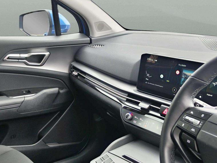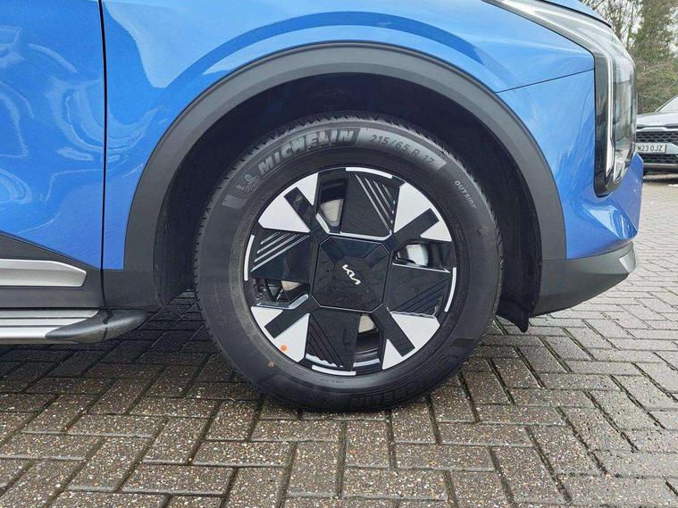 12.3" Touchscreen navigation system, 4.2" driver display screen, Bluetooth connection, Drive mode selector, Driver attention warning, E-call, Emergency stop signalling system, Forward collision avoidance assist (FCA) - city/pedestrian/cyclist/junction covering, Front and rear parking sensors, Highway Driving Assist (HDA), Intelligent speed limit assist, Kia Connect (UVO), Lane Following Assist (LFA), Lane keep assist, Low washer fluid warning, Motor driven power steering, Over the air (OTA) functionality, Reversing camera, Smart cruise control with stop and go functionality, Speed limiter, Tailgate, Trip computer, Windscreen washer level indicator, Wireless apple car play/android Auto, 6 speaker audio system, DAB Radio with MP3, Front passenger 1x USB-C port, Steering wheel mounted audio controls, USB-C port for connection of a media device, Auto dimming rear view mirror, Automatic defog system, Automatic headlight control system, Black bumpers with silver accents, Black radiator grille with silver surround, Black wheel arches, Body colour door mirrors, Body colour exterior door handles, Body colour radiator upper garnish and door garnish, Electric front and rear windows with front one touch function, Electrically adjustable/heated/folding door mirrors with LED indicators, Heated rear window, High beam assist, LED daytime running lights, LED Headlights, LED High mounted stop light, LED rear lights, Rain sensing wipers, Rear fog lamp, Rear roof spoiler, Rear side wing doors, Rear wiper, Satin finished beltline, Silver front and rear skid plate, Silver roof rails, Silver window surround, Trailer stability assist, 12V power socket in front and luggage compartment, 2nd row personal lamps, 3 seat bench in 2nd row, 3 x passenger assist grips, 40/20/40 split folding rear seat, All-round height adjustable headrests, Automatic air conditioning, Centre console storage box, Cloth upholstery, Cupholders in rear armrest, Door courtesy lamps, Driver and front passenger sunvisors with illuminated vanity mirrors, Driver's seat manual height adjust, Drivers seat power lumbar support, Front and rear door storage, Front cabin, rear & luggage compartment lights, Front passenger's seat manual height adjustment, Front seat and rear pockets, Gear shift indicator, Glovebox, ISOFIX Child seat top tethers and anchor fixings outer rear seats, Leather steering wheel, LED lighting in overhead console, Luggage area load cover, Luggage area parcel shelf, Luggage board, Luggage compartment under floor storage, Luggage net hooks, Manual adjust steering wheel, Metal paint interior door handles, Paddle shift controls, Rear air conditioning, Rear cabin light, Rear coat hooks, Single front passenger seat, Ventilation ducts to rear compartment, Active front headrests, All round 3-point seatbelts, Anti-lock braking system (ABS), Dual front side airbags, Dual horn, Dynamic brake control, Electronic parking brake with auto hold function, Electronic stability control with downhill brake control, Front passenger airbag cut-off switch, Front seatbelt pretensioners + load limiters, Height adjustable front seatbelts, Hill start assist control (HAC), Impact sensing auto door unlocking, Multi collision brake assist, Rear airbags, Rear door child safety locks, Rear seat alert system, Seatbelt reminder warning, Traction control, Twin curtain airbags, Twin front airbags, Tyre pressure monitoring system, Vehicle stability management, Customisable automatic door locking, Customisable automatic door unlocking, Door deadlocks, Engine Start/Stop Button with Smart Entry System, Locking wheel nuts, Smart key with motion sensor, Speed sensitive auto door locking, Thatcham category 2 security alarm and immobiliser, Visible vehicle identification number, 17" Alloy wheels, Tyre mobility kit,